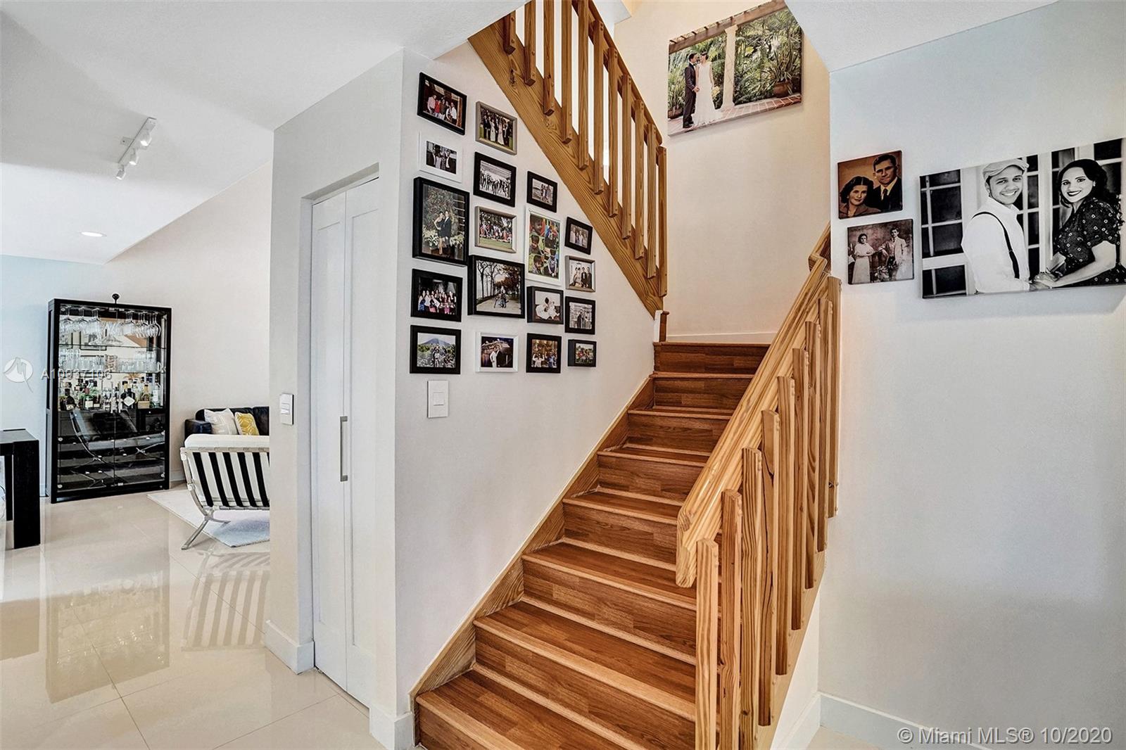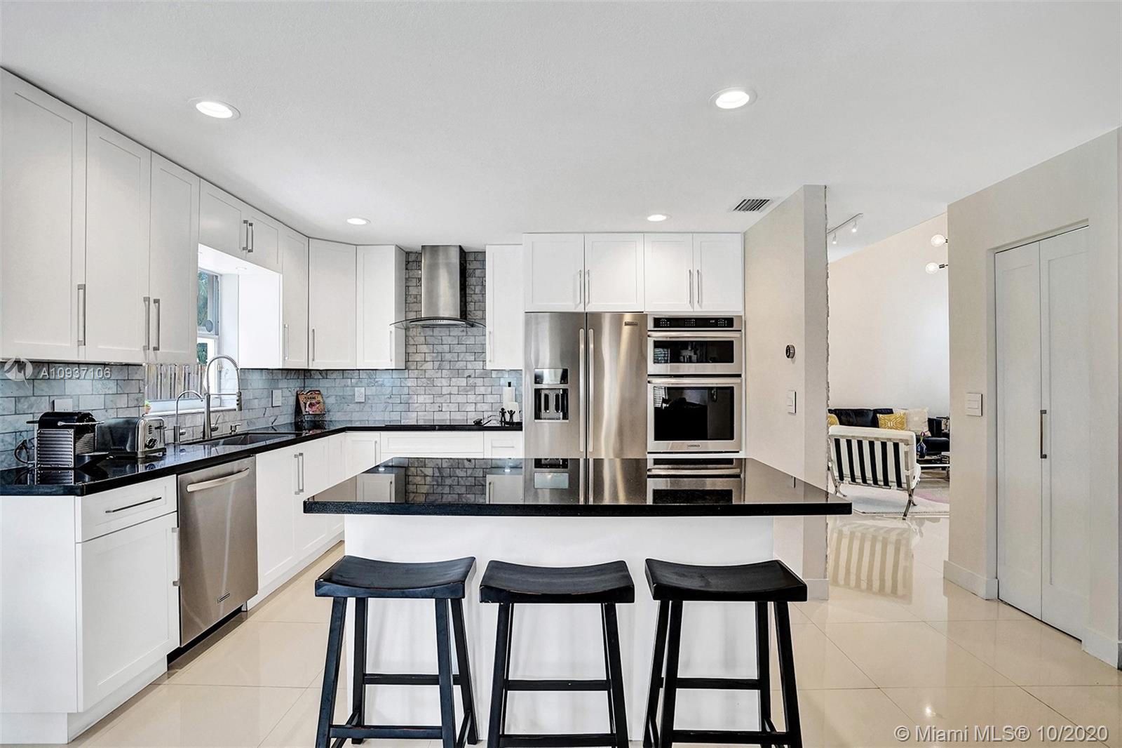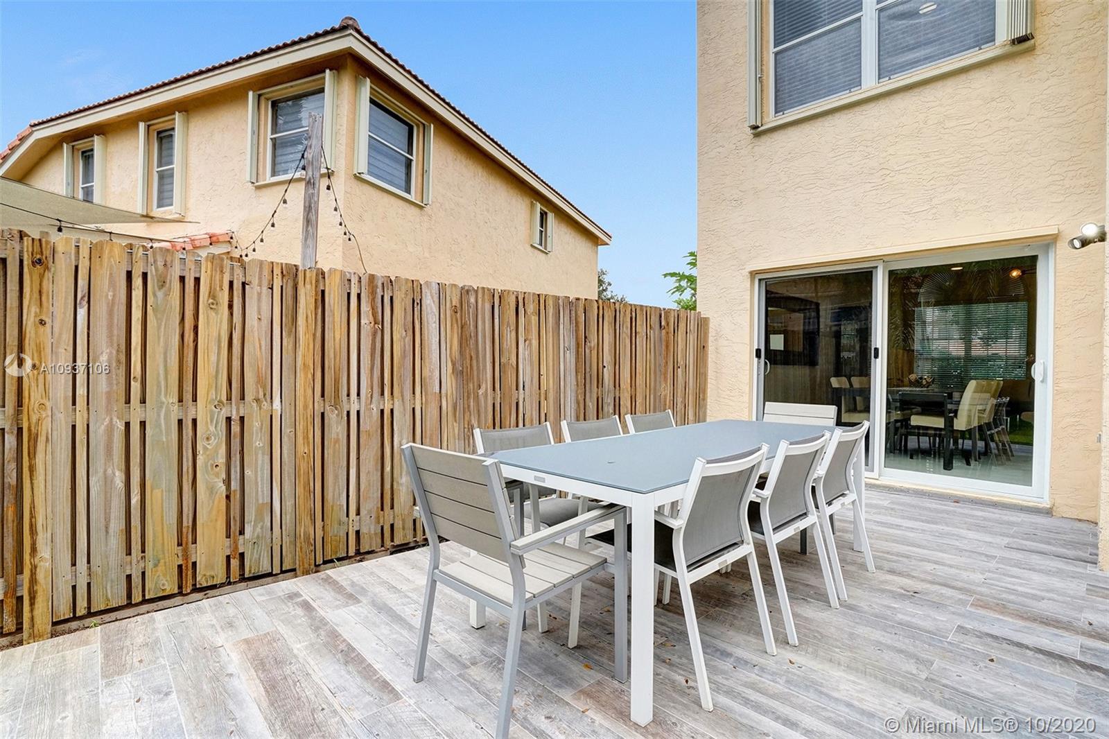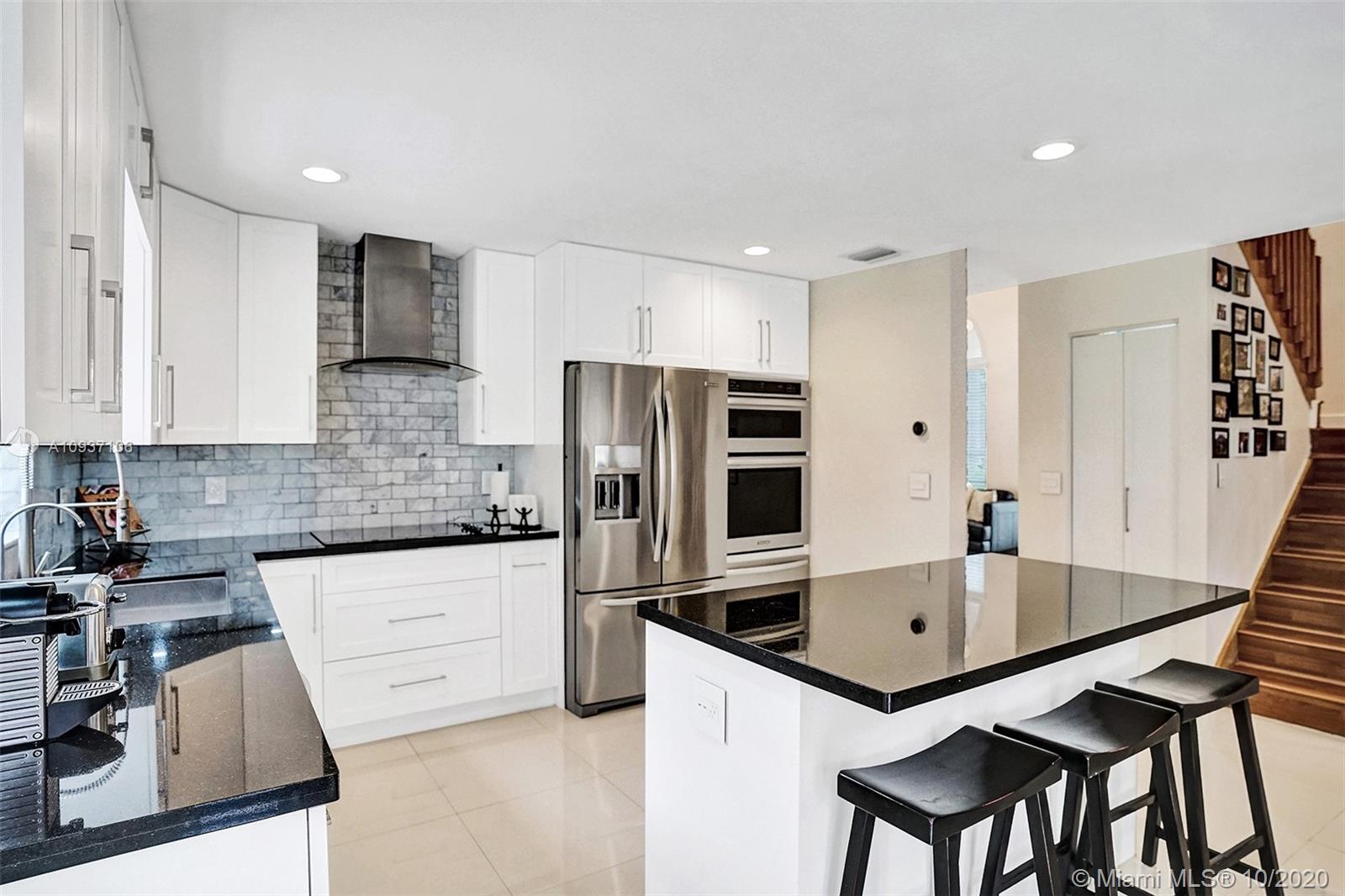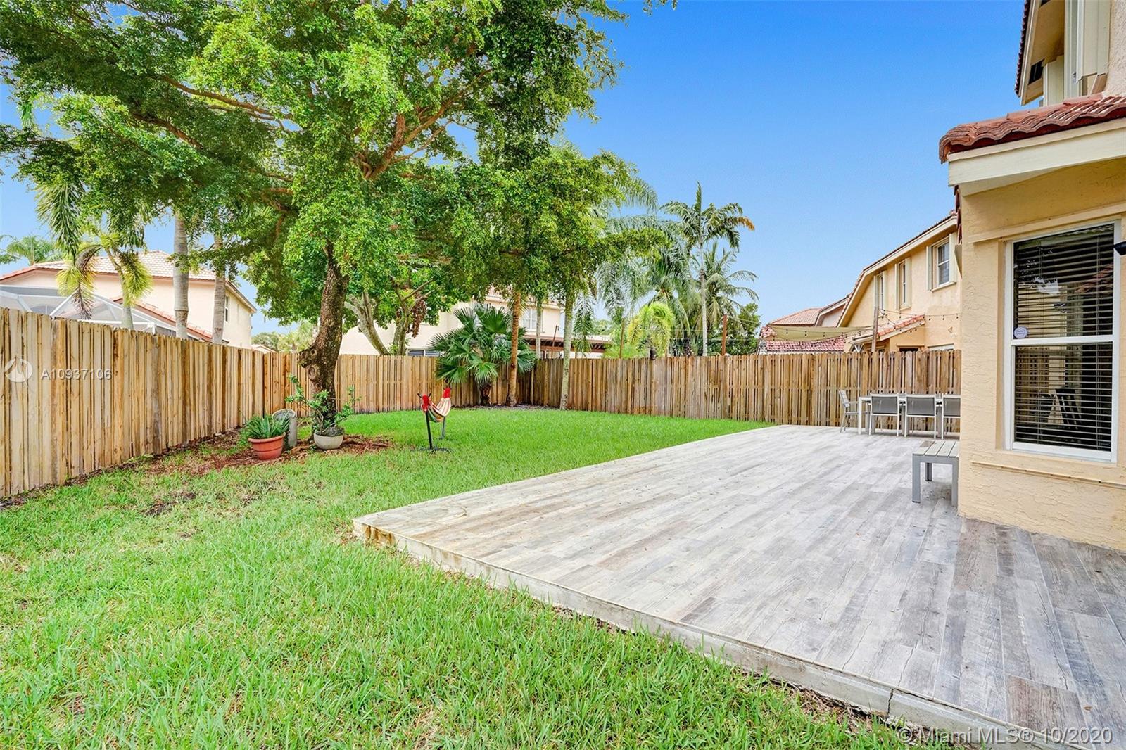 Impressive, updated 2-story home of 3/2.5 plus upstairs loft. Oversized porcelain tile throughout first level with double height entry & lving room. Accent rock wall divides formal dining room & top-of-the line kitchen open to family room & breakfast nook all overlooking the private, fenced backyard complete with deck & room for a pool. Finished with white cabinetry, stainless steel appliances, carrera marble backsplash & sleek black granite counters, this kitchen with walk-in pantry exceeds all your needs. Upstairs master suite has finished walk-in closet, alcove ceiling & laminate wood floors throughout. Loft can be modified to a den or 4th bedroom. Interior laundry room, sprinkler system, hurricane shutters, impact glass French & sliding doors + 2-car garage complete this lovely home.