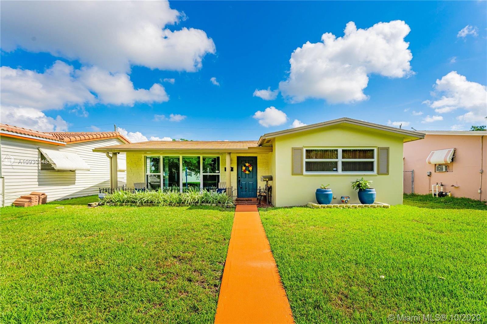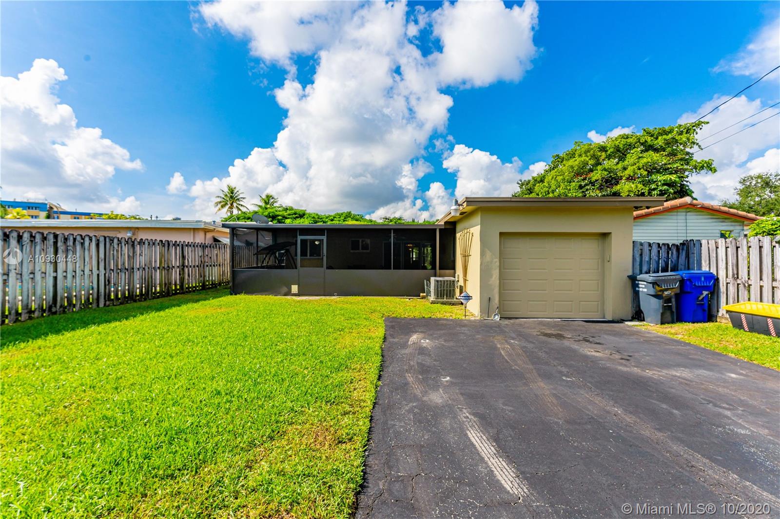 OPPORTUNITY KNOCKS... Well maintained home w/ 3 Bedrooms, 2 Bathrooms, and a 1 Car Garage in the rear. South Florida charm w/ open front porch and large custom bay windows. Features tile floors throughout, except for living room. Oversized screened in patio, great for entertainment. Fenced in backyard with paved driveway and plenty of space for a pool. COMPLETE HURRICANE WINDOWS and rear slider door. Newer A/C, Termite Warranty, 2006 Roof, auto sprinklers, non-flood zone, and on city sewer. COMPLETE TO YOUR TASTE!