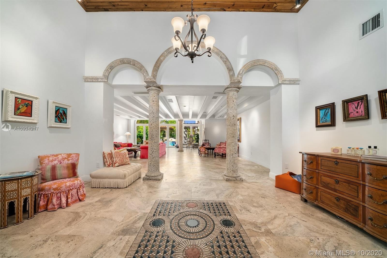 Private Tuscan garden oasis on guard-gated Sunset IV, located just steps away from the bustling Sunset Harbour neighborhood. Soaring vaulted wood ceilings and views of your own secret garden adorned by bougainvillea greet you as you enter this exquisite waterfront residence. Bright and open true chef’s kitchen w/ wine fridge, Subzero and Bosh appliances & brand-new Wolf range. Step through glass walls of hurricane impact doors and enjoy your central courtyard boasting covered summer kitchen+cabana bath & oversized sparkling pool w/ infinity jacuzzi. Relax in your oversized master suite with large walk-in closets, double sinks+vanity area. This stunning home w/ 75 ft on the water features natural stone flooring, 2 car garage, 3 bedrooms downstairs and 1 bedroom up w/shaded private terrace.