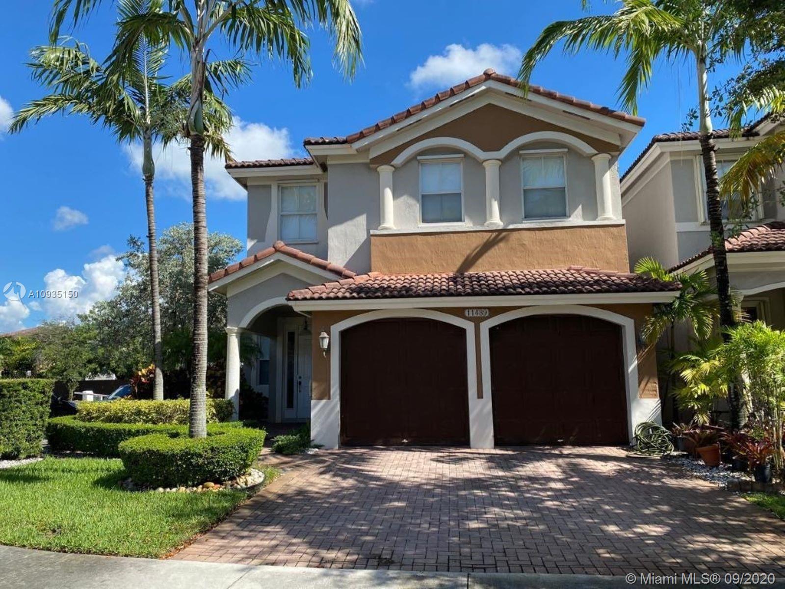 Beautiful and perfectly well maintained corner home in Islands at Doral. Located in private gated community Netherlands. 4 Bedrooms and 2.5 bathrooms. Wood accent wall Master Bedroom, Marble floors on first floor, wood floor on the upper level, Spacatto Wall at Family room and hall entry, Covered terrace and a cozy Patio with a beautiful Garden, entry foyer, granite countertops in kitchen with stainless steel appliances and wood kitchen cabinets. 2 Cars Garage PLUS Driveway. This community belongs to Island at Doral Clubhouse. Easy access to main highways and shopping plazas. Walking distance to Legacy Park.