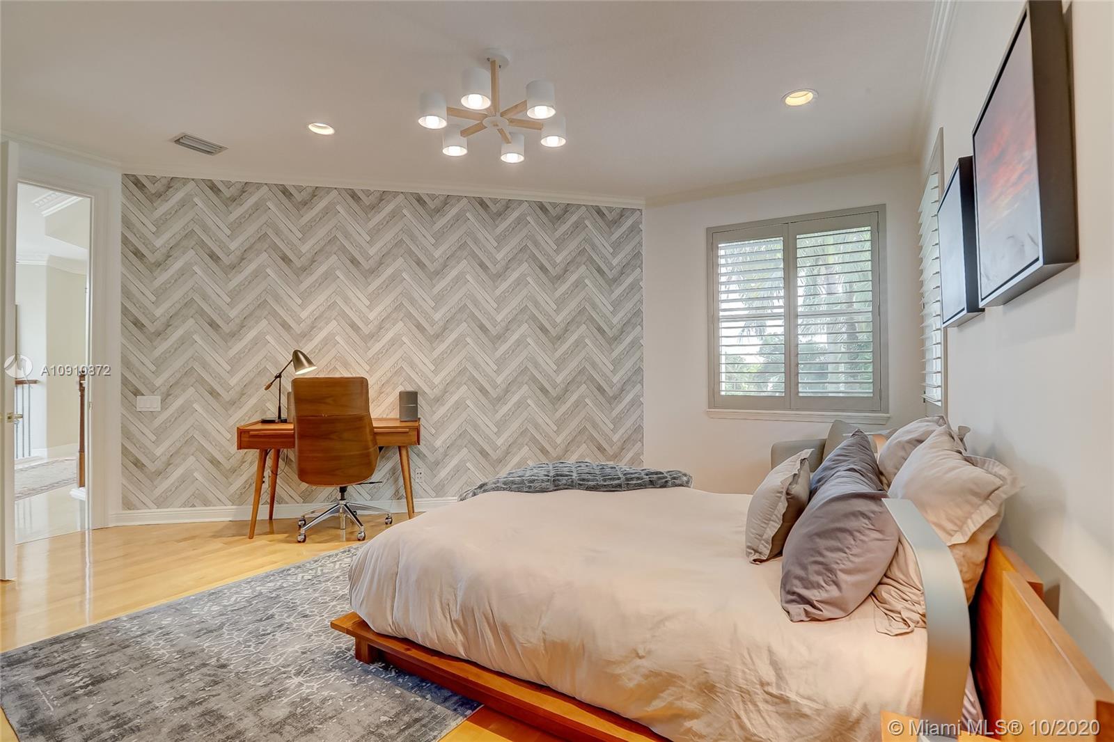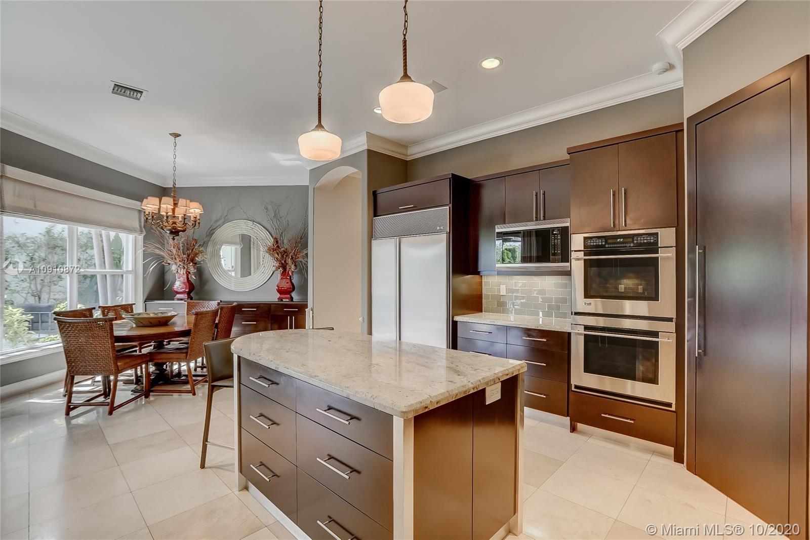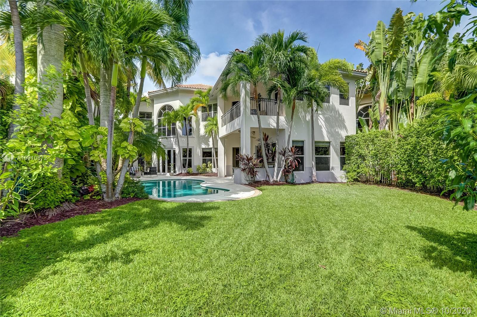 Golf course views from the perfect, large Brookman Fels family home in secure, gated community of Presidential Estates! Triple split layout with four bedrooms upstairs, plus two down. Beautifully updated modern kitchen w/ Sub Zero, double ovens, gas range & walk in pantry. Volume ceilings & 2 story windows in formal living / entry. The large patio overlooking golf course offers extra privacy & state of the art built-in DCS grill & side burner, outdoor speakers, large pool. Master suite w/ office space built-in, oversized bathroom & storage, his & hers closets & private balcony. Marble & Wood Flooring, large custom Closets, decorator Window Treatments & Moldings. Neighborhood playground & basketball courts. Close to top rated Highland Oaks schools & easy access to I95.