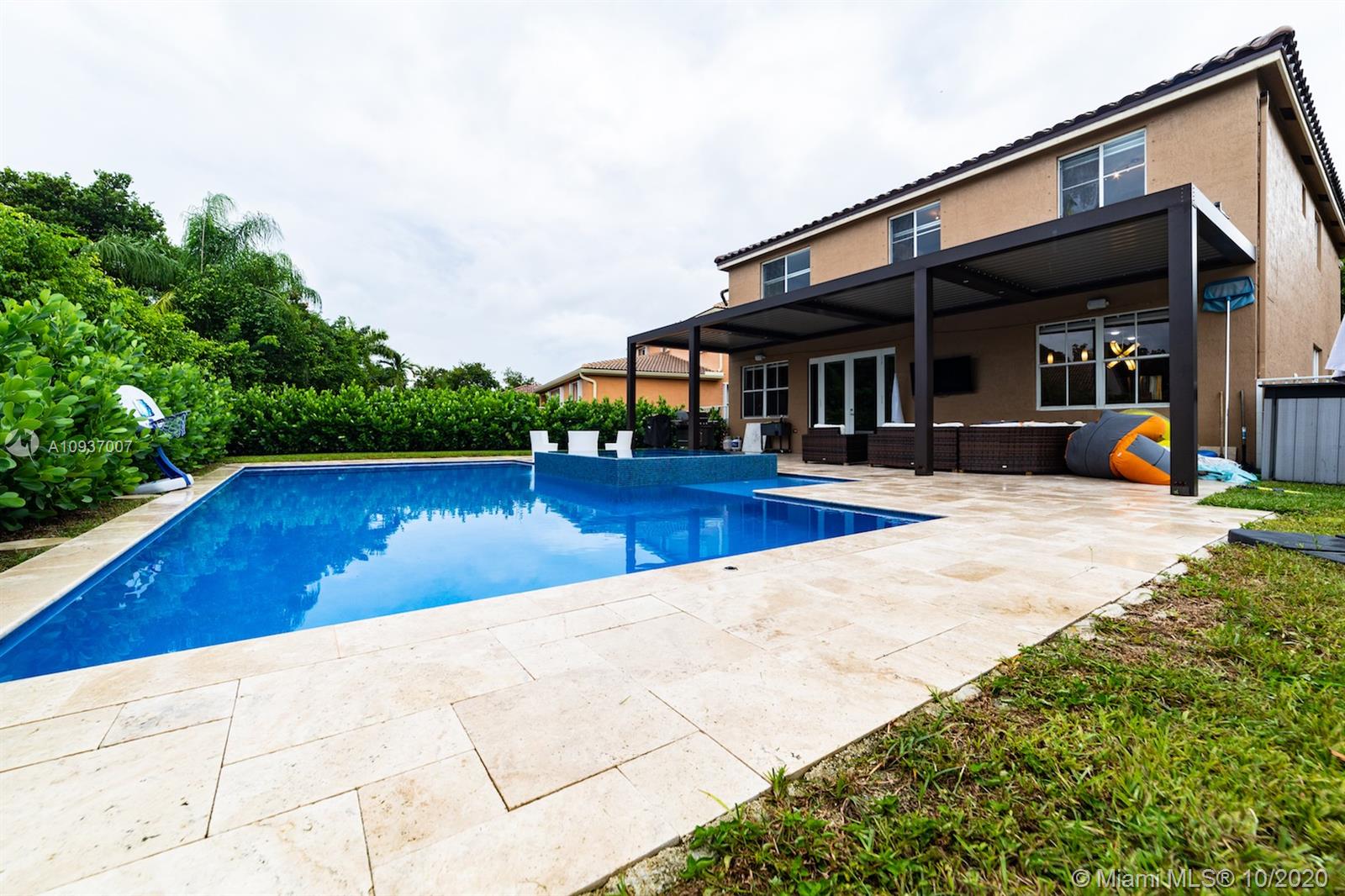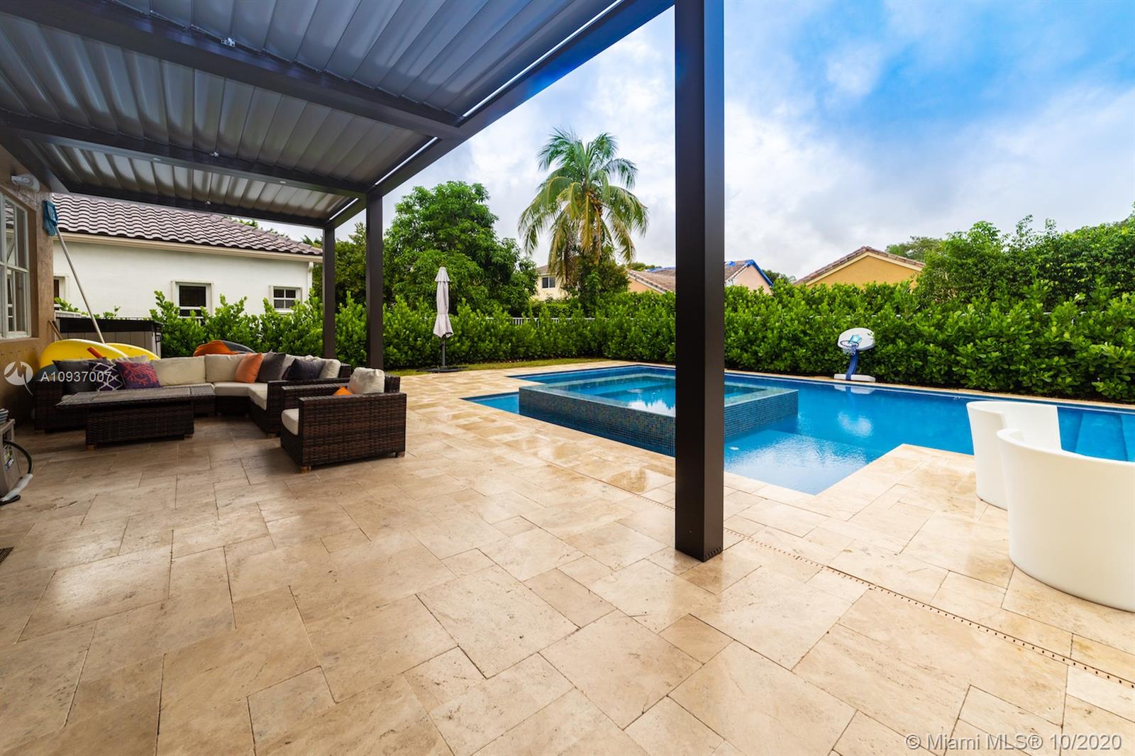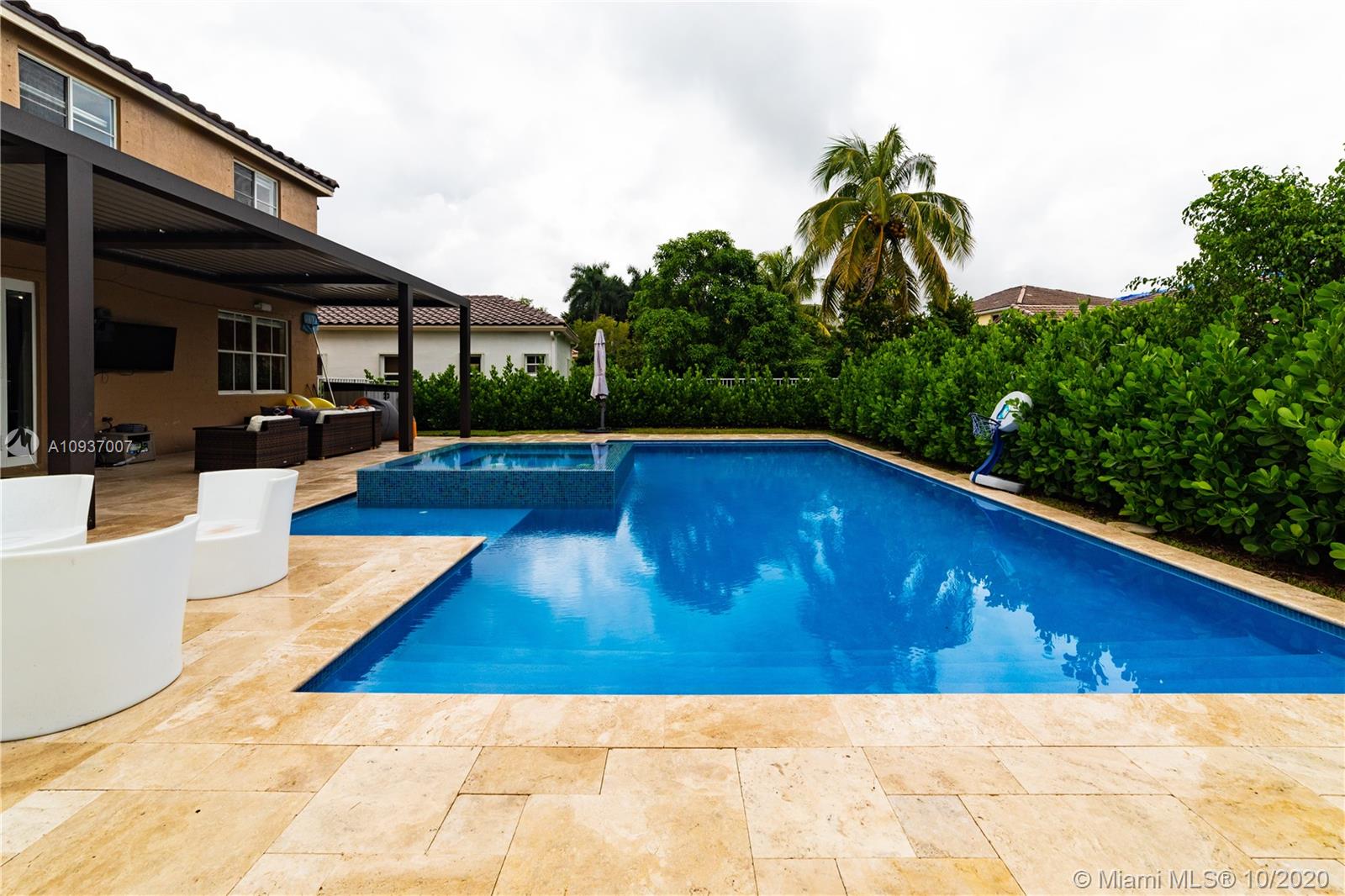 A COMPLETELY REMODELED, beautiful home in The Ridges community. NEW ROOF added in September, 2020!! 5 bedrooms and 3.5 bathrooms, close to great schools. All bathrooms have been recently remodeled as well. Kitchen has granite counters, Miele appliances, and wine cooler. The perfect outdoor space with a brand new contemporary heated salt pool with spa, travertine flooring and beautiful aluminum louver pergola (very rare!). Perfect for lots of family memories and entertainment. Lots of updates, Impeccable condition and ready to move in. A must see!
