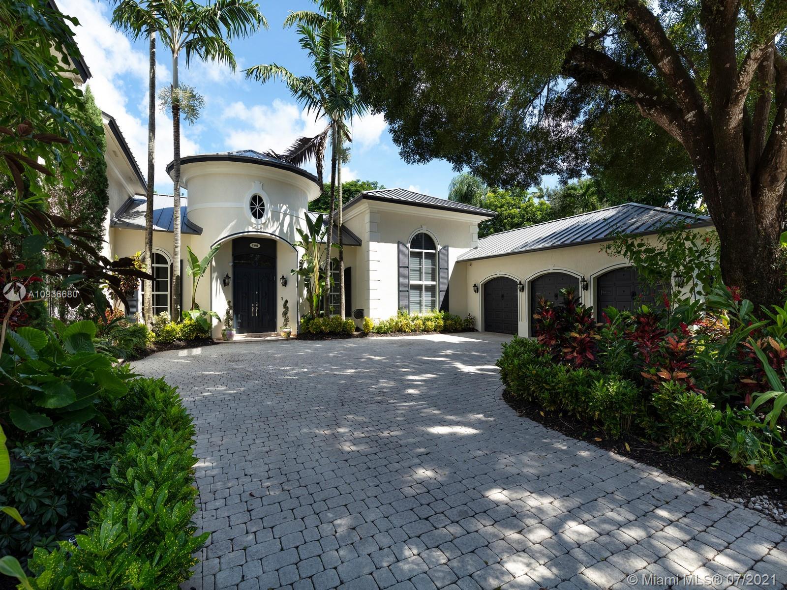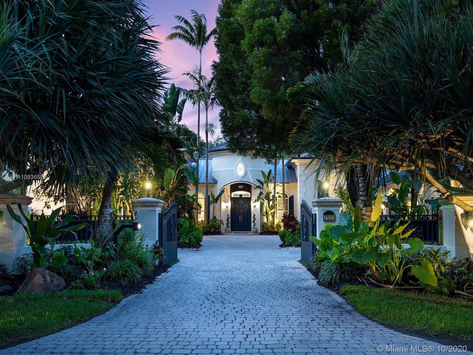 Luxurious Spanish Style Estate located in sought after N Pinecrest. Enveloped by pristine landscaping on a deep acre lot. This gorgeous gated home features a grand foyer, elegant living rm w/outdr views, chef’s eat-in kit w/top of the line appl including new Subzero’s, formal dining rm & family rm w/breakfast area. Dual Master suites, one on the ground level w/walk-in closet, resort-style bath & outdr access to patio area & the 2nd master bedrm, nested on its own on the 2nd level w/large space, walk-in closet, & spa-like bath. An outdr oasis awaits w/covered terr, fully tiled resort-style pool/spa. Detached 1 bed/1 bath cottage w/summer kit & large living space. Add Feat’s: New metal roof, new marble flrs, 3 car gar, just painted, service quarters, & office/library. Pinecrest Elite Schls.