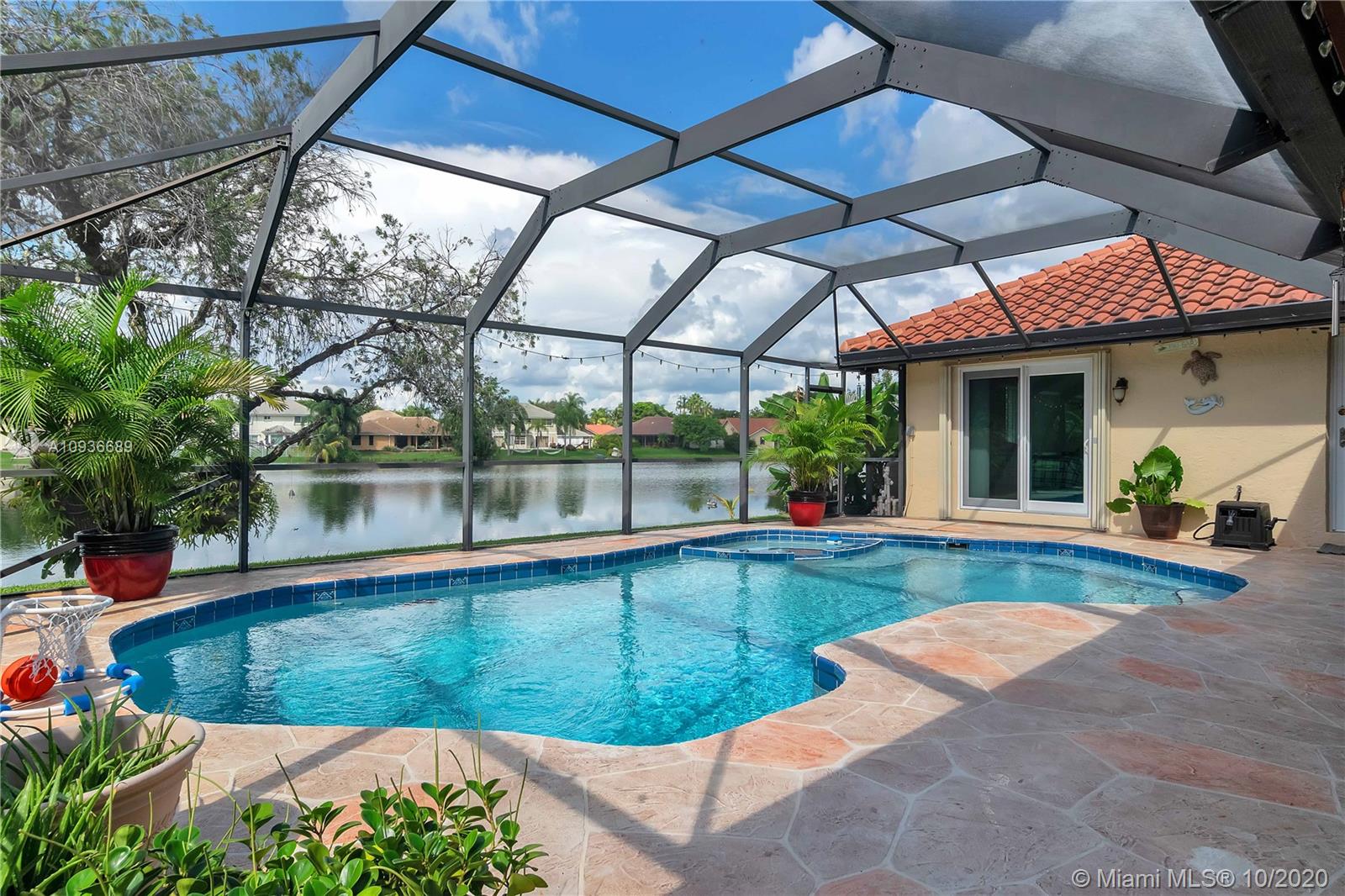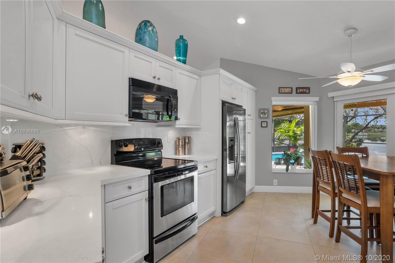 This immaculate one-story home is on a lake-front lot, in the highly desirable community of Shenandoah. Completely updated - new roof in 2018, new water heater, newer central A/C, gorgeous quartz countertops, custom cabinetry & newer stainless-steel appliances in kitchen, LED lighting, entire home is PGT Certified Hurricane Impact - including garage door. Great sized pool with new water pump, large 24x24 tile & wood laminate flooring. Master bedroom is separated from the other rooms for privacy, his & hers walk-in closets, larger bathroom with shower & tub. Spacious living areas that can be used in a variety of ways. This home has a 2 car garage with a full-sized laundry room, and comes professionally landscaped. 3D VIRTUAL TOUR AVAILABLE.
