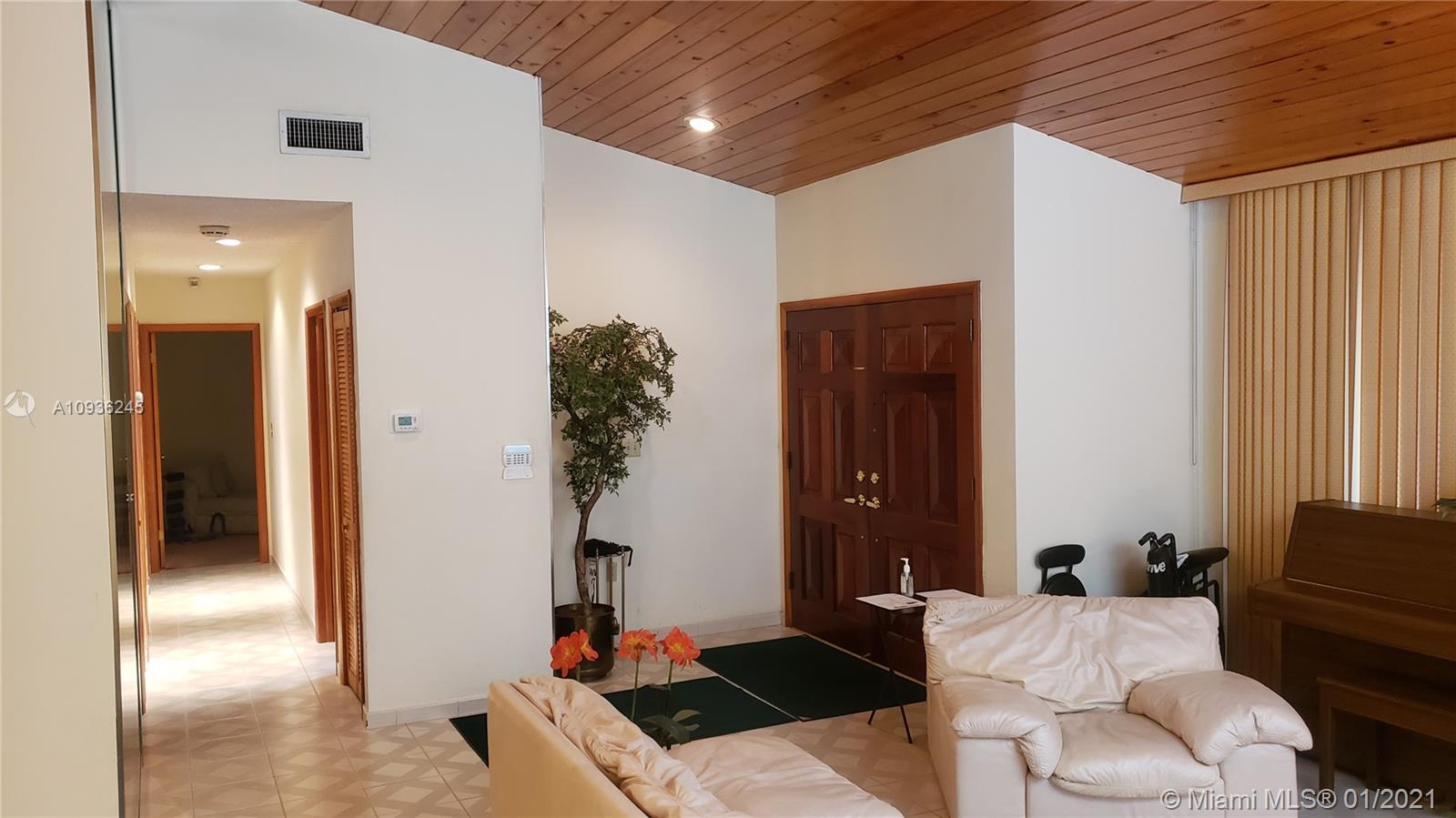 Designed and built in 1987 for comfort and luxury. Total 2,059 SF adj. under one entire roof includes a garage with laundry and storage area. Three-bedrooms plus den (4th bedroom). Spacious, open feeling, Florida, Living and Dining Rooms under majestic high cathedral ceilings. Twin A/C system. Auto-Start whole-house natural gas power plant. Primary bath with jacuzzi-tub. Alarm Security System. Central Vacuum Cleaner. Wrap around driveway parking. Cozy courtyard with covered terrace, mango, avocado, lychee fruit trees and space for a pool. Ready to live in or update to taste. A gem! No other available like it in zip code. Bring your pickiest buyers. Available video tour. Not subject to appraisal.