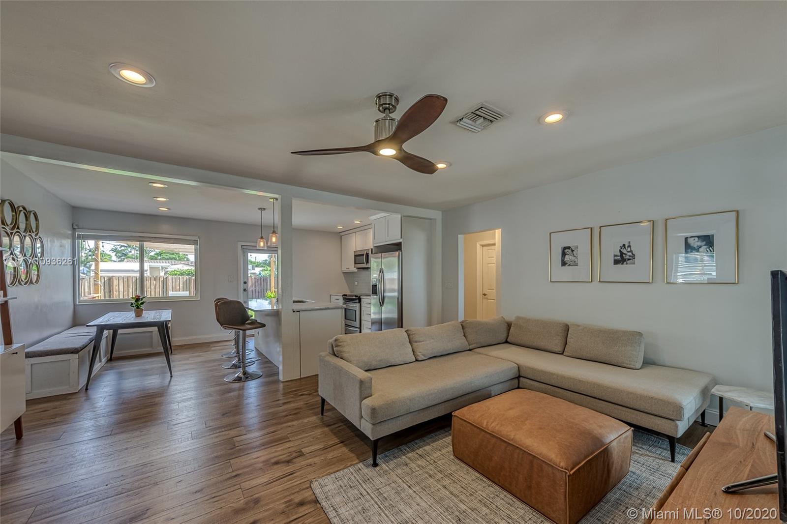This is a GEM! Completely Renovated home 2 bedrooms, 1 Bath PLUS Large Bonus room that’s a perfect fit for den, home office and or workout space. New PVC plumbing, remodeled kitchen with Quartzite countertops, new bathroom, new electrical wiring and panel, flooring, lighting fixtures, inset lighting, crown molding detail, new Samsung washer and termite treatment all done in 2016. Installed impact windows (2017) and new AC (2018). Outdoor features new resurfacing knockdown texture to the whole house, a patio deck and pavers to enjoy the outside,tons of backyard space that is a blank canvas for entertaining and modern style utility shed for EXTRA storage. Modern coastal style living move-in ready, trending location- walking distance to so many spots. See Broker remarks to show.