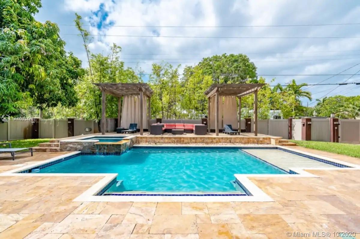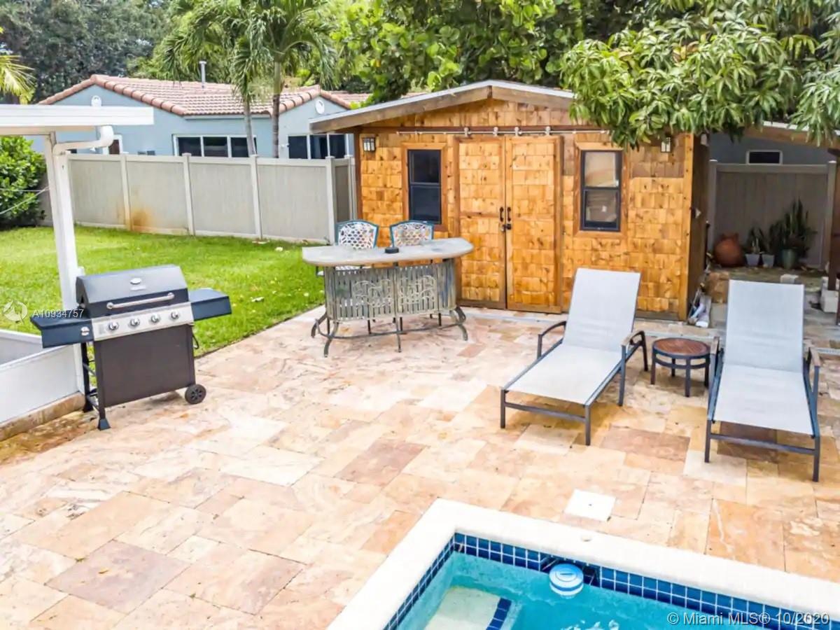 This Hollywood Dream House is a 2 bedroom 2 1/2 bathroom very spacious home with an open concept. Circular driveway with attached shaded pergola that can fit two full sized cars. Very clean and bright kitchen with all white cabinets and white appliances including fridge, gas range, microwave, garbage disposal and dishwasher. All windows and large sliding doors have been updated to hurricane proof quality. Completely renovated backyard with screened in porch and a great size heated pool and hot tub. Two detached pergolas and a 40' travertine stone raised deck surround the pool. Privacy fencing around the entire backyard with a driveway accessing the alley. Sprinkler system on a well. Home is located just 2 miles from Hollywood Beach and Boardwalk and 1 mile from Downtown Hollywood.