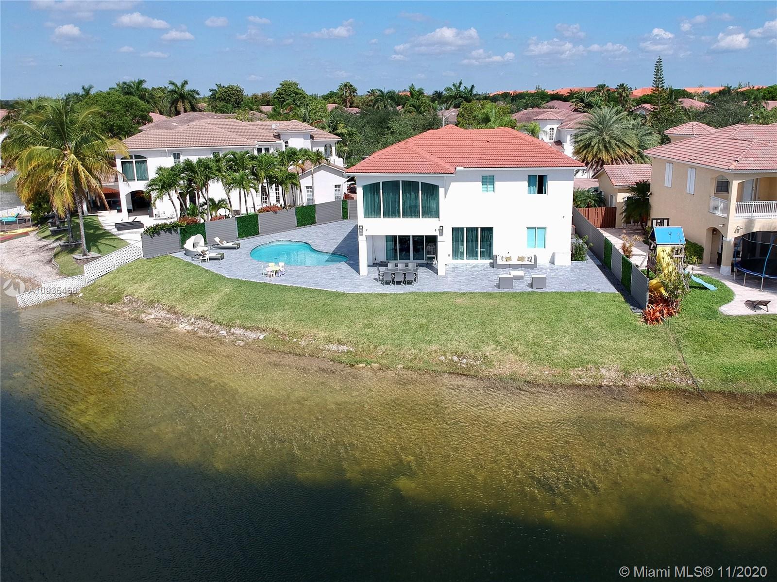 For sale Luxury Front Lake Single Family Home. A+ Location and Modernism distinguish this totally remodeled home. Located in the exclusive neighborhood of Mediterranea in Doral Isles at Doral. Pool & Courtyard newly built. Elevator. Italian Kitchen with a Semi-Precious Stone Counter Top that will take your breath away, Last generation Miele Apliances. New floors on both levels. Smooth walls. Bathrooms with Italian marble and porcelain and ultra clear cabins up to the ceiling. High efficiency Carrier air conditioners. All windows and doors are high impact. Entry door against hurricanes. Perimeter fence in wood and stainless steel. All the walking closets were made and brought from Italy, as well as all the internal doors of the house. Lower value property may be accepted as part of payment.
