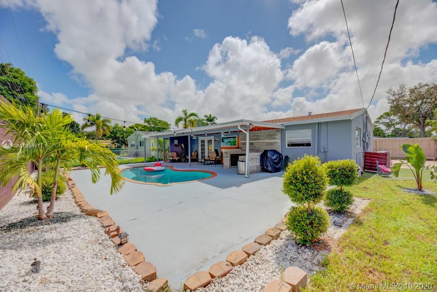 Totally remodeled in 2018. Amazing home is 1800 sq ft, new roof, new floors, new kitchen, new bathrooms, new appliances and even new pool resurfacing. Bring only your clothes and toothbrush. This great home is in pristine condition inside and outside. The exterior of the home offers a large lot with plenty of space for parking and even well maintained lawn. The interior features beautiful neutral colors, light colored floor tiles, newer washer and dryer, and even newer stainless steel appliances. The bathrooms have been tastefully remodeled with modern finishes. The backyard is a family's dream! Large pool, covered terrace, built in kitchen with lots of beautiful landscaping. The side of the home offers lots of covered and safe storage and blends in magically. A sacrifice at this price!