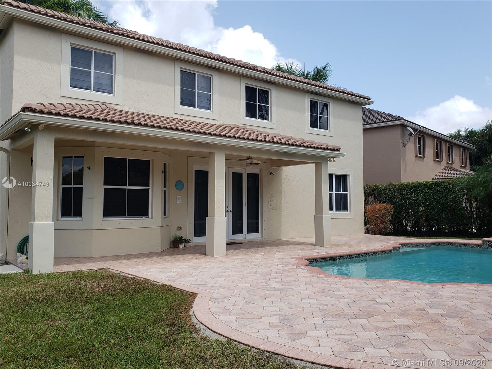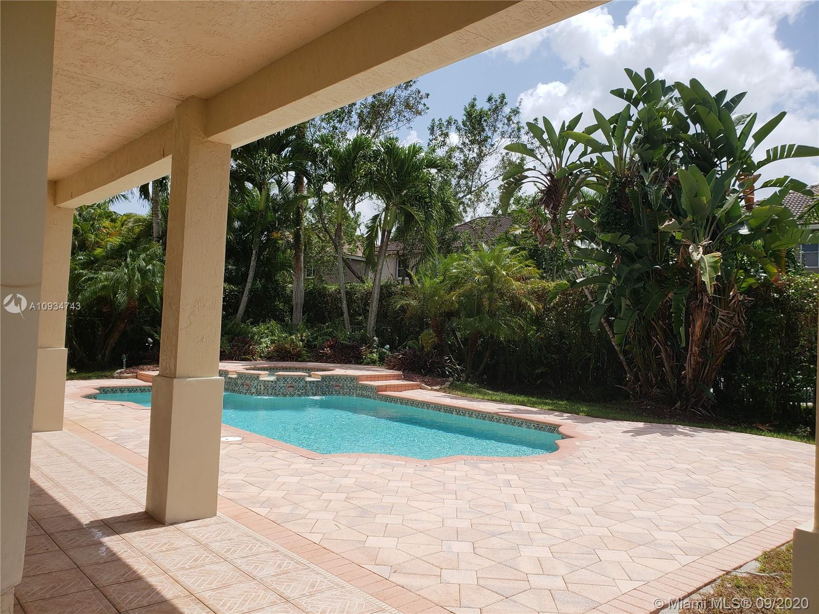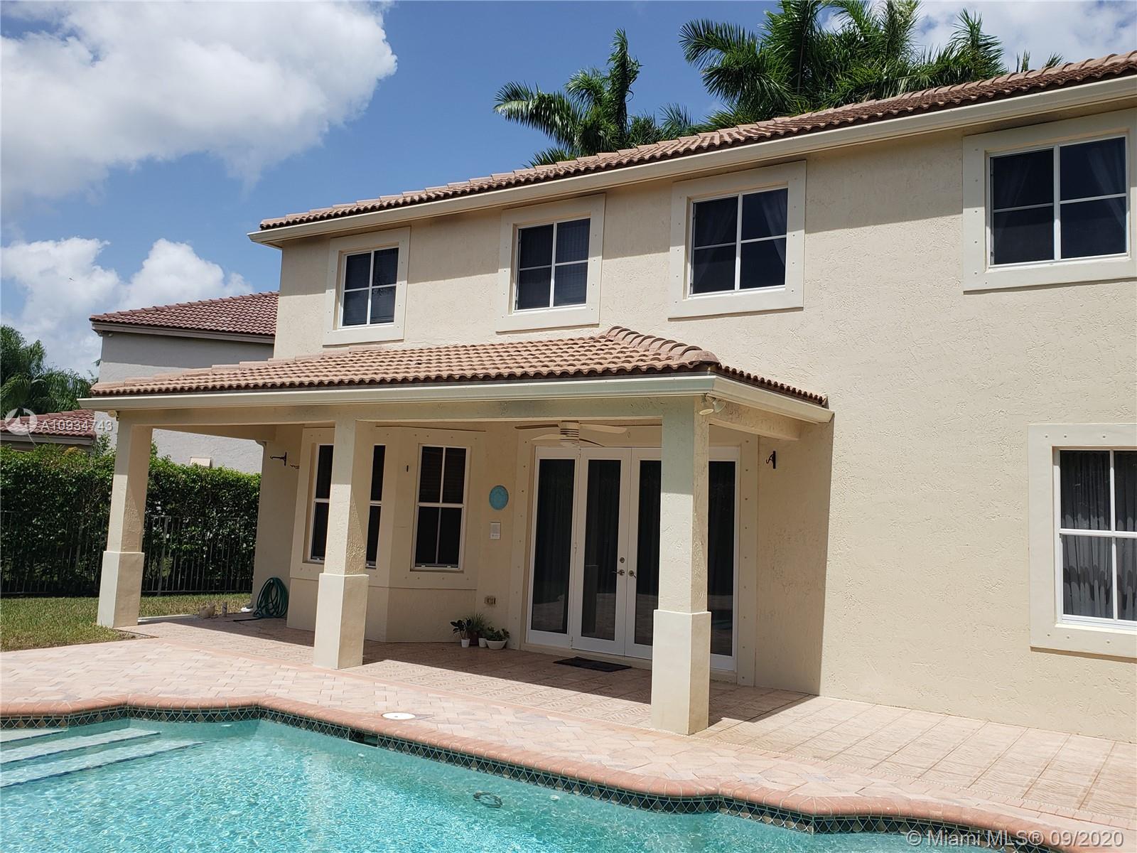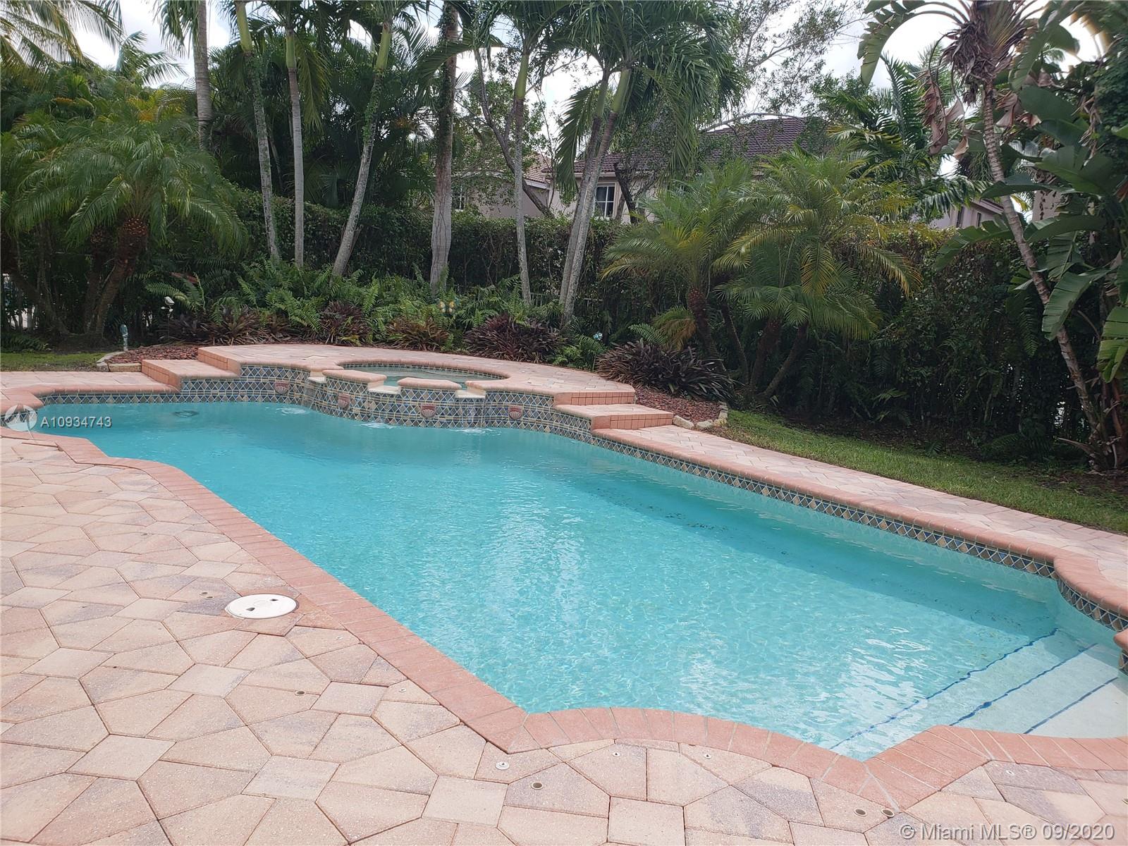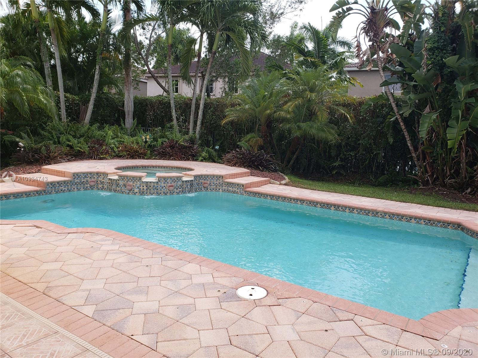 Gorgeous house in a cul-de-sac location. Large swimming pool with a spa. Beautiful landscaping. The garden is all fenced with the privacy of ficus trees surrounding it. The kitchen has granite counter tops and a double oven layout. Ample family room area. One full bathroom downstairs. Laundry room that has also a tub inside the house. Upstairs the house has 5 bedrooms. The master bedroom has a very good size w/two walking closets. Master bath has a separate shower and a roman tub. One of the bedrooms has a private bathroom and there is an addition of a loft upstairs. Plenty of storage/closet space.