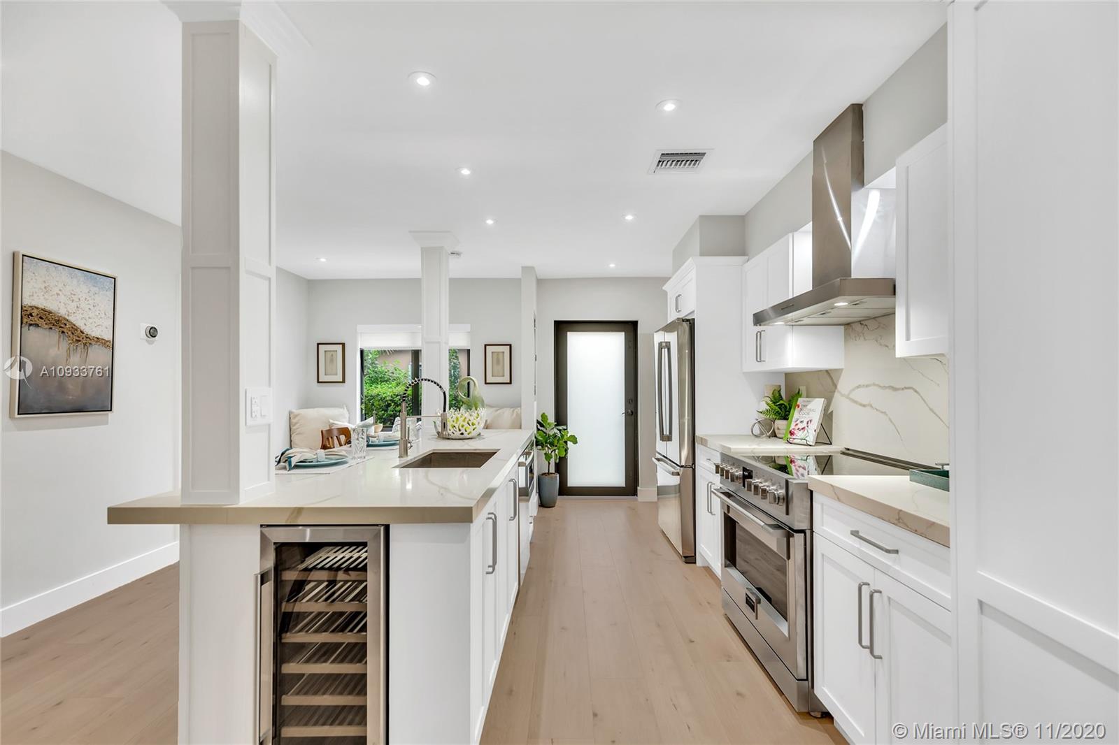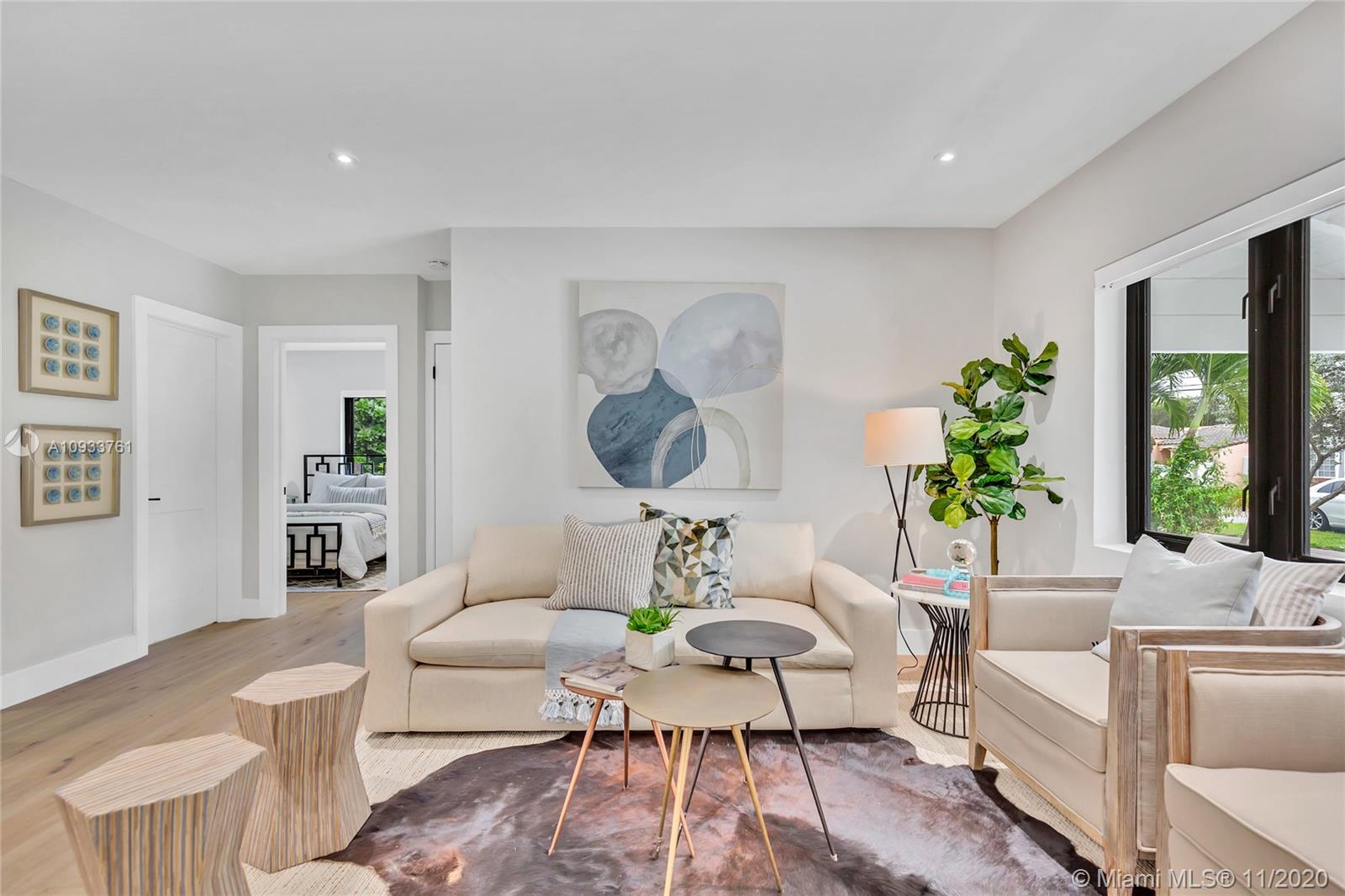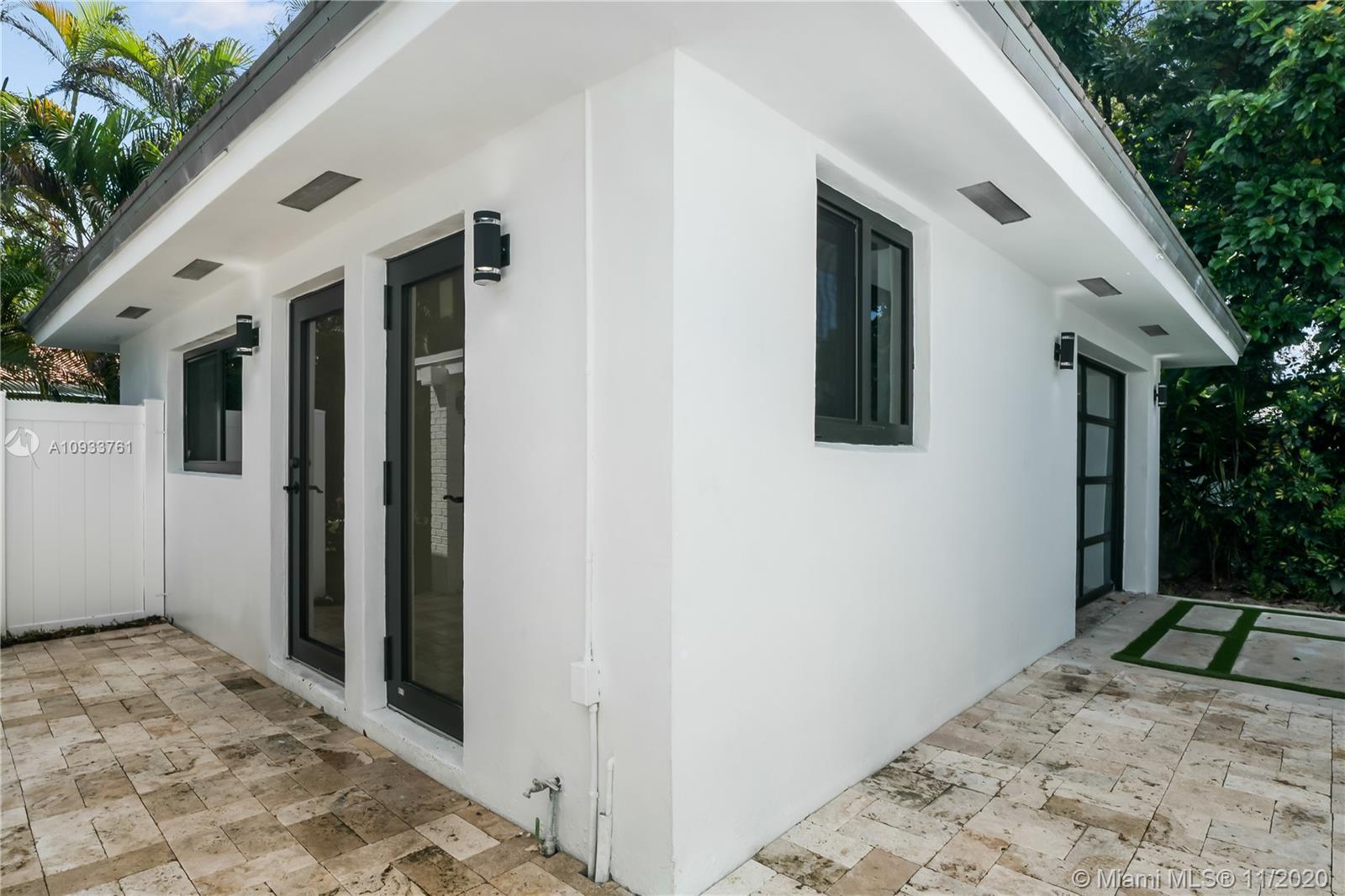 Stunning 4 bedroom, 2 bathroom home with detached 1 bedroom/1 bathroom guest suite and garage on quiet Coral Gables street with "no thru" traffic! This open concept home is perfect for entertaining! Extensive renovations include gorgeous kitchen with quartz countertops and new stainless steel appliances, carrara marble tile in main home bathrooms, all new impact windows and doors, AC, and electrical...and last but not least, an amazing driveway that gives this home the wow factor! 7500 sq ft lot with room for a pool. Come see for yourself all the details that this home has to offer!