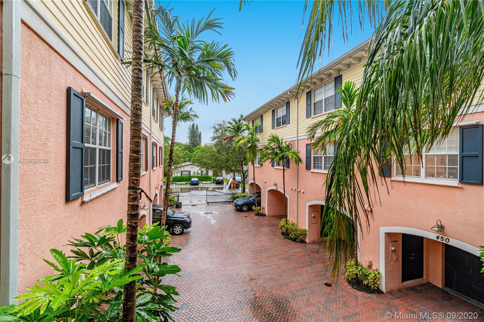 This beautifully maintained tri-level, 2 / 2.5 townhouse with a bonus room on the first floor features gorgeous hardwood flooring, high-end stainless steel appliances, granite countertops, and built-in closets in both bedrooms. The primary bathroom has granite counters and a frameless shower. The AC unit was recently changed. The unit has an attached 1 car garage with separate storage and 1 outdoor parking space. The community is lined with tropical landscaping and in the process of being refreshed. The LOW HOA FEE covers the insurance and roof. The community is located in Downtown Fort Lauderdale's premier Art Community, Flagler Village. Walking distance to Las Olas restaurants and shops. Bright Line High Speed Train and Public Transportation all within walking distance.
