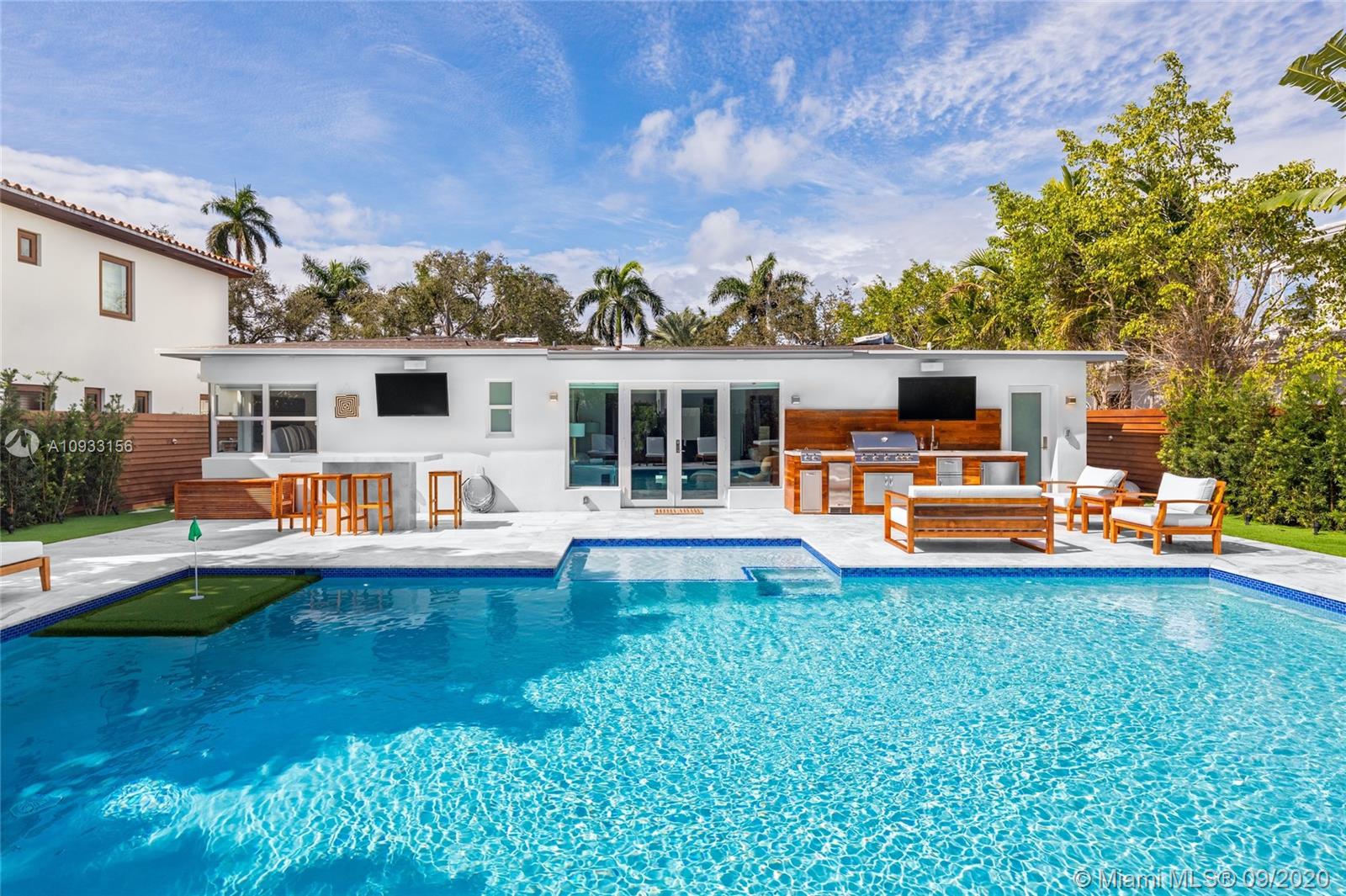 Enjoy living in this impeccably renovated modern home. POOL AND MASTER ADDITION COMPLETED IN 2019. This 4 bedroom/4 .5 bathroom contemporary residence located on the prestigious North Bay Road boasts top of the line finishes, an open floorplan and hurricane impact windows and doors. Backyard is an entertainer’s paradise with a brand new pool and built in summer kitchen. Unwind in your master suite and relax in your spa-like master bath featuring a spacious walk-in shower, double sinks, and an artfully designed marble backsplash. Sleek open kitchen with stainless steel appliances, smart refrigerator, and a waterfall cooking island make this casually elegant home complete. Experience living in this private oasis, conveniently located in the heart of Miami Beach.