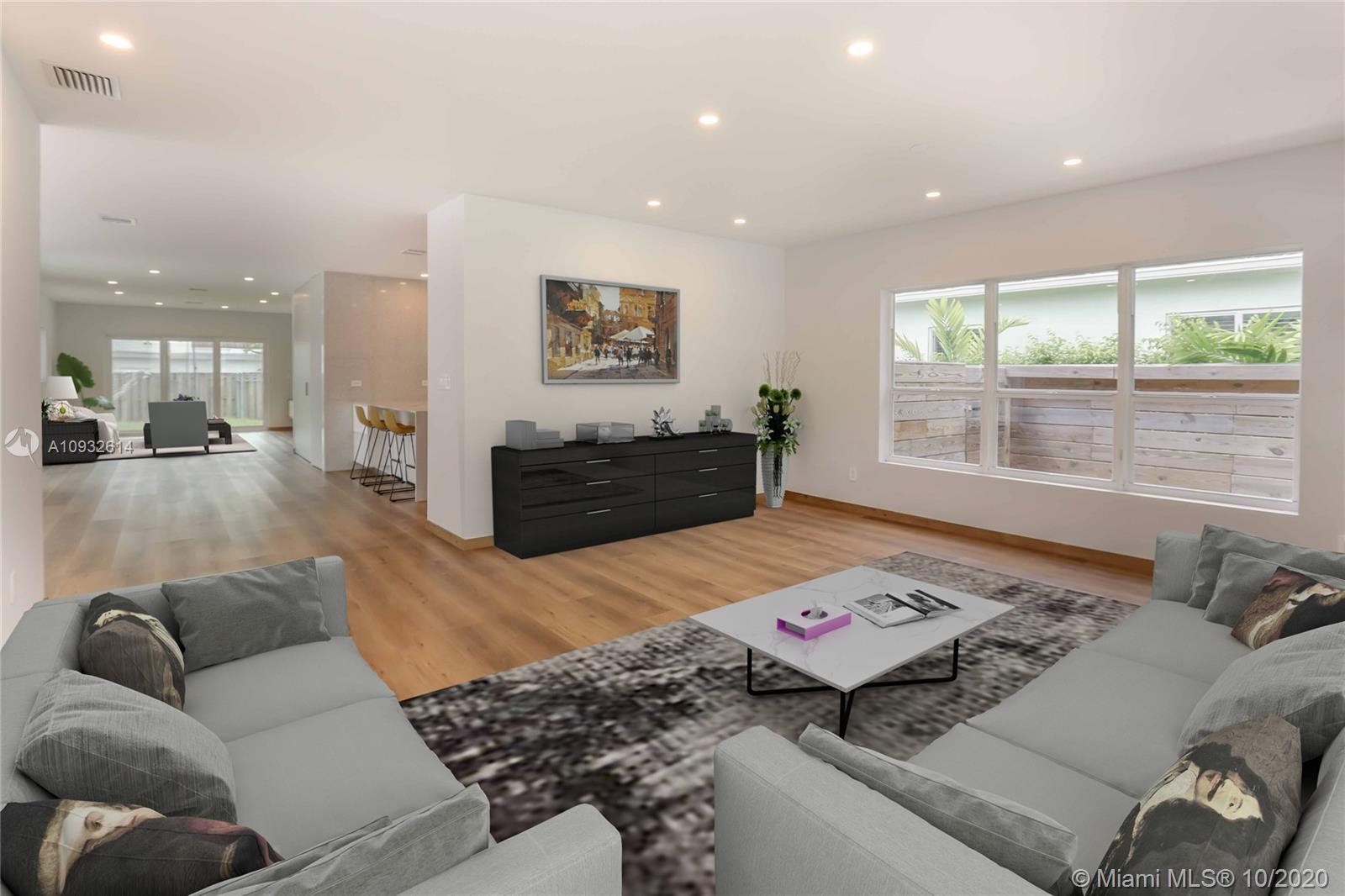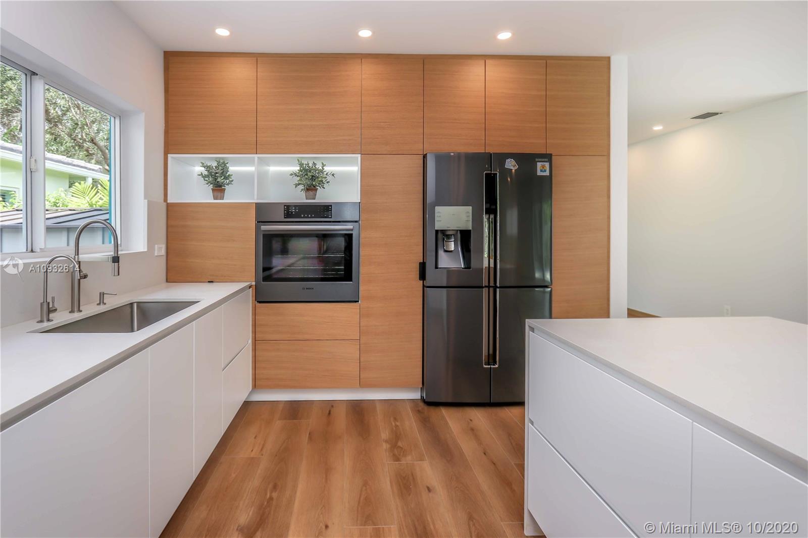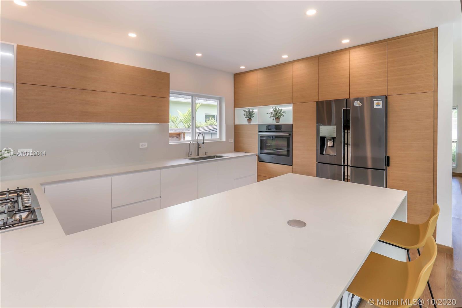 Beautiful home w/ 3 bedrooms & 2 bathrooms located in the heart of Hollywood Lakes with all new wiring, plumbing, & roof. Outside features a newer driveway, covered porch, & fresh landscaping. Fabulous state of the art modern kitchen; completely updated with gorgeous Caesarstone quartz countertop & terrazzo style backsplash w/ blue glass accents, European custom made cabinetry, & peninsula w/ gorgeous waterfall countertops. High end stainless steel appliances such as Bosch oven & gas cook-top, Samsung counter-depth refrigerator, & farmer sink. Open floor plan w/ formal dining room & living room w/ lots of natural light along w/ LED lighting throughout. Master bedroom w/ sliding door into the backyard & completely updated bathrooms. Limestone open patio & fenced in backyard;room for a pool.