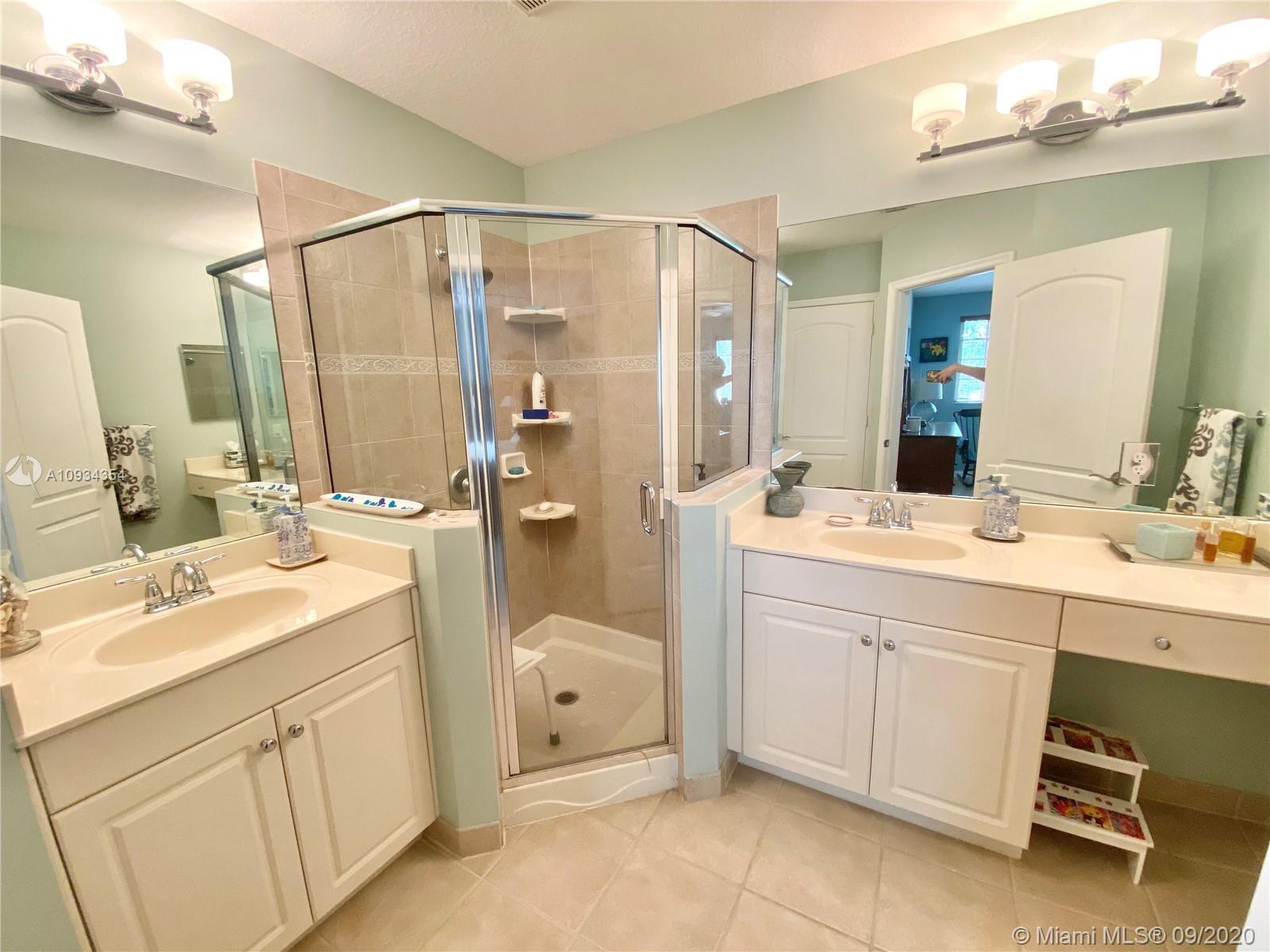 Beautifully updated, spacious townhouse in sought after Town of Davie. Enjoy watching the sunrise every morning with this home's peaceful backyard water views. Gorgeous kitchen with impeccable granite, maple wood cabinetry, and stainless steel appliances. Open concept has kitchen bar overlooking dining and living room- perfect for entertaining! Rare floor plan basically has two master bedrooms upstairs with walk-in custom closets and ensuite bathrooms. Huge master bath with double sinks, walk-in shower, separate toilet room, and linen storage. Upstairs floors all updated with pristine wood tile. Hurricane impact windows and doors throughout. Low HOA includes lawn care and Saddle Bridge amenities. Gorgeous pool and child's play area just a few steps away. Ready to move-in and easy to show!