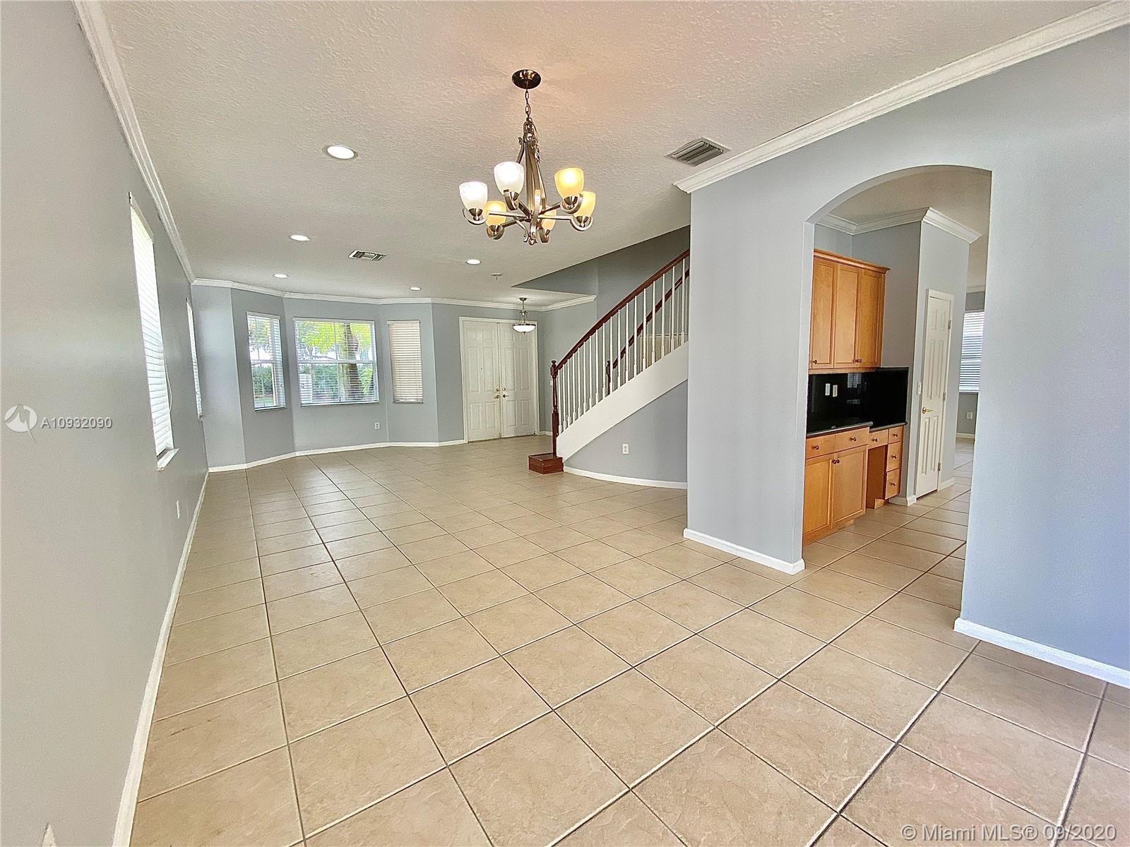 BEAUTIFUL & VERY SPACIOUS HOME FEATURING 4 BEDROOMS + DEN/OFFICE, OPEN KITCHEN WITH CENTER ISLAND & STONE COUNTER TOPS. CROWN MOLDING, CERAMIC TILE THROUGHOUT THE FIRST FLOOR AND LAMINATE WOOD UPSTAIRS, DRAMATIC FOYER ENTRY WITH SPIRAL STAIRCASE, OVERSIZE OWNERS SUITE & MASTER BATH WITH DUAL SINKS, SEPARATE SHOWER & ROMAN BATHTUB. TWO BALCONIES IN FRONT AND BACK OF THE HOUSE, LAUNDRY ROOM WITH WASH TUB. EXCELLENT LOCATION, RIVIERA ISLES OFFERS A RESORT STYLE CLUB HOUSE WITH TENNIS COURTS, POOL, GYM, GATED ACCESS, NEAR EVERYTHING!