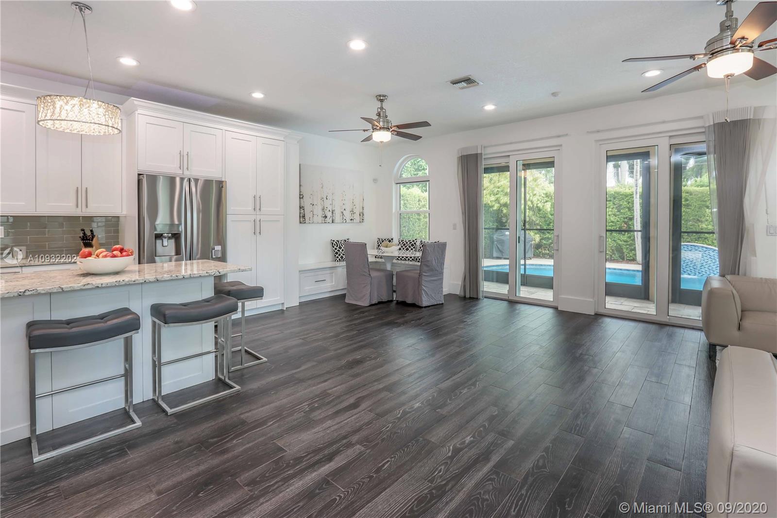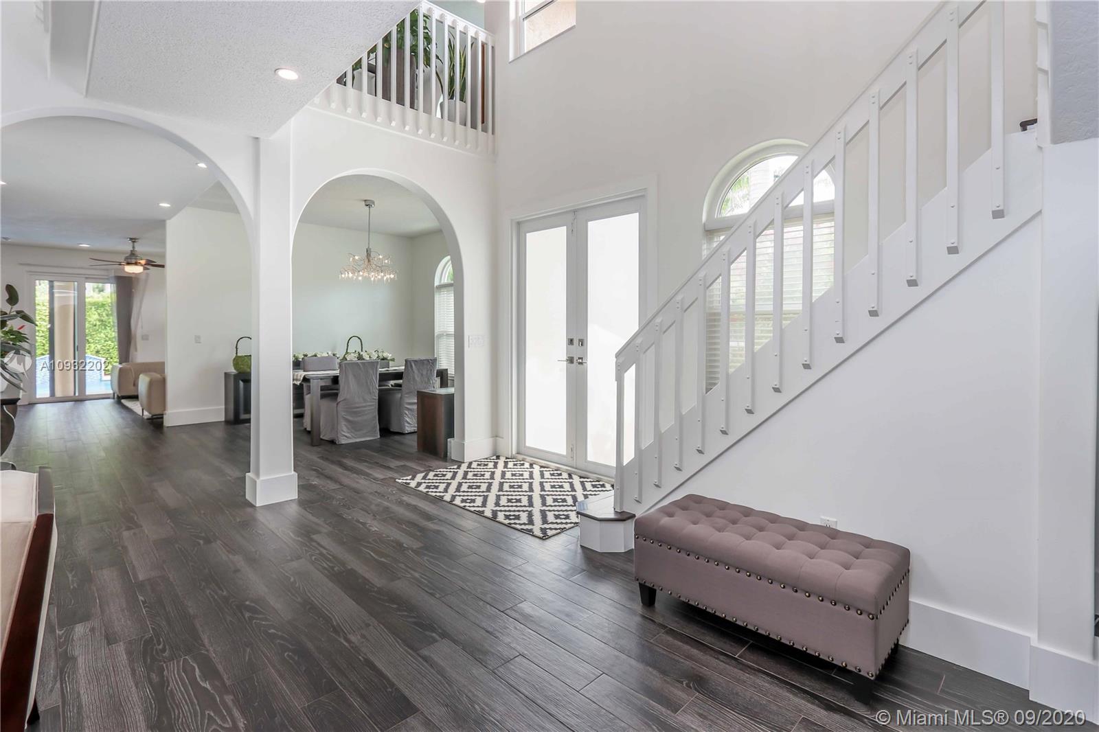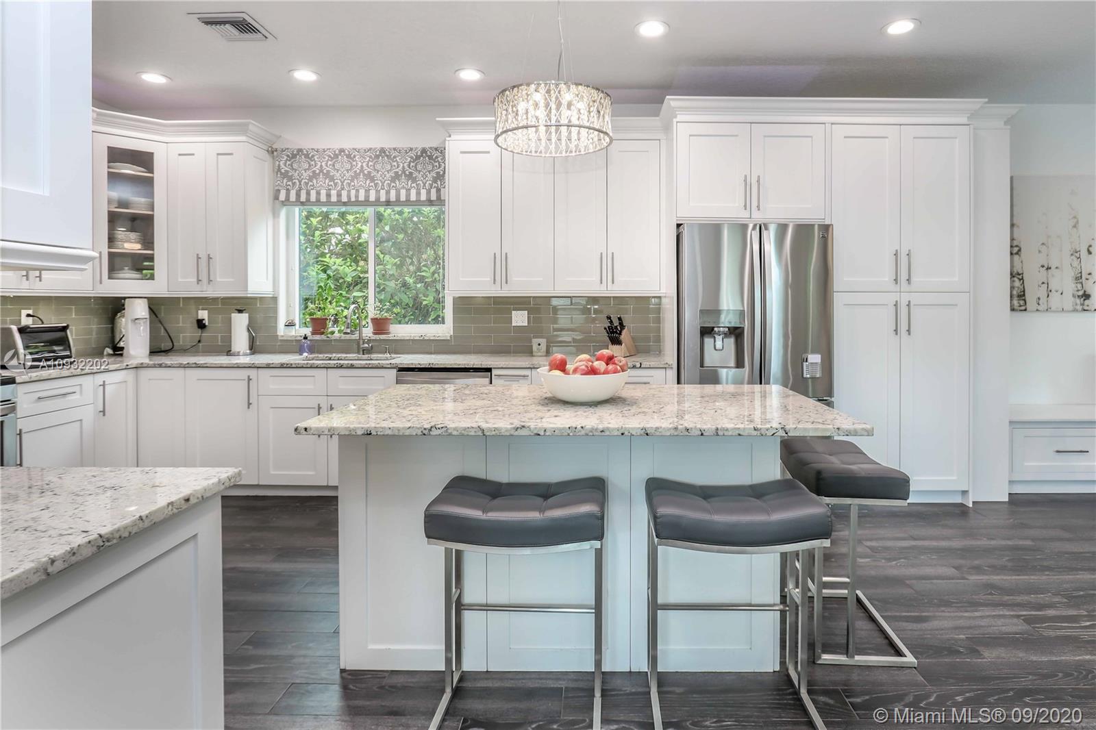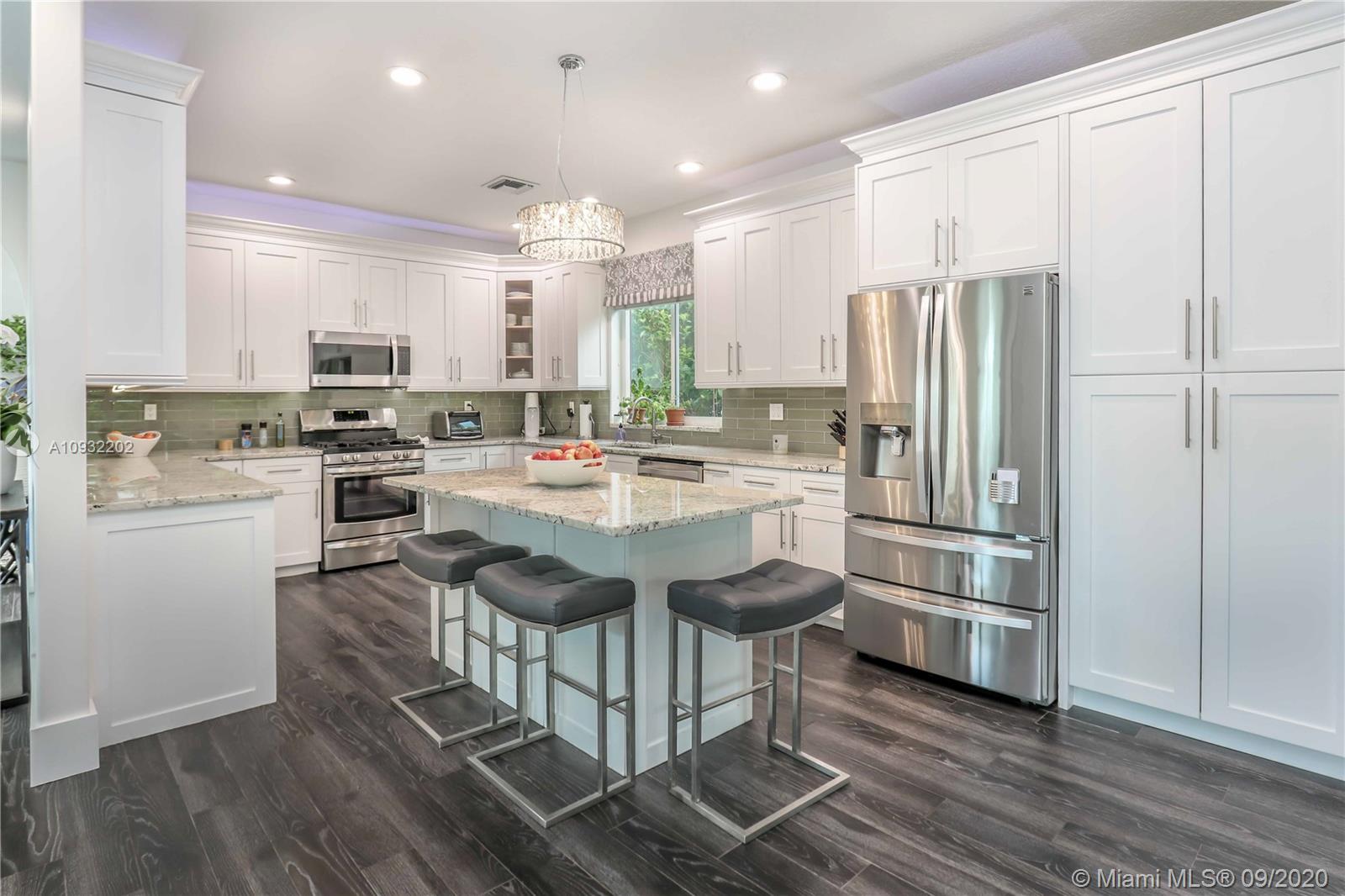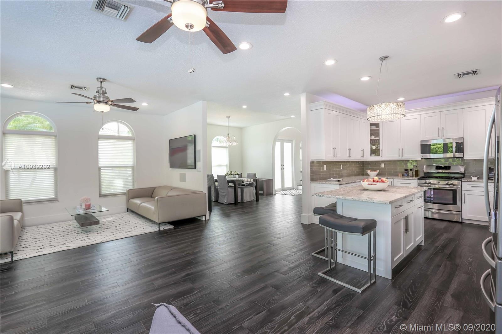 Fabulous 2 story corner home w/ great architecture, circular driveway & 2-car garage. Newer home, built in 1994. This elegant estate features vaulted ceilings, tile floor, & impact windows throughout. Great open floor plan featuring a newly updated kitchen w/ granite countertop, gas stove, island, stainless steel appliances, glass tile backsplash & Florida room as well as an updated bathroom & spacious laundry room downstairs. Upstairs features living, dining, & family room along w/ 4 bedrooms & 2 more updated bathrooms. Master bedroom has a wraparound balcony overlooking the pool and his & hers walk-in closets. Screen-in covered patio & relaxing heated pool w/ a fountain. Great location, E of US-1, just minutes from Hollywood beach, Hollywood Ft. Lauderdale airport, & Downtown Hollywood.