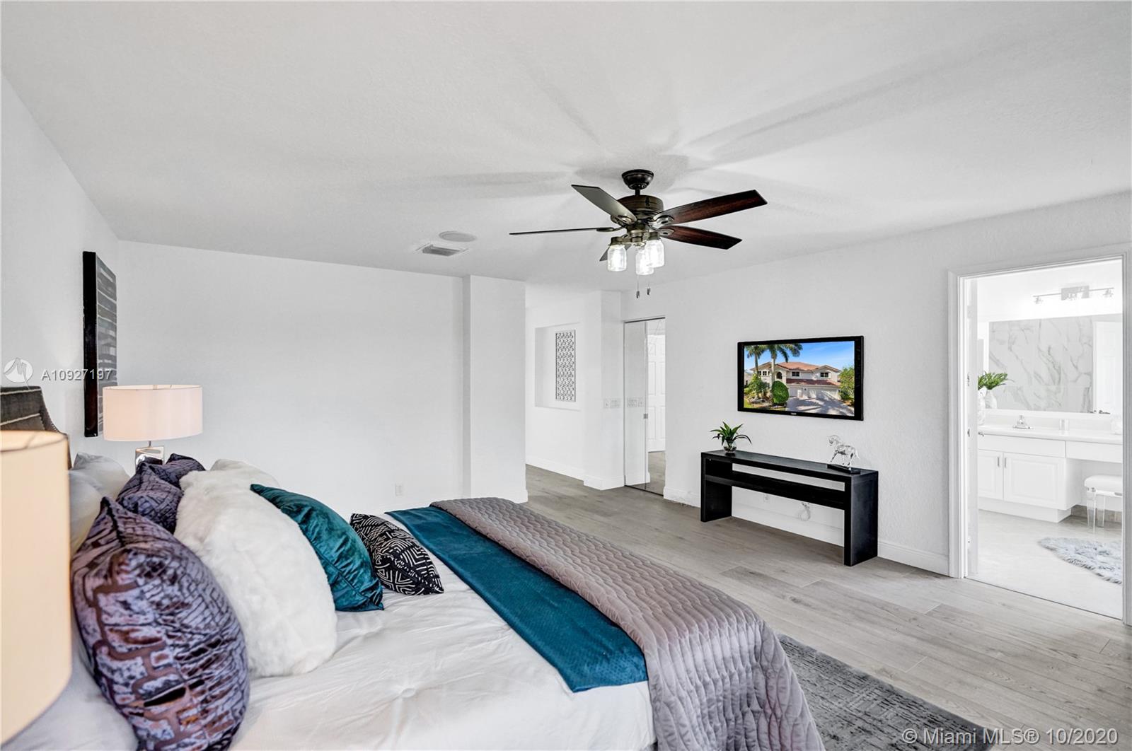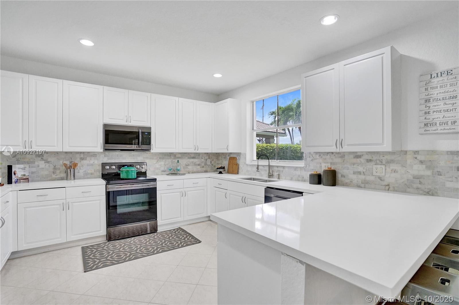 Simply stunning home in Weston Hills Country Club with 7 bedrooms, 4 full baths with one bedroom downstairs and 3 car garage. Home has been beautifully remodeled and is presented in move in condition. Sleek and modern gorgeous white kitchen with white quartz counter tops, marble backsplash and new top of line black stainless steel appliances. Upstairs has a new modern wood flooring in all bedrooms. Remodeled master bathroom with new shower. Huge master suite with walk in closets and adjacent office/den. Huge back yard with covered patio and beautiful tranquil lake views and with plenty of room to built your dream pool. If you are looking to avoid remodeling and move in right away this is it! Be part of one of the best communities in Weston with grade A schools. Simply won't last!