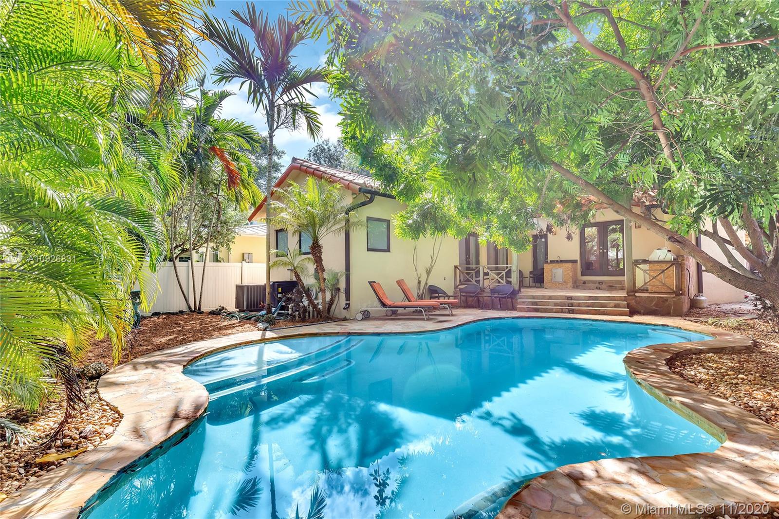 Dive into the famous Miami Lifestyle with this tropical Pool Home located in the South Grove, just minutes from Downtown Miami, Beaches, beautiful cafes, boutiques and marinas. A custom iron gate leads you into this private Oasis with custom kitchen granite countertops, wood cabinets, center island & bar. Impact windows throughout. Oversized master suite leads to the free form pool and patio. Additional features include high coral rock wall for privacy, gourmet outdoor kitchen and cabana bath along with a 2 car garage. The house is a newer built so newer plumbing and electric already in place. 2 living areas that flow beautifully to an entertainer's dream backyard with built in summer kitchen and gazebo as well as yard space to play. A Beautiful Miami Home.