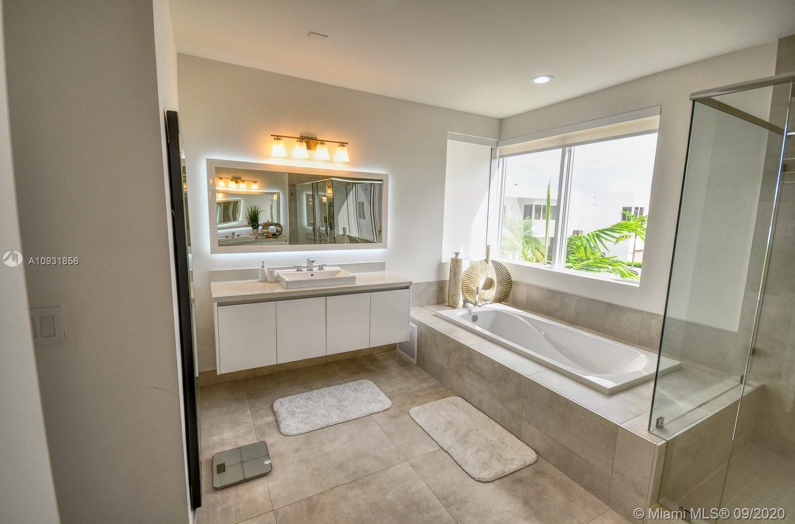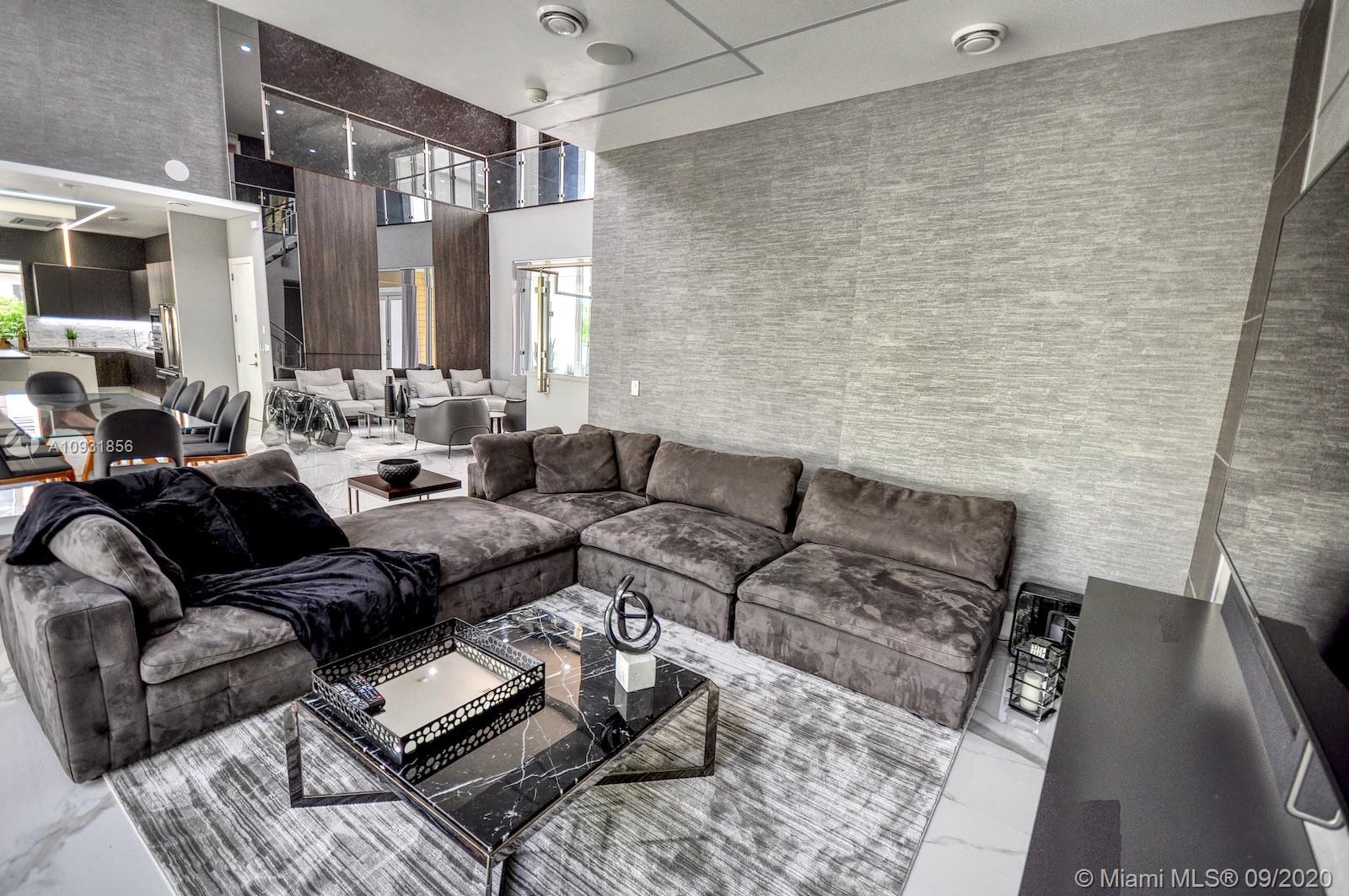 FULLY FURNISHED BEAUTIFUL 5 bed 5.5 bath CORNER Home in the exclusive contemporary community Modern 75 in Doral. OPEN FLOOR plan, 1 bedroom & 2 bath on the first floor and elegant interior architectural details, high ceiling, impact window & doors, Porcelanato floors on 1st floor and Wood Floors on 2nd floor and stairs, SMART HOME, Italian cabinetry, quartz counter tops and top of the line Stainless Steel appliances, AUTOMATIC CURTAINS and BLINDS, unique LIGHTING DESIGN, full SURROUND SYSTEM, game room, GAZEBO with BUILTIN BBQ. Club house with meeting areas, a fully equipped fitness center and children's playroom, media room and kitchenette, swimming pool, spa, sun deck, gazebo area and more. Association includes basic cable & internet, alarm service, security patrol and front landscaping.