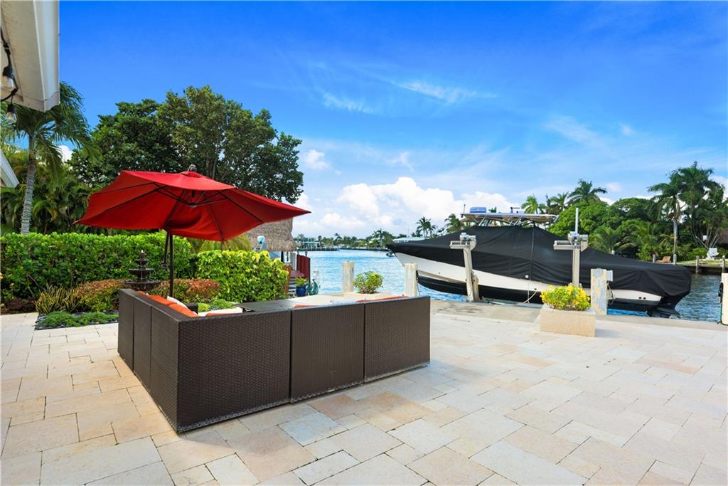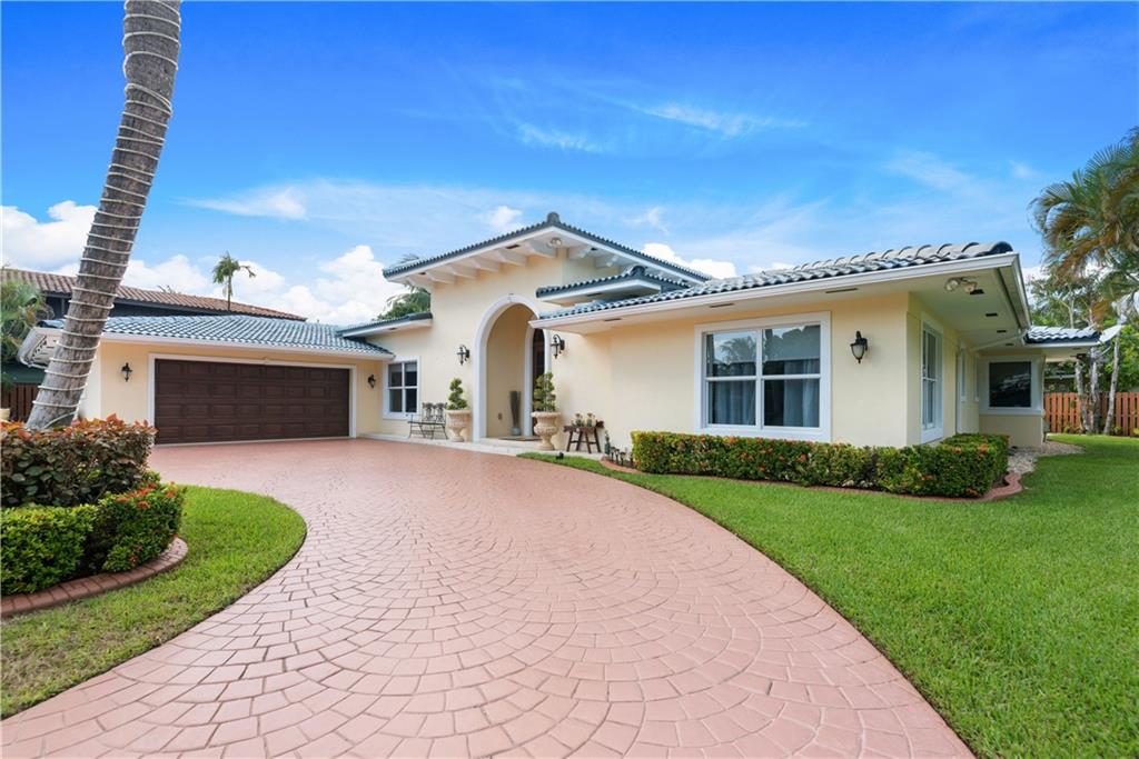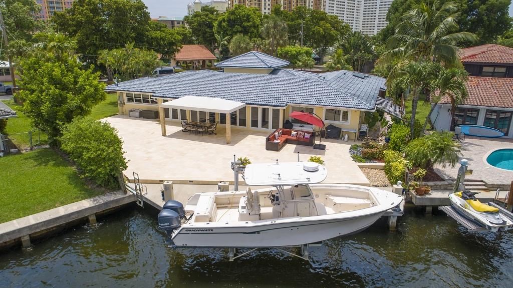 Direct Intracoastal Views from this Oversized 1/2 Acre lot on the 200' Wide Canal in Dolphin Isles. Approx 50 Ft Waterfront with 5 Ft Set-Backs. Walled & Electric Gated with Lots of Privacy. Re-Built Circa 2014 to Includes Additional 500 Sq Ft. New Concrete Dock. Solar Hot Water. 15,000 Lb Boat Lift. Impact Glass. Newer Roof. Marble Floors. Plumbing & Electric Upgrades. Egyptian Stone Patio Area has Covered Awning. Four Bedrooms + Den/Office. Walk Directly Three Blocks East to the Ocean or Walk to Birch Park. Master BR: Wide Plank Wood Floors & Walk-In Closet w/Built-Ins. Kitchen: Solid Wood & Stainless Steel Appliances. The family room has 10 Ft Ceilings & Bar Area. Floor Plan Attached. Matterport Virtual Tour: https://my.matterport.com/show/?m=XMqFeVHpuHH&mls=1