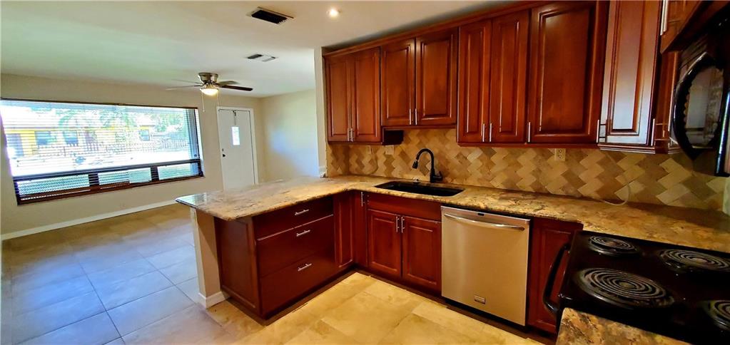 This home has updated kitchen cabinets, bathrooms, tile and laminate floors throughout, granite counter tops. Freshly painted, new roof, new sprinkler system, and fence. Accordion hurricane shutters.