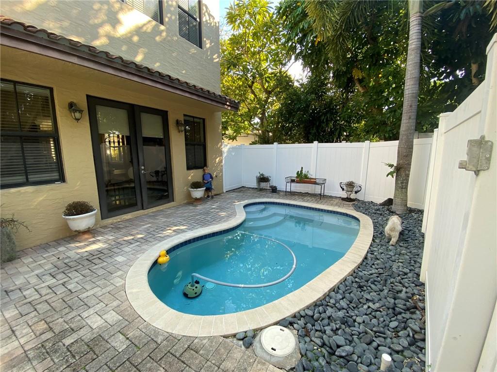 Fantastic opportunity to live in the centrally located family friendly neighborhood of Coral Ridge and desirable Bayview School District. This spacious and bright 3 bedroom, 3.5 bath tri-level fee-simple townhome includes an elevator, 12' ceilings and a 3rd floor bonus room that leads out to your spacious rooftop terrace, perfect for entertaining! This end unit offers a private side entrance, impact windows, 2 car garage and a back yard with your own pool!! Elegant finishes throughout including marble floors and real wood floors and updated kitchen with new quartz countertops with subway tile backsplash. A must see on quiet street, can walk or bike to Galleria Mall, George English Park, Publix and Ft Lauderdale Beach and more!