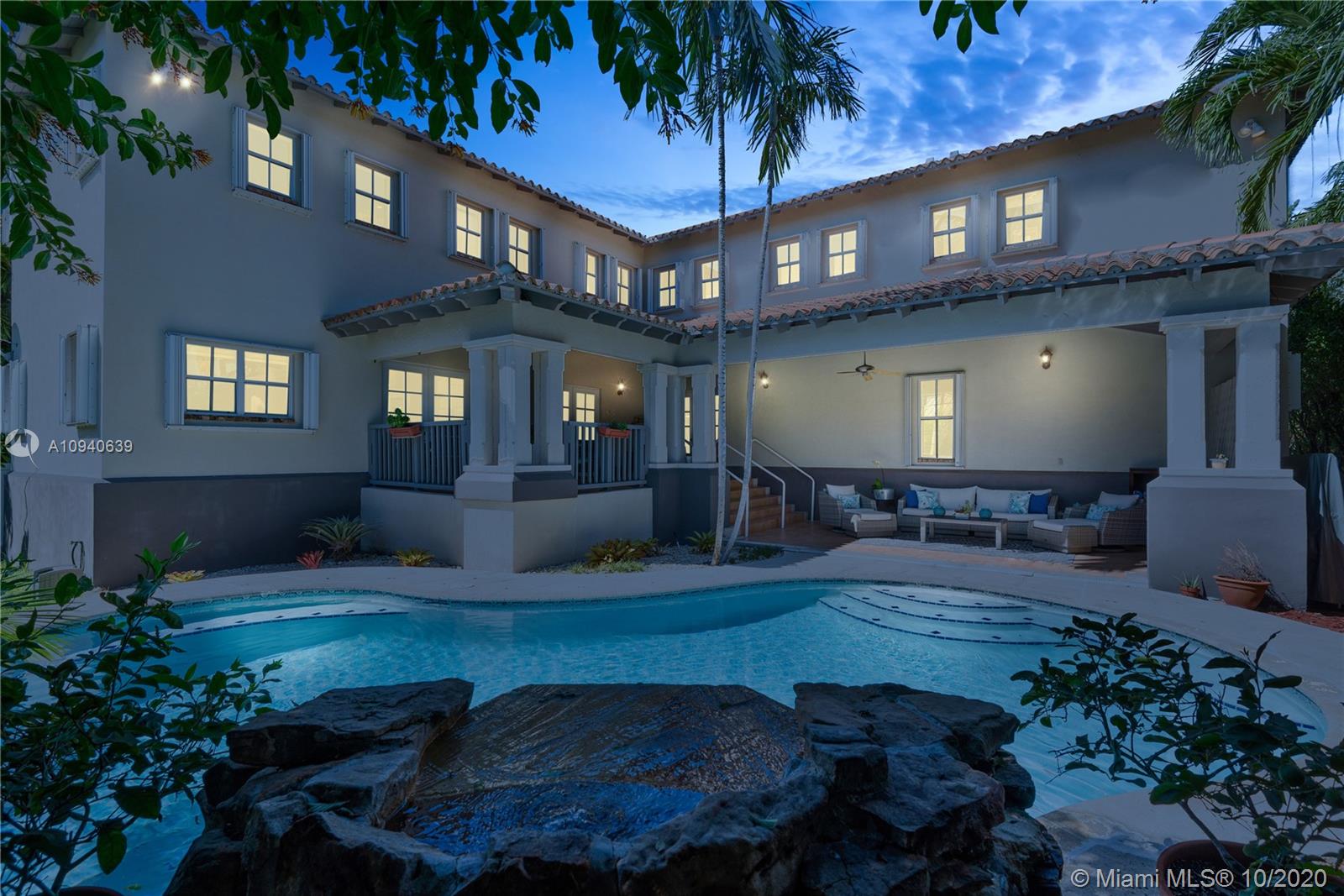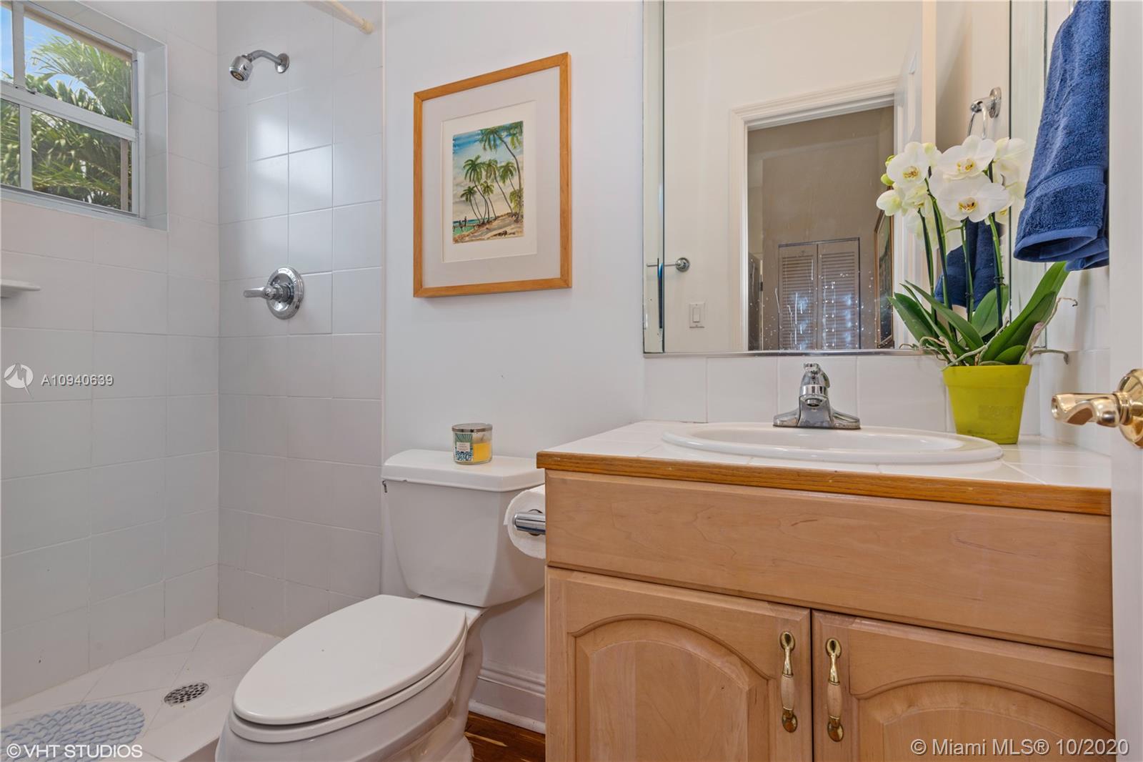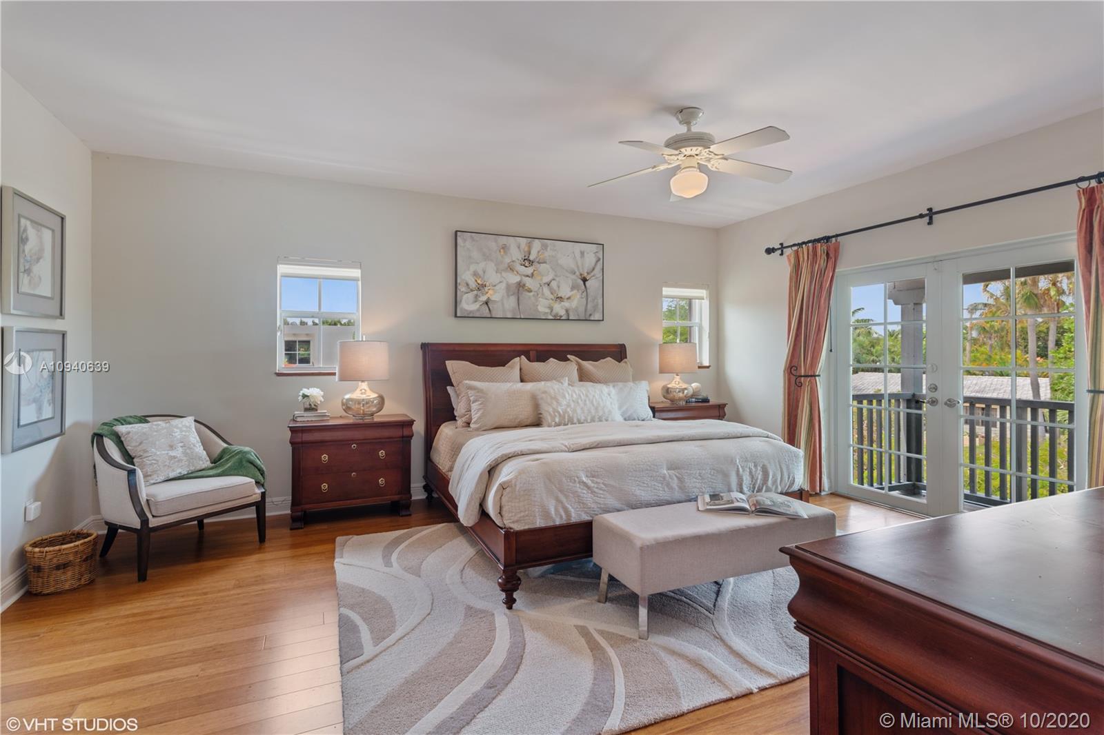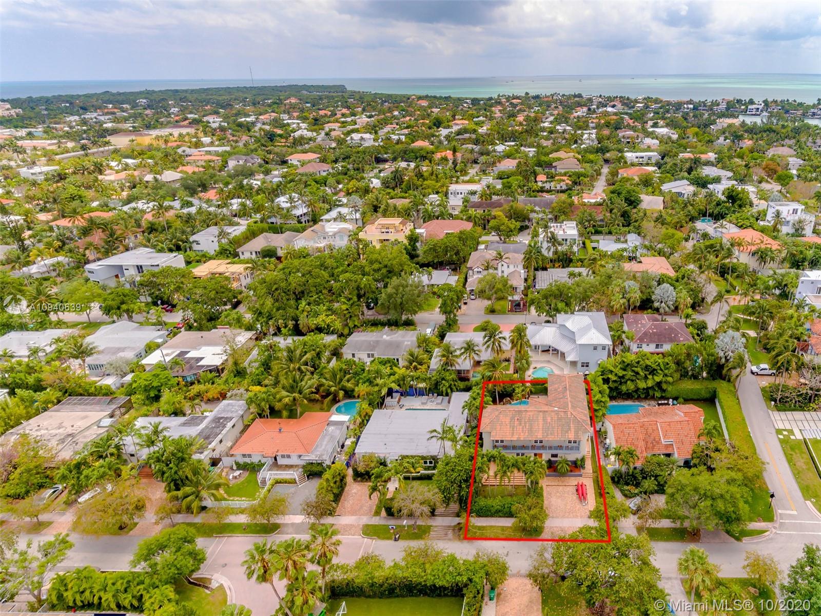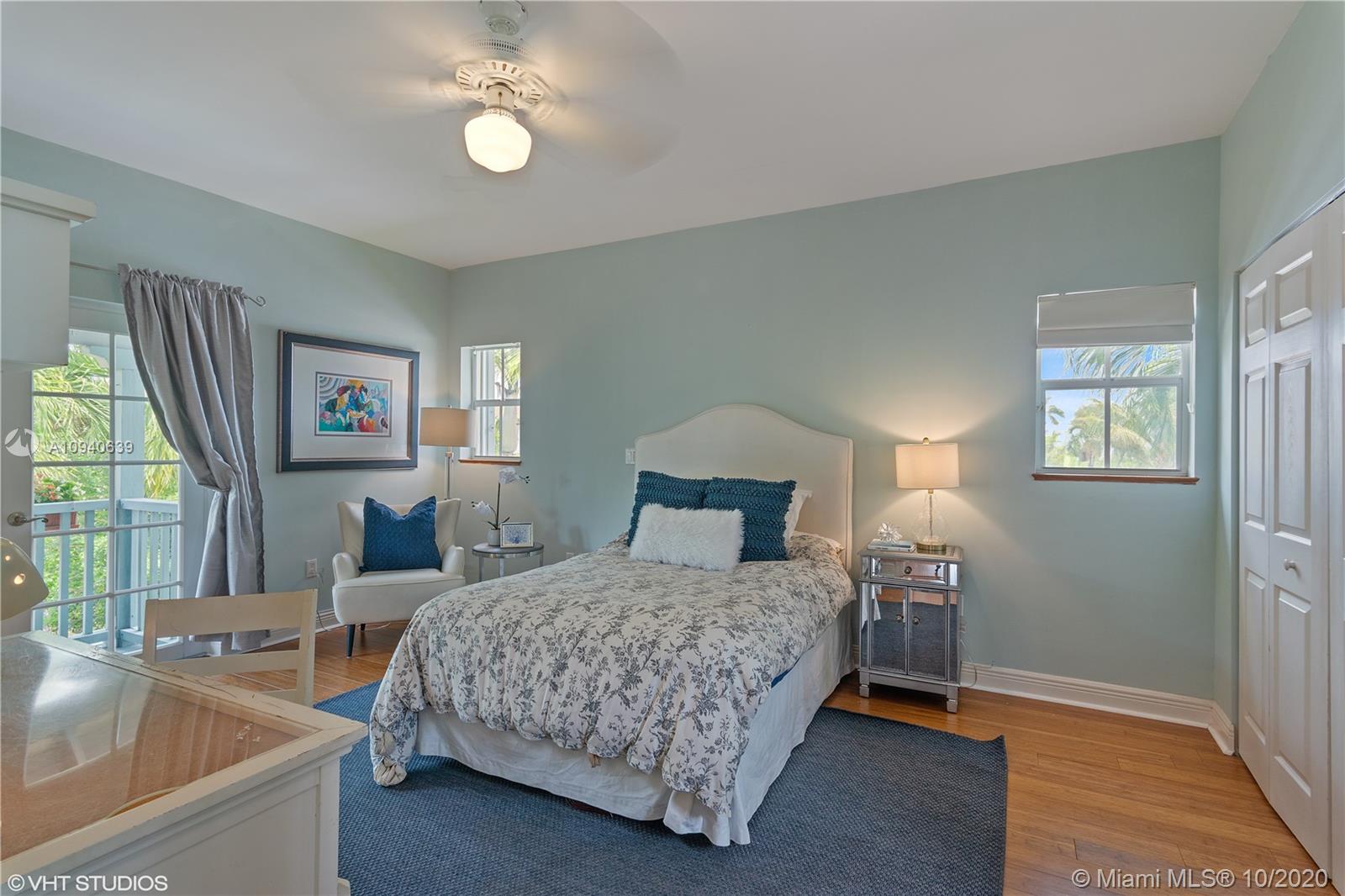 Tropical 2 story Key West style elevated Island home greets you with wood flooring throughout with cozy living and dining room with views to lush secret gardens. Some property features include integration of open kitchen with family room through a convenient pass through window. This residence offers numerous bedrooms with ample closet space plus an additional studio bedroom with bath. Second floor bedrooms open to a beautiful balcony. Luxury and spacious master suite have a wonderfully remodeled bath. All living areas lead to a double level terrace with a peaceful pool cascade, ready to enchant you with its serene landscaping. Property is completely fenced and easily accommodates parking for 3 vehicles. This home is the true epitome of Key Biscayne living. Photos are professionally staged