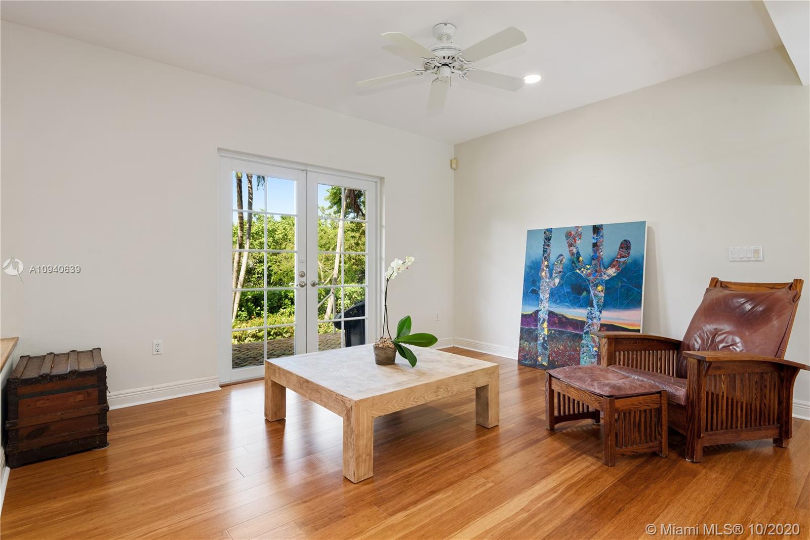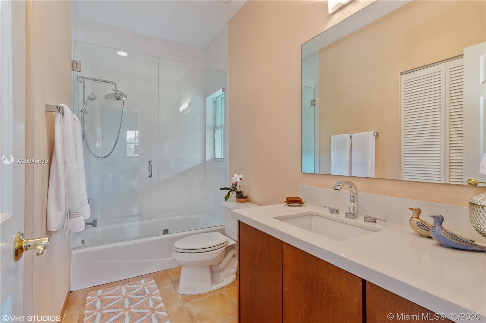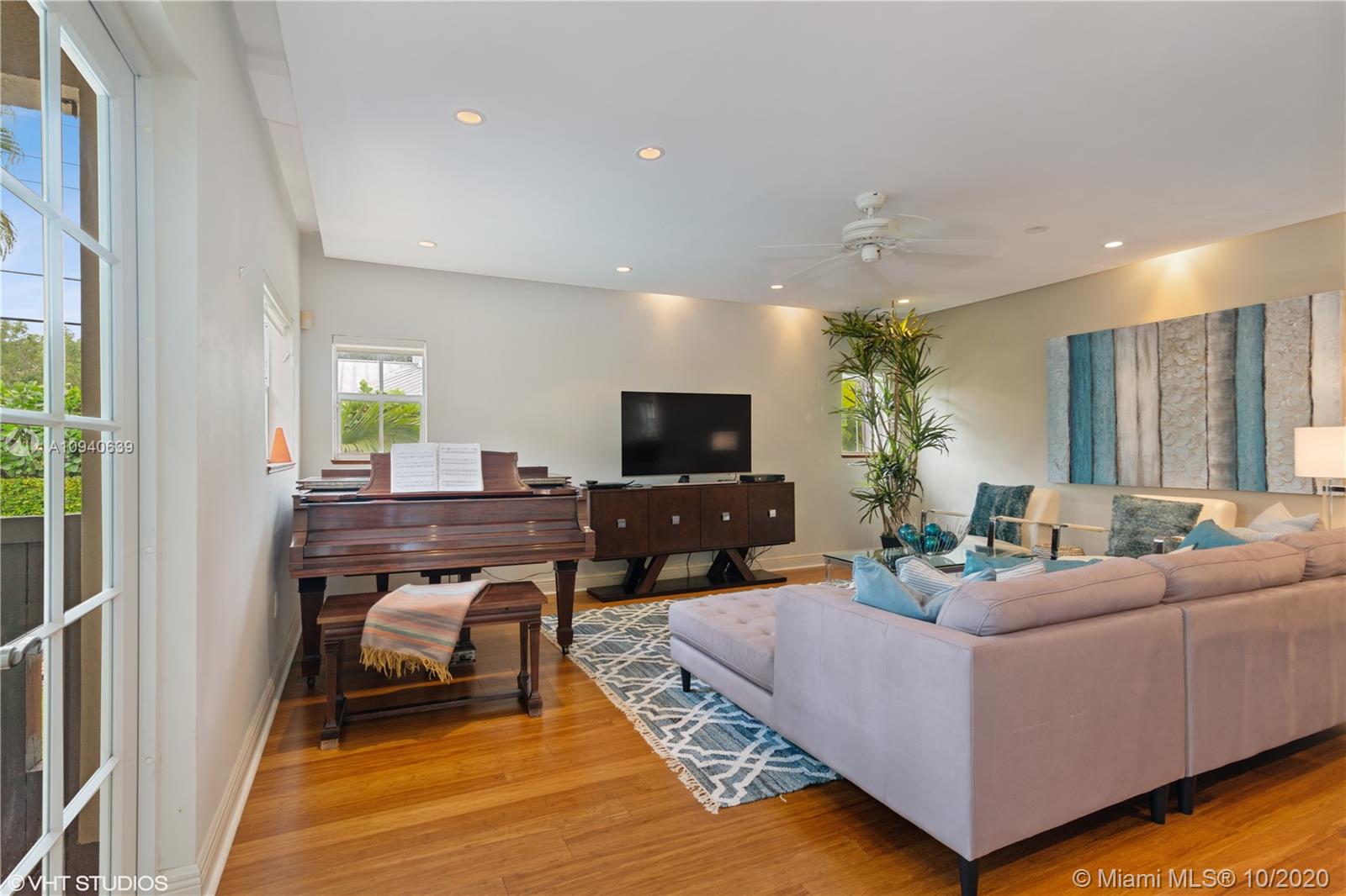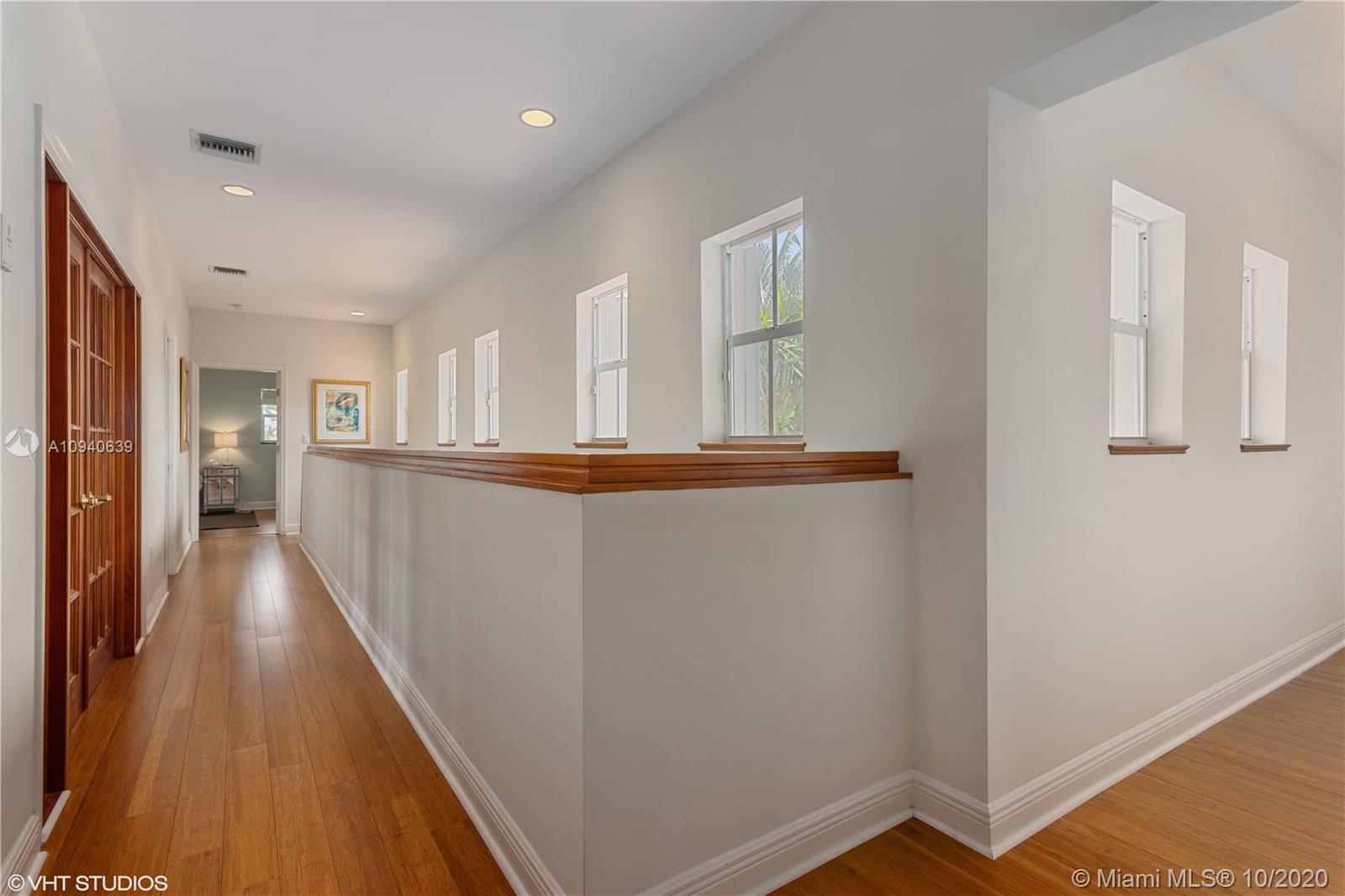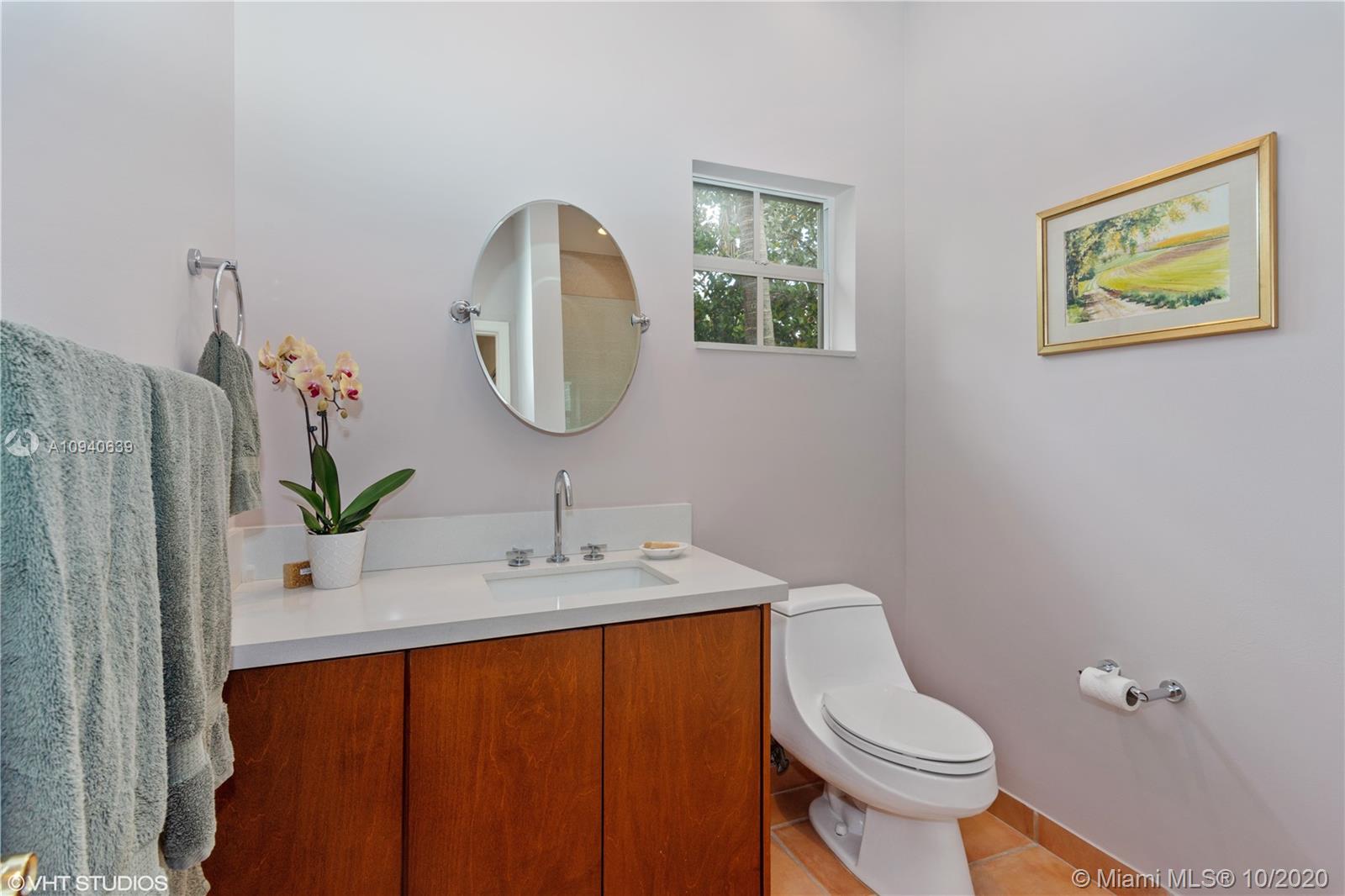 Tropical 2 story Key West style elevated Island home greets you with wood flooring throughout with cozy living and dining room with views to lush secret gardens. Some property features include integration of open kitchen with family room through a convenient pass through window. This residence offers numerous bedrooms with ample closet space plus an additional studio bedroom with bath. Second floor bedrooms open to a beautiful balcony. Luxury and spacious master suite have a wonderfully remodeled bath. All living areas lead to a double level terrace with a peaceful pool cascade, ready to enchant you with its serene landscaping. Property is completely fenced and easily accommodates parking for 3 vehicles. This home is the true epitome of Key Biscayne living. Photos are professionally staged