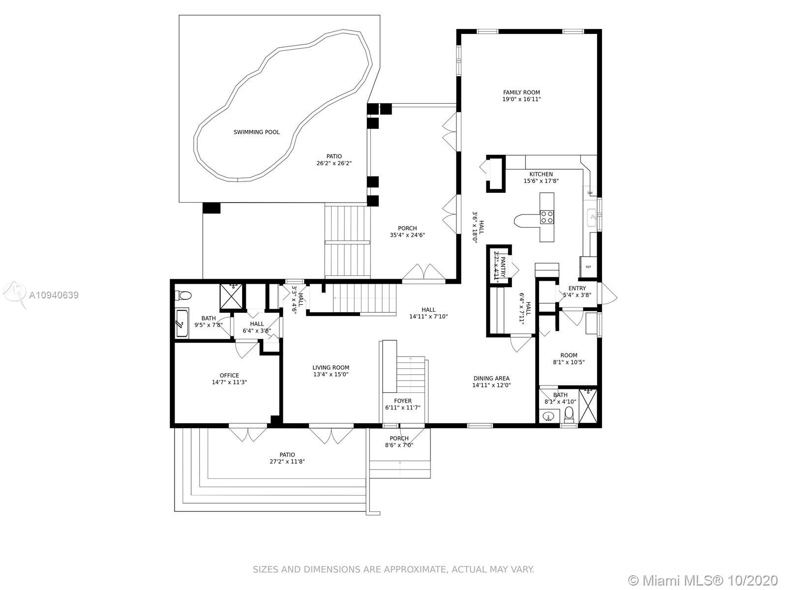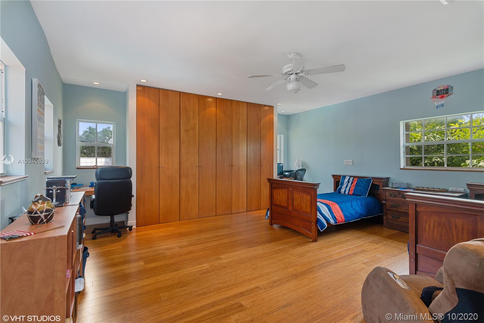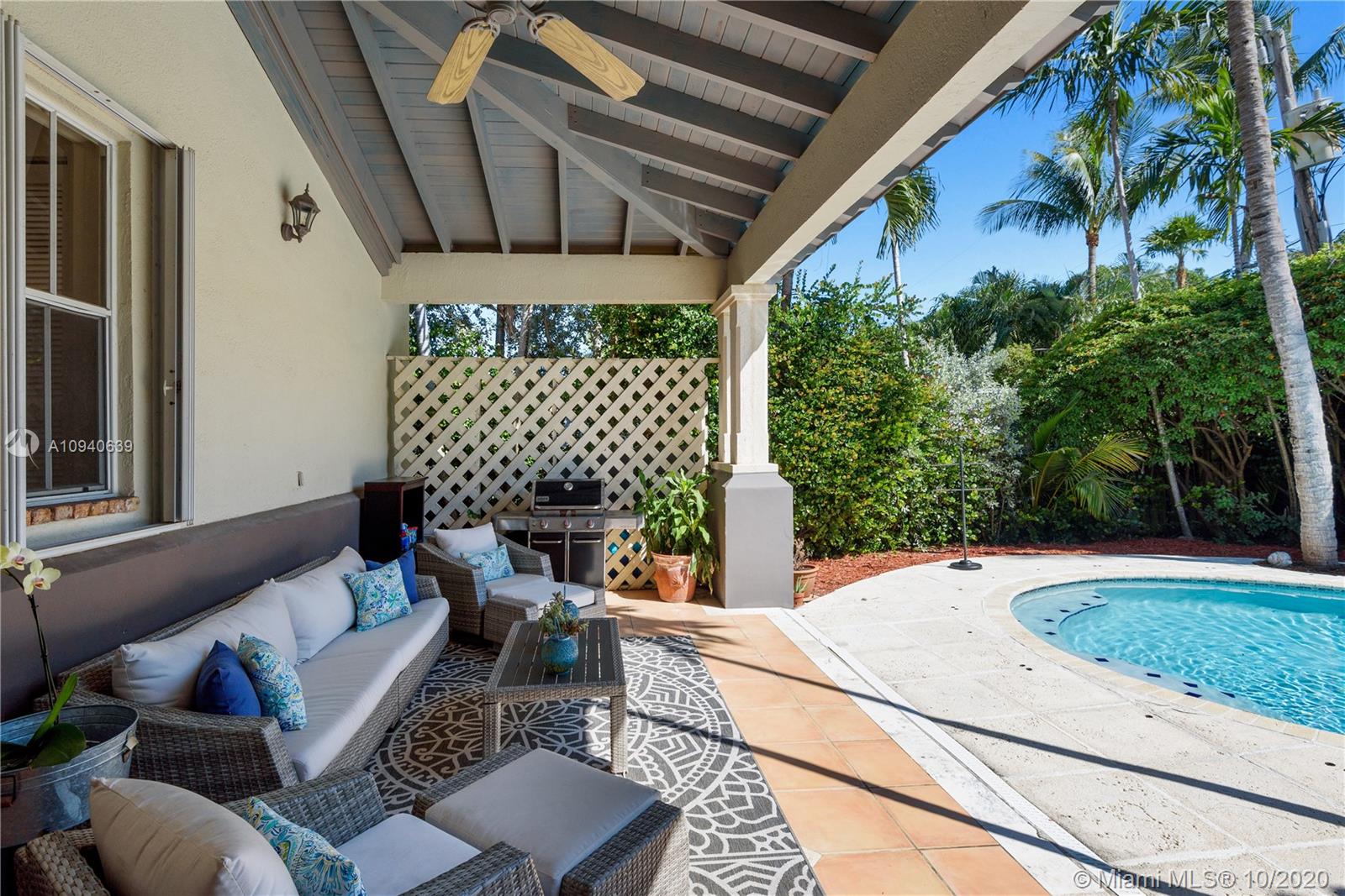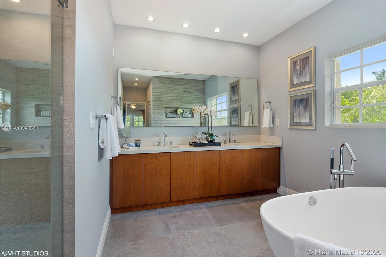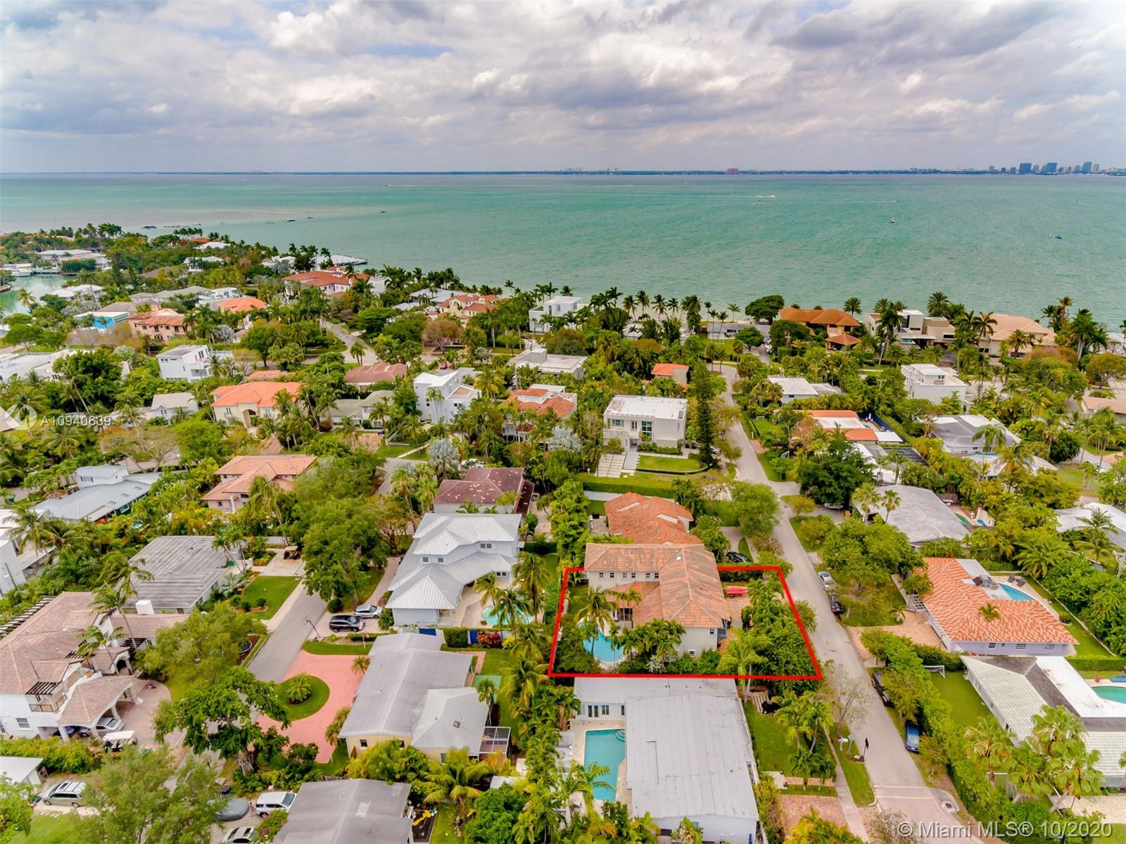 Tropical 2 story Key West style elevated Island home greets you with wood flooring throughout with cozy living and dining room with views to lush secret gardens. Some property features include integration of open kitchen with family room through a convenient pass through window. This residence offers numerous bedrooms with ample closet space plus an additional studio bedroom with bath. Second floor bedrooms open to a beautiful balcony. Luxury and spacious master suite have a wonderfully remodeled bath. All living areas lead to a double level terrace with a peaceful pool cascade, ready to enchant you with its serene landscaping. Property is completely fenced and easily accommodates parking for 3 vehicles. This home is the true epitome of Key Biscayne living. Photos are professionally staged