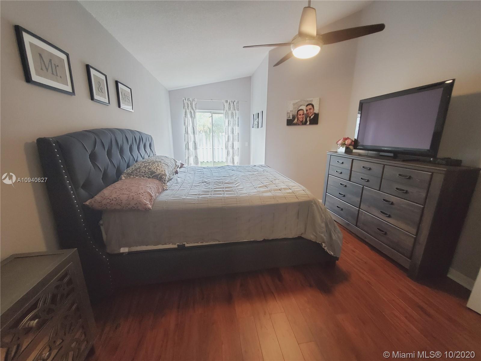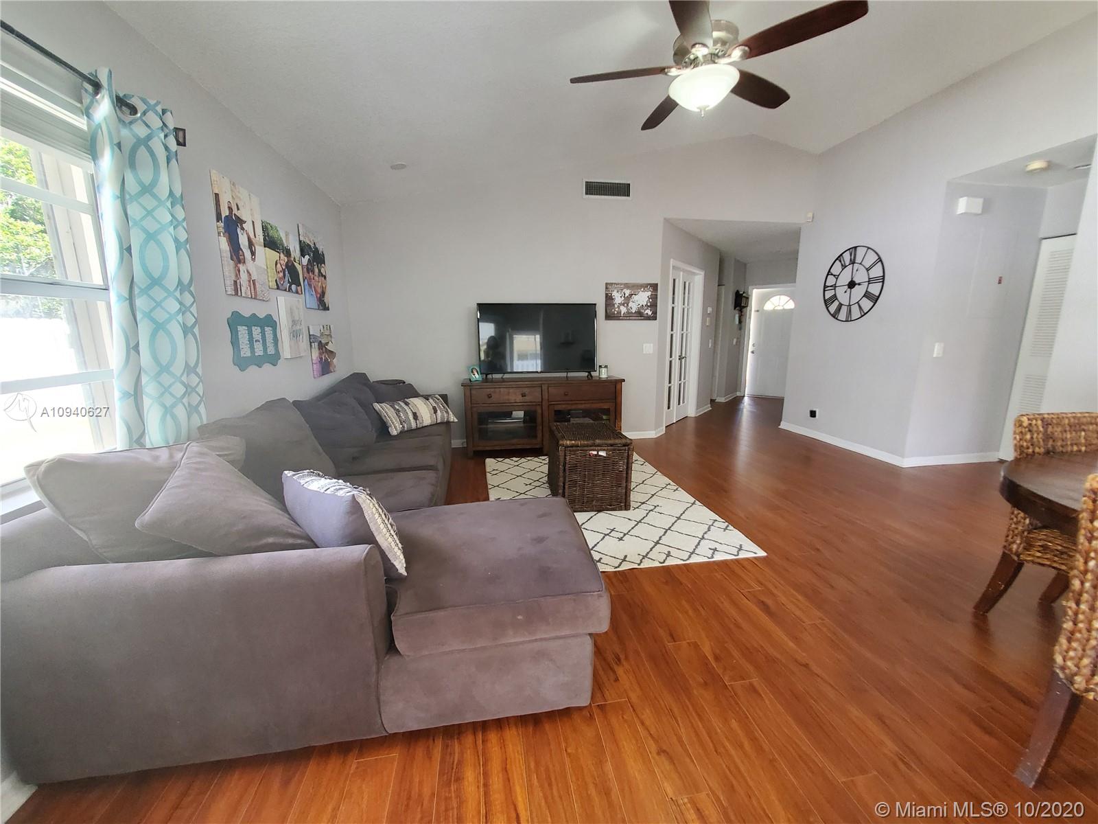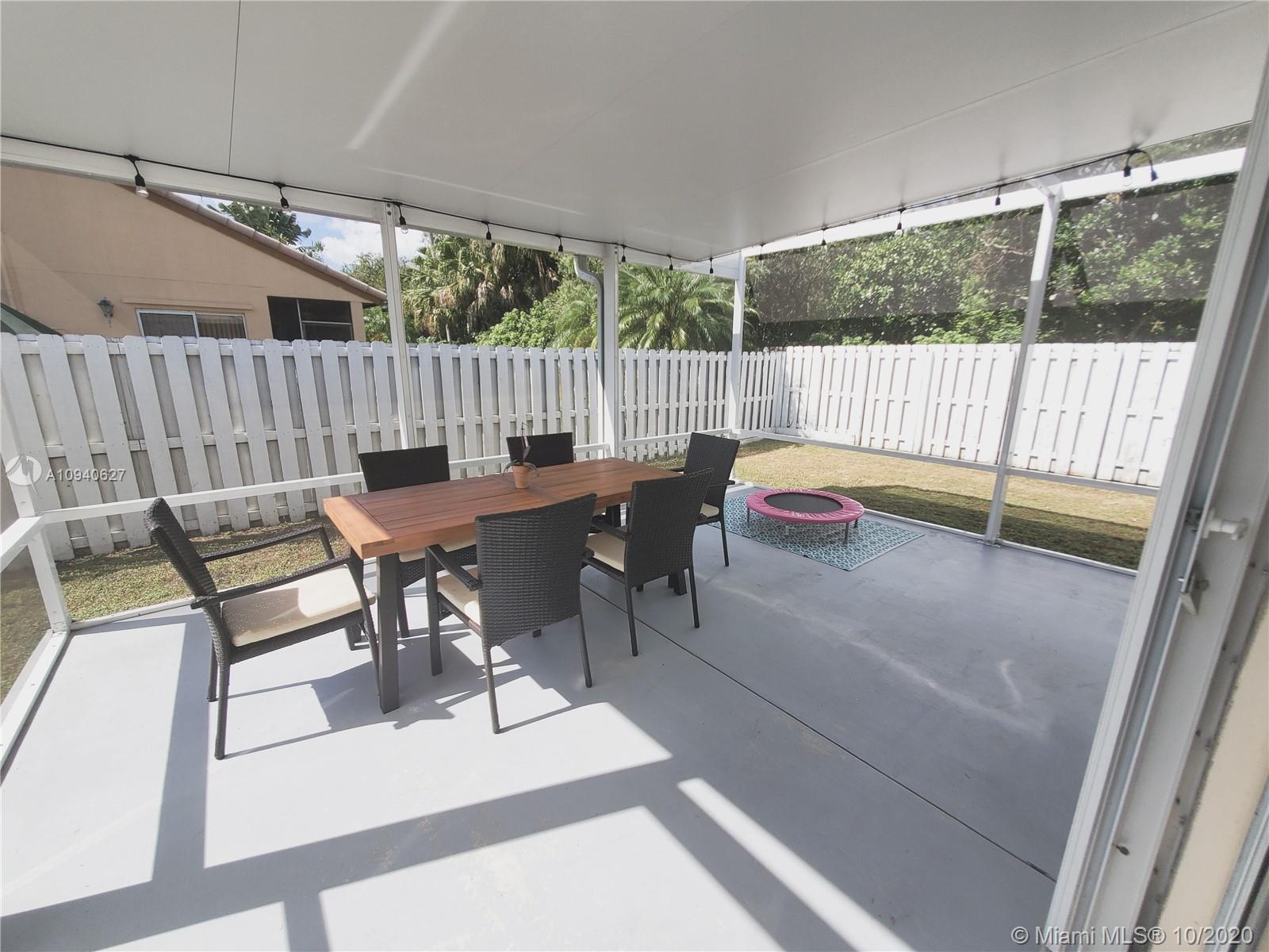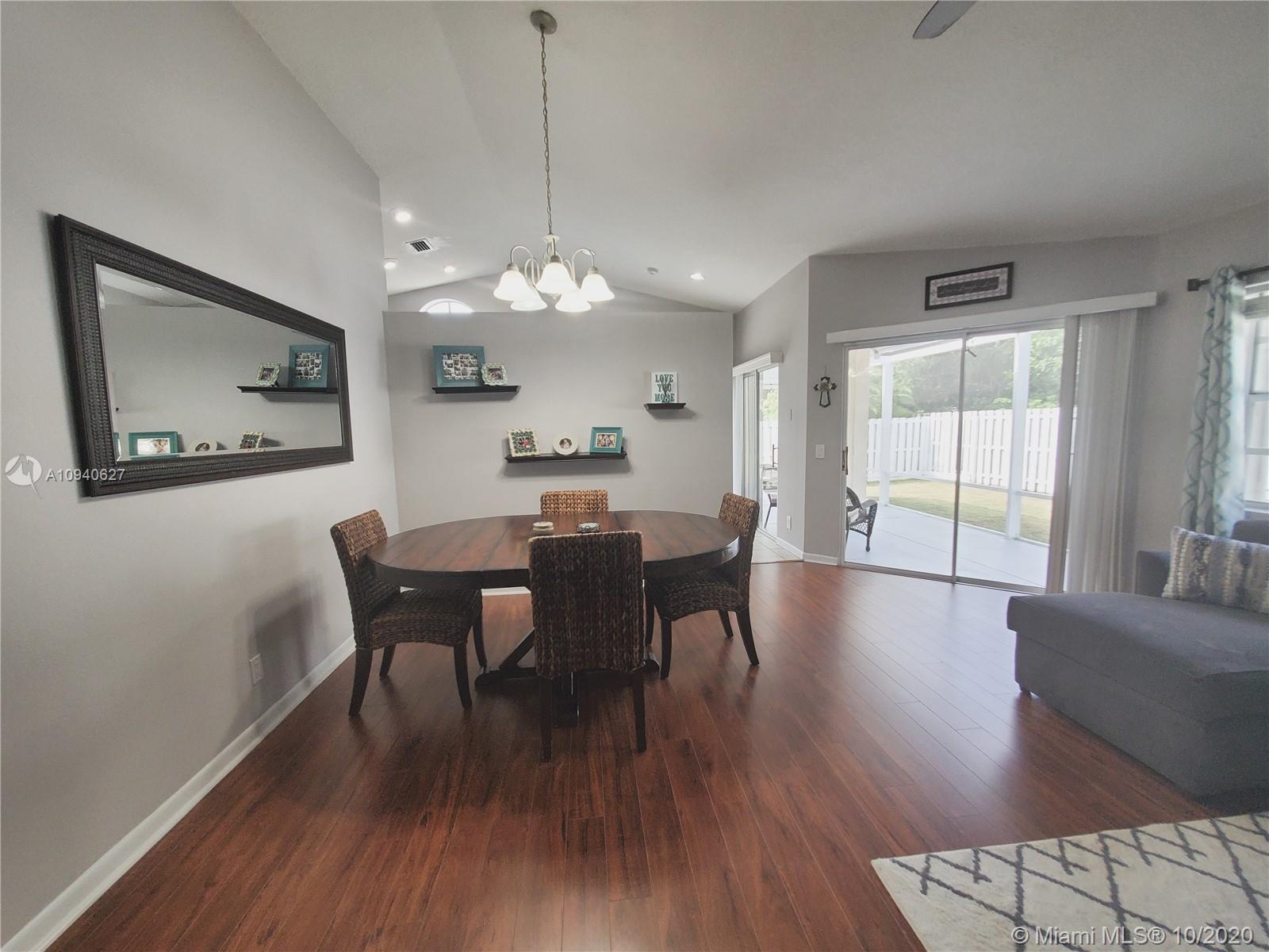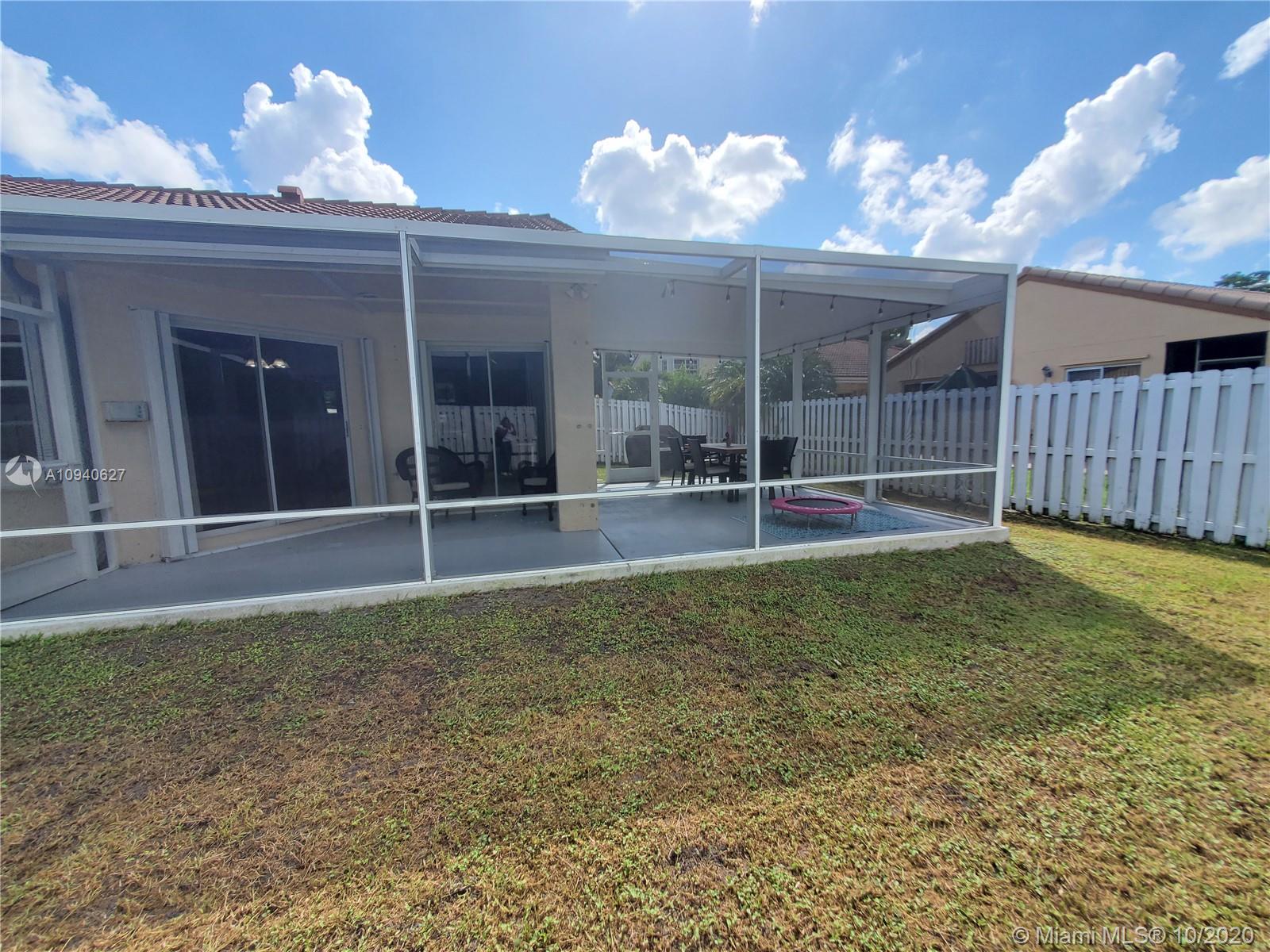 Beautiful, bright 3 bedrooms single family home sitting in a cul-de-sac. 1 car garage. Wood floors throughout the home, updated kitchen with granite countertop and stainless steal appliances. Bathrooms with updated cabinets. Very spacious backyard with screened patio and fenced. Accordion shutters. Community pool. Impeccable condition!