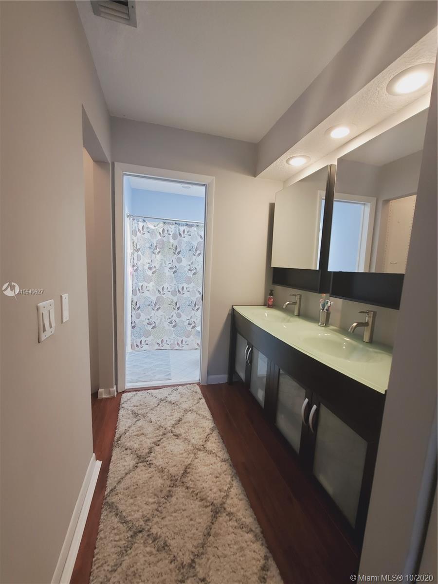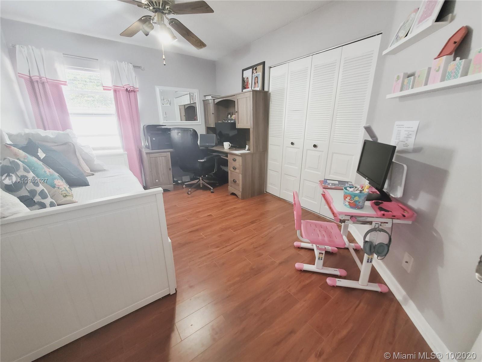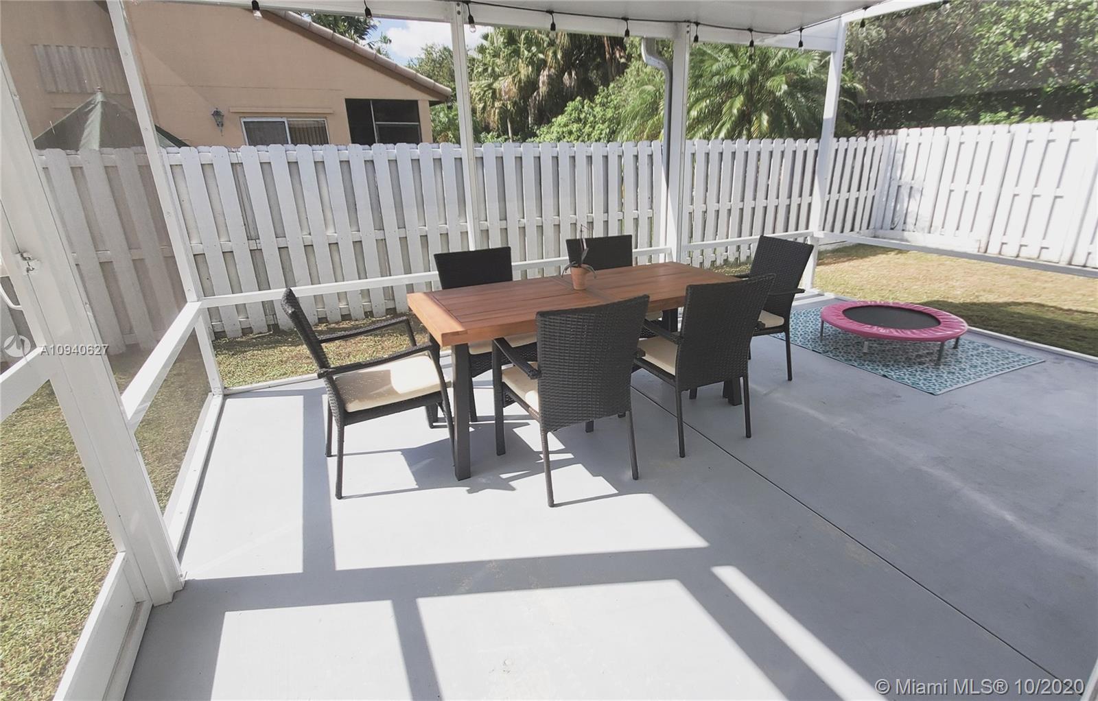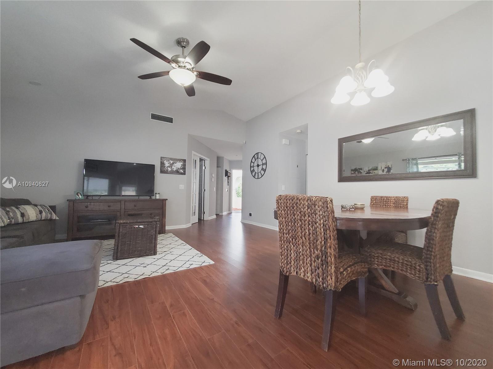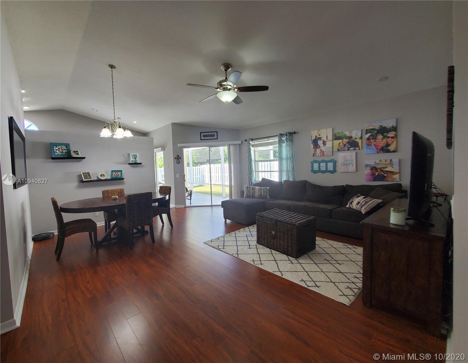 Beautiful, bright 3 bedrooms single family home sitting in a cul-de-sac. 1 car garage. Wood floors throughout the home, updated kitchen with granite countertop and stainless steal appliances. Bathrooms with updated cabinets. Very spacious backyard with screened patio and fenced. Accordion shutters. Community pool. Impeccable condition!