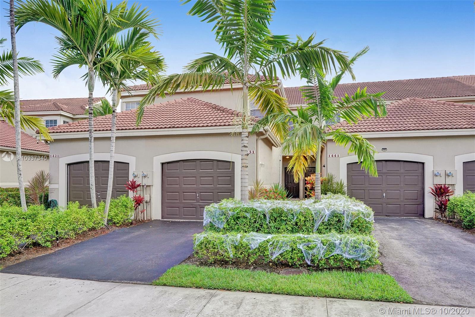 Enjoy this Beautiful Townhome in the Gated Community of San Remo in the Heart of Weston! 3 Bedrooms, 2.5 Bathrooms, Tile throughout the first floor and carpet on second floor washer and dryer in the garage. Nice relaxing patio area, perfect for BBQs with a Lovely Lake View. 1-Car Garage, an Additional one car parking in the driveway and plenty guest parking around the community, Community features Basketball Court, Playgrounds Area and Club House with Pool. Great location close to Excellent Schools, Shopping, Dining, Parks, Highways & Transportation!