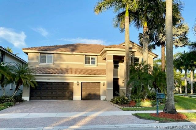 OPEN HOUSE SATURDAY & SUNDAY 1-3 PM. Spacious two-story home tucked in the cul de sac across from a passive park. Fully fenced oversized yard, paver patio pool with spa. IMPACT GLASS. Marble floors first level. White kitchen with granite countertops and SS appliances. Full bed and bath first level. Wood floors upstairs in all bedrooms. Owners suite on the second level. Two-story living room. Shows contemporary. Freshly painted interior. Walk to community park.