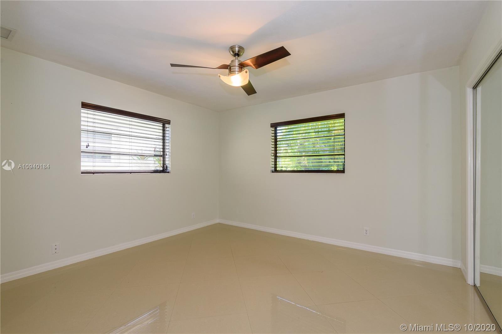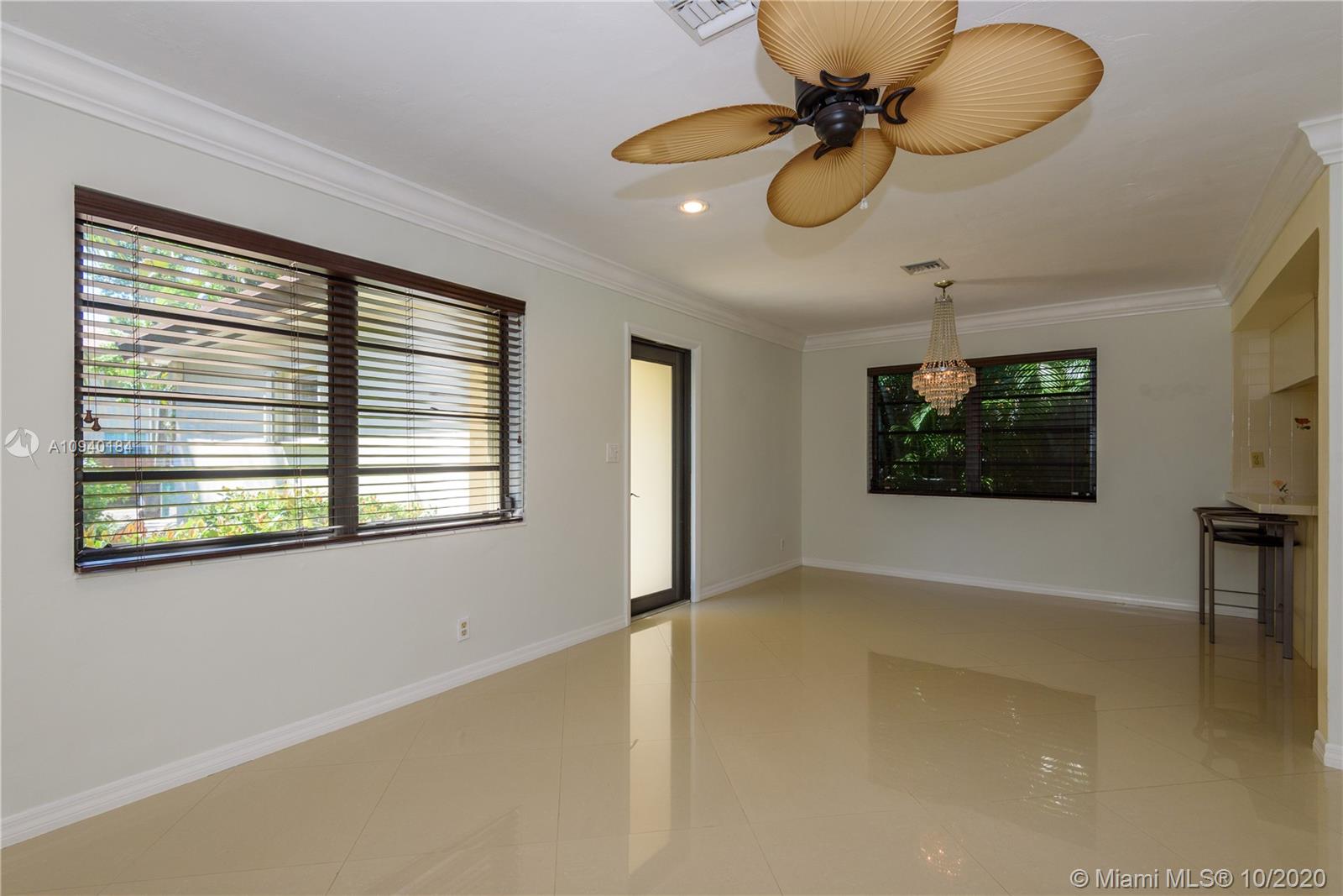 Charming Florida home , with polished porcelain floors that reflect the sun from the from and back windows. Crown molding meets the ceiling and frames the doorways. Lots of counterspace will inspire the cook in you as the kitchen has wonderful tiled counters. 2 windows enhance the size. The east at counter is an added feature. The living dining room opens to a great back yard. Two bedrooms and baths flank the east side of house. The backyard has a lovely patio and garden that has room for a pool. Additional driveway leads to a one car garage where washer and dryer are kept.