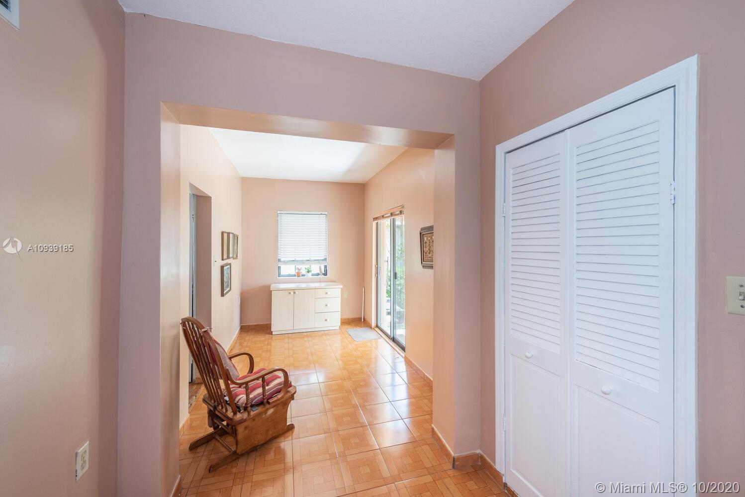 Wonderful opportunity to make this adorable house your home. Nestled within a quintessential Coral Gables tree-lined street this lovely 3 bedroom and 2 bathroom house is walking distance from the Granada Golf Course and Coral Gables Athletic Club. Enter the house through impact glass doors into an inviting front foyer and then make your way to a nice sized living and dining room combination. Step into a small vestibule to reach the bathroom and two bedrooms off the dining room. The kitchen with updated appliances leads you to an indoor washer dryer closet and the 3rd bedroom at the back of the house with en suite bath and glass doors to a small covered patio. 24-hour notification needed to make an appointment.