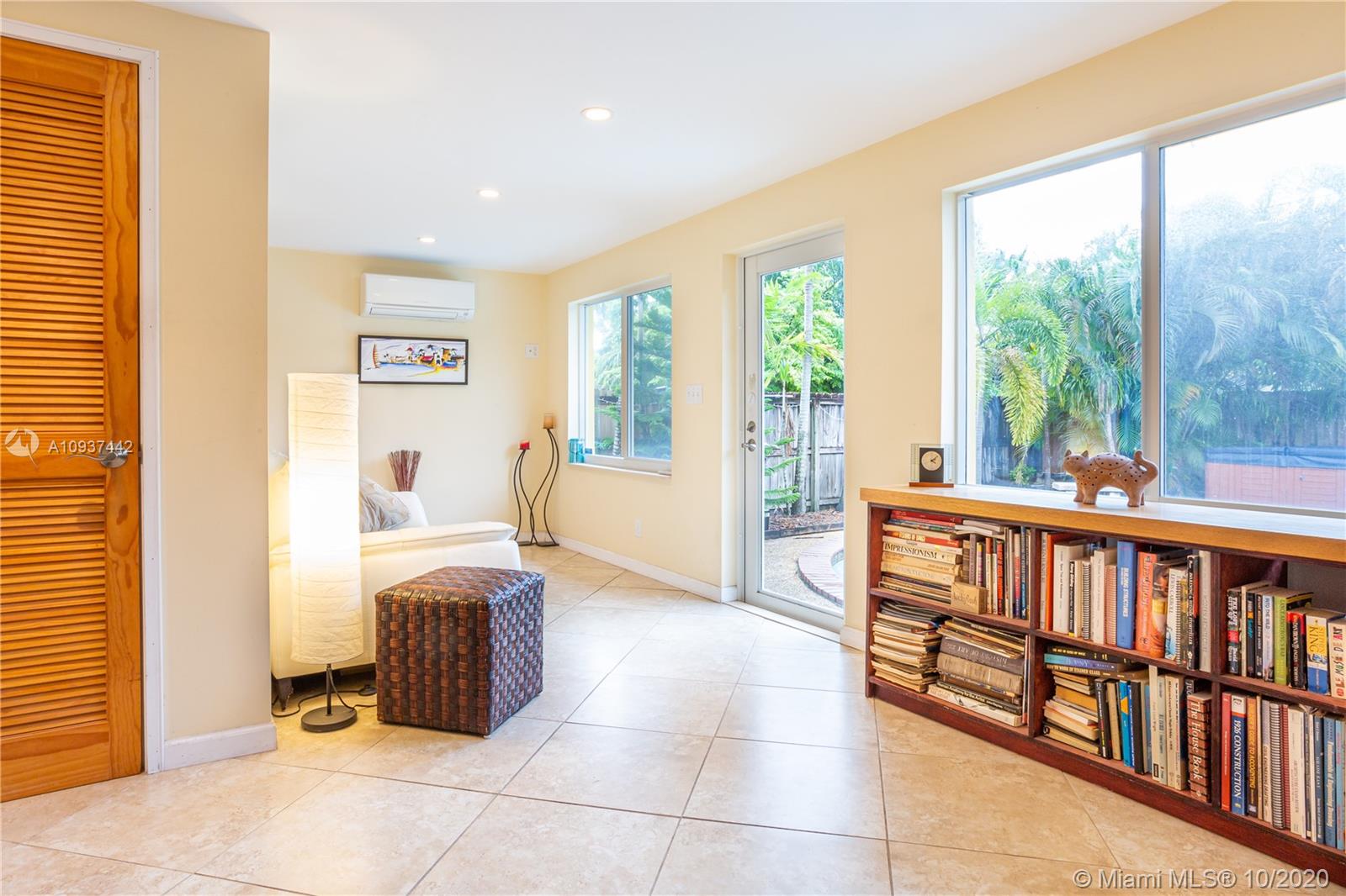 Charming one-story 2/2 Pool Home in prestigious Hollywood Lakes, East of US1 and minutes away from beach. Home features two bonus rooms: a den/office and a Florida Room which can easily be converted into a third bedroom. Florida room opens up to a fenced backyard, swimming pool, Jacuzzi and BBQ area. House has been beautifully renovated & updated with high impact windows/door and two tastefully renovated bathrooms. Kitchen features stainless steel appliances and new stove. Wood flooring throughout & tiles in den/office, Florida Room, kitchen & 2 bathrooms. Carport and shed. This property is located on a quiet street close to beach, restaurants, shopping & entertainment!