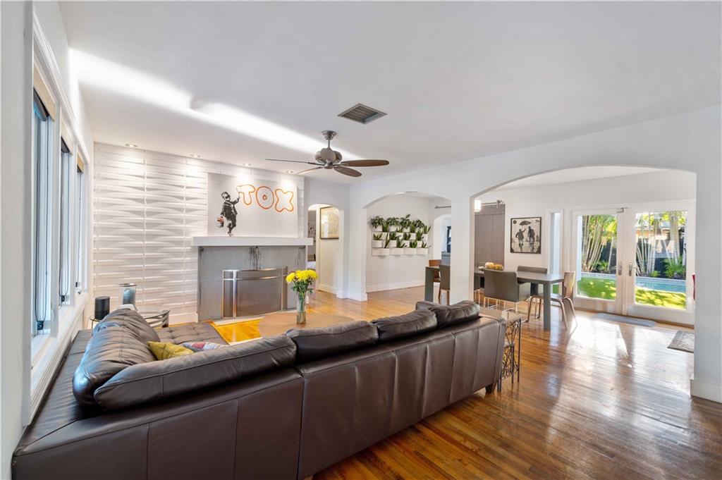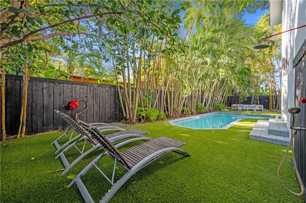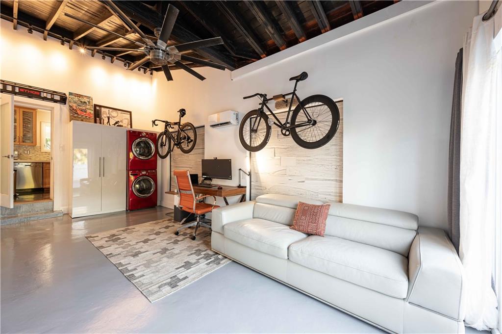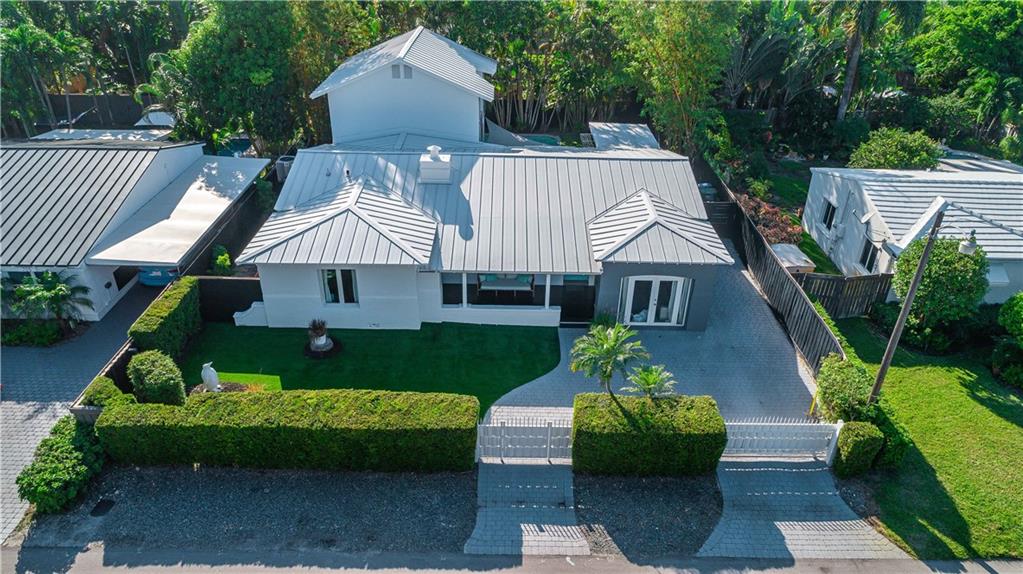 Situated on one of the nicest blocks in Victoria Park 2900+SF; Priced below the property appraiser's estimate. Featuring an open kitchen, living and dining area bar & wine chiller. A short hallway leads to a Guest Room with bath, a second Guest Room & hall bath. The private second floor Primary Suite with walk-in closet; bath w/ soaking tub and separate shower. Two sets of sliders to Juliette balconies overlook the yard. Big, sunny family room, metal roof, impact rated windows & doors, three zone a/c, garage converted to home office easily modified back, gated parking. Other features include a summer kitchen with two grills, a heated salt chlorinated pool, outdoor shower and a generator. Refined astro turf landscaping surrounds the property. Fully fenced and gated with auto entry.