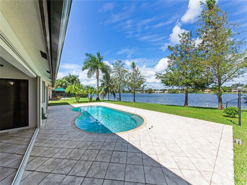 Beautiful 3 bedroom/2 bath (4th room was being used as an office) pool home. Oversized lot overlooks a magnificent tranquil lake. This house was made for entertaining! Updated kitchen with granite counters and SS appliances and beautifully remodeled bathrooms. The sale water pool is heated and provides a nice outdoor entertaining area with incredible views of the quiet lake. Accordion shutters help protect you during storms. No short sale or foreclosure. Easy to show!