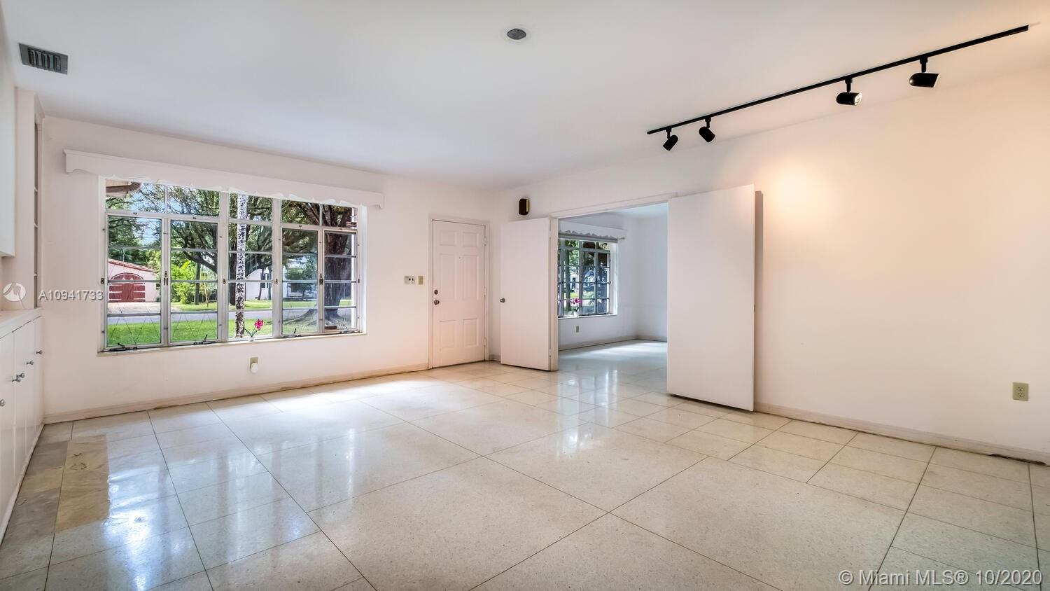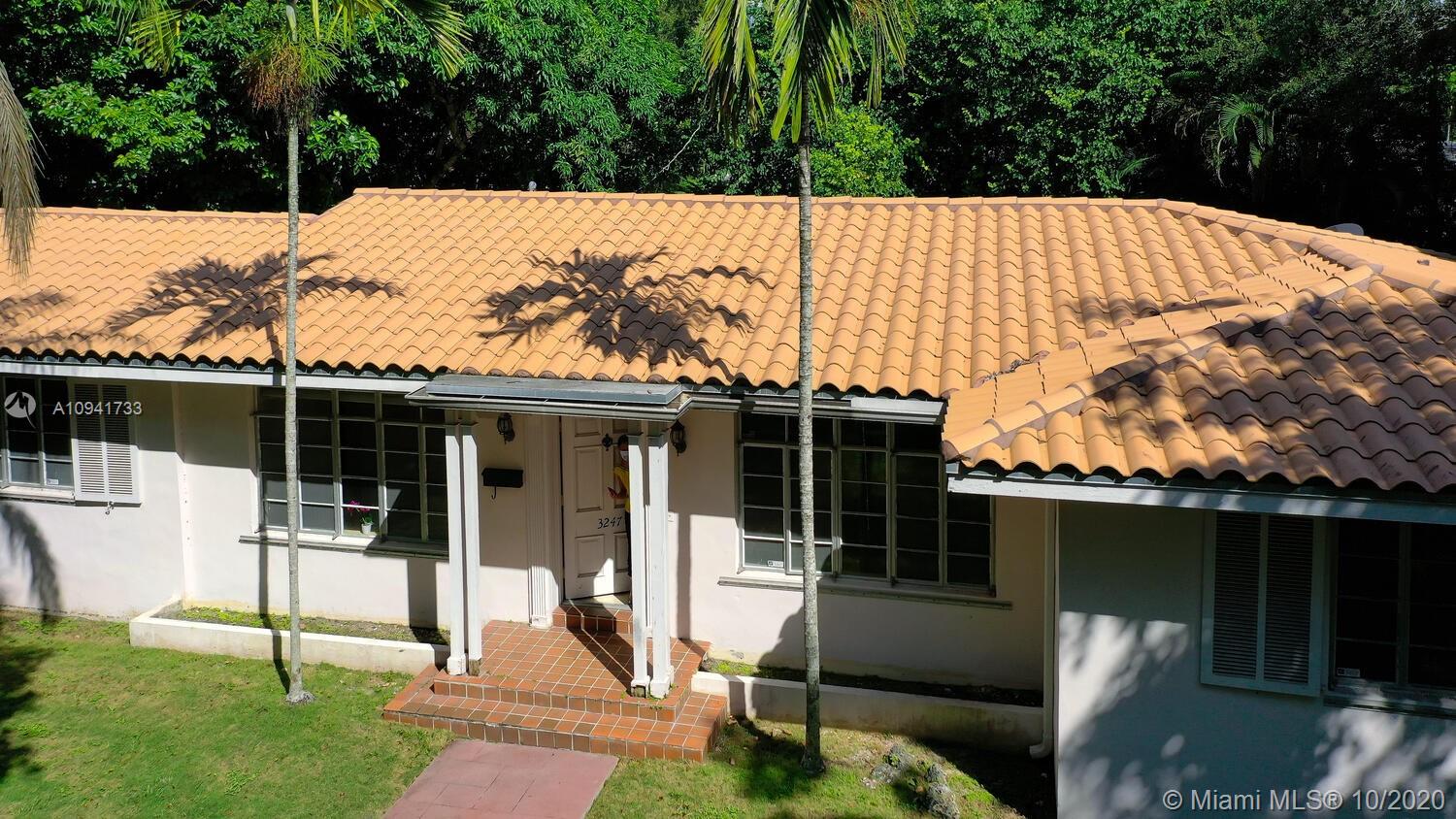 Your new home is a blank canvas ready to create a masterpiece. Sits on a desirable triple, corner lot with plenty of room to expand and surrounded by mature trees including a dreamy canopy, avocado, mango & lychee tree. Located in the heart of Coral Gables & only blocks to Miracle Mile shopping & dining, the Biltmore Hotel, Riviera & Granada golf courses, the Venetian pool & more. Boasts charming split floor plan layout with an inviting rotunda shaped family room that has a wall of windows & sun streaming in. Features roof ~10 years old, original terrazzo floors, panel shutters & a garage. A must see...