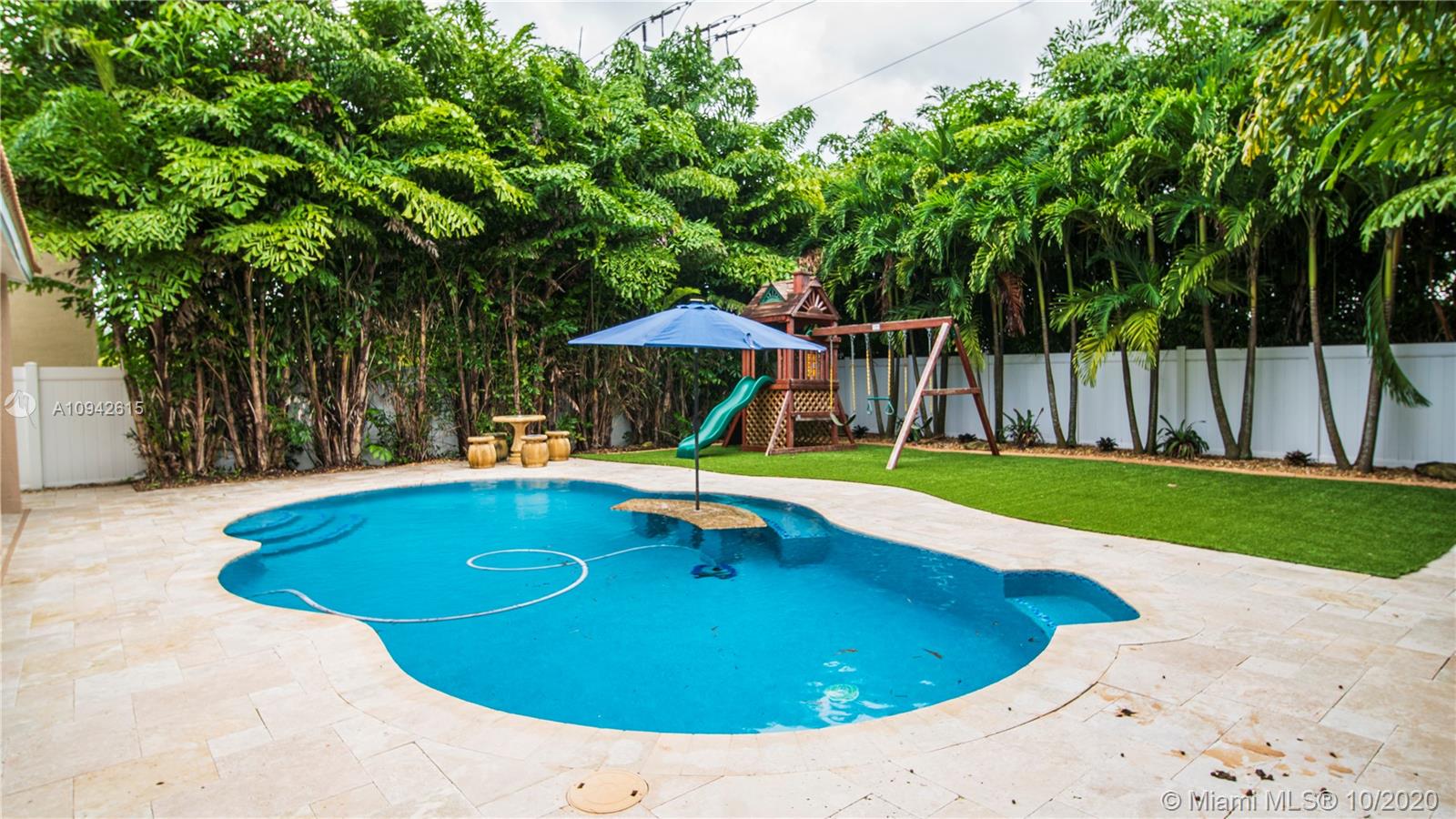 Beautiful corner home with water view on a cul de sac street. New kitchen and new downstairs bathroom. Wrought iron staircase stairs and 2nd floor wood floors. New 24x24 italian porcelain tile in 1st floor. Custom cabinets in laundry room. Air conditioned garage. All new appliances including new tankless water heater and new A/C unit. The pool has been remodeled. All new pool equipment including heater for pool. Travertine backyard with custom 500 sq foot terrace 900 sq artificial turf park. PVC fence whole property. Landscape over 45 palm trees between front and back. 8 car drive way. No house in front or back. Property will not last!