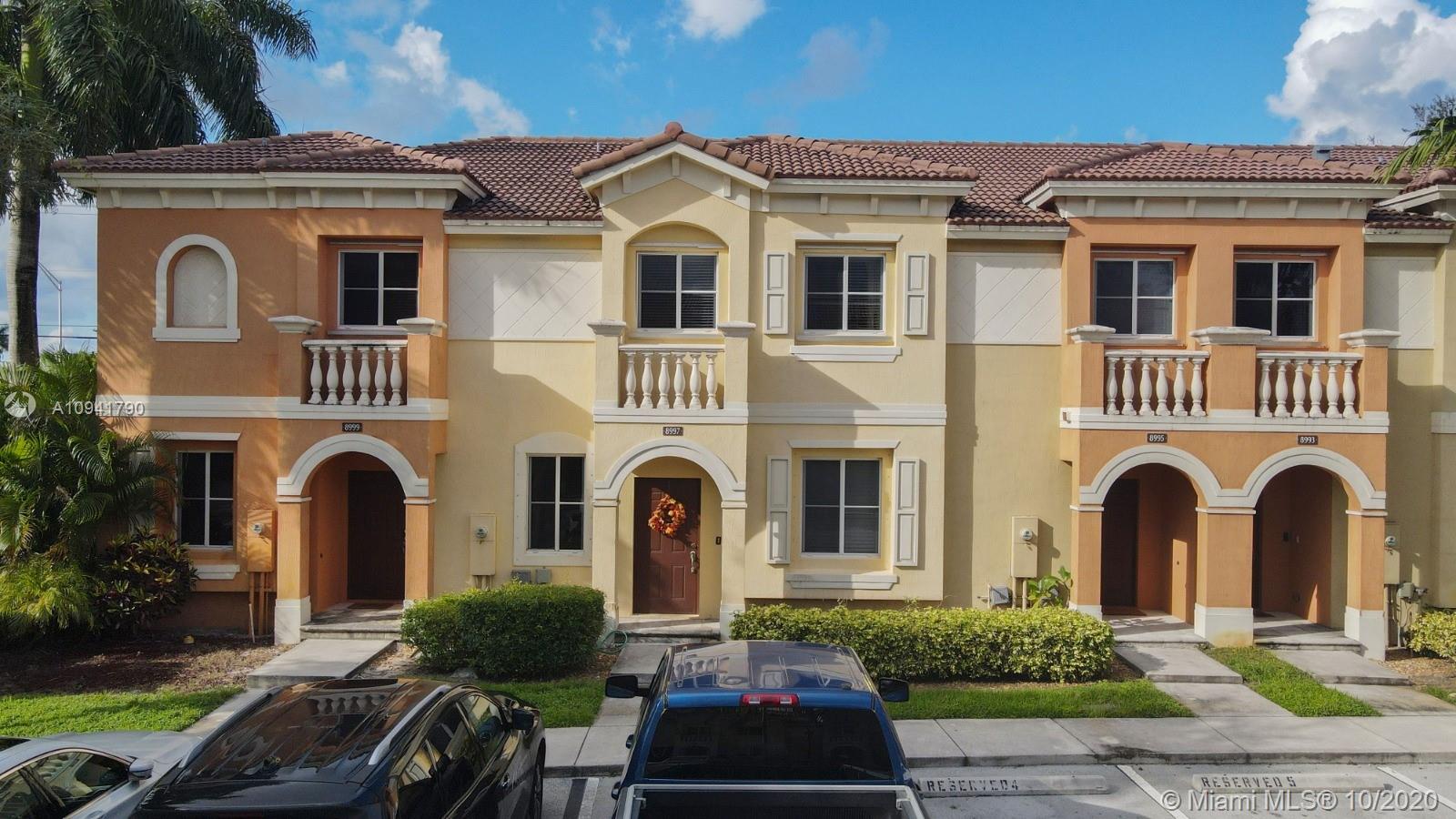 Spectacular 2 Bed /2.5 Bath Townhouse located in The Village of Miramar, w/ spacious rooms, updated kitchen, equipped with all appliances including wash and dryer, tile floors on bottom level, carpet throughout stairs and upstairs level, assigned parking with plenty of visitors parking. The community is gated with clubhouse, pool, and playground. Priced to sell, FHA accepted. 24 hour notice, showings to begin Friday10/16/2020