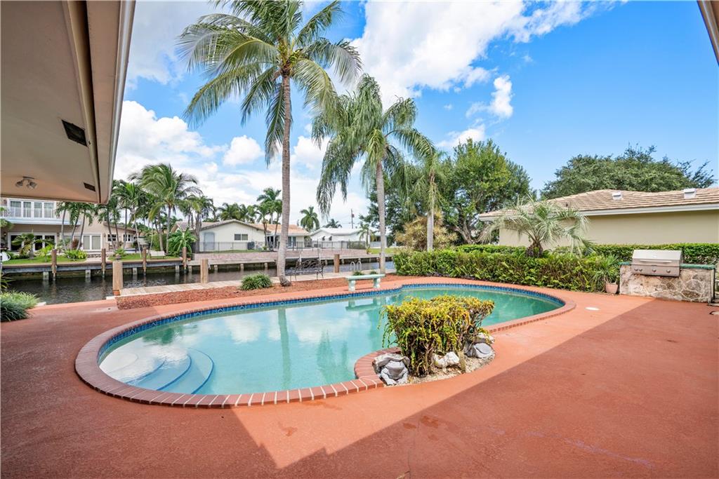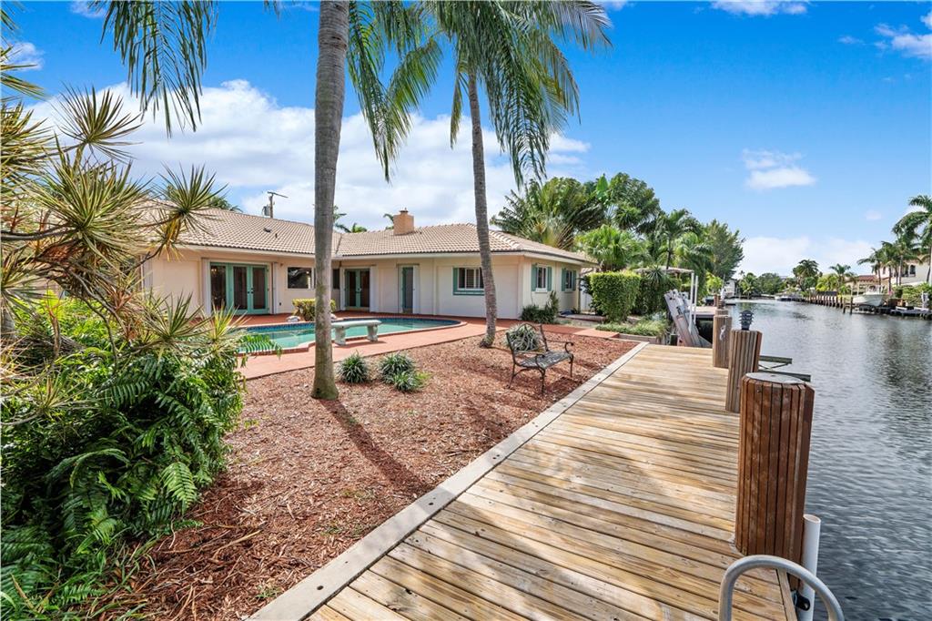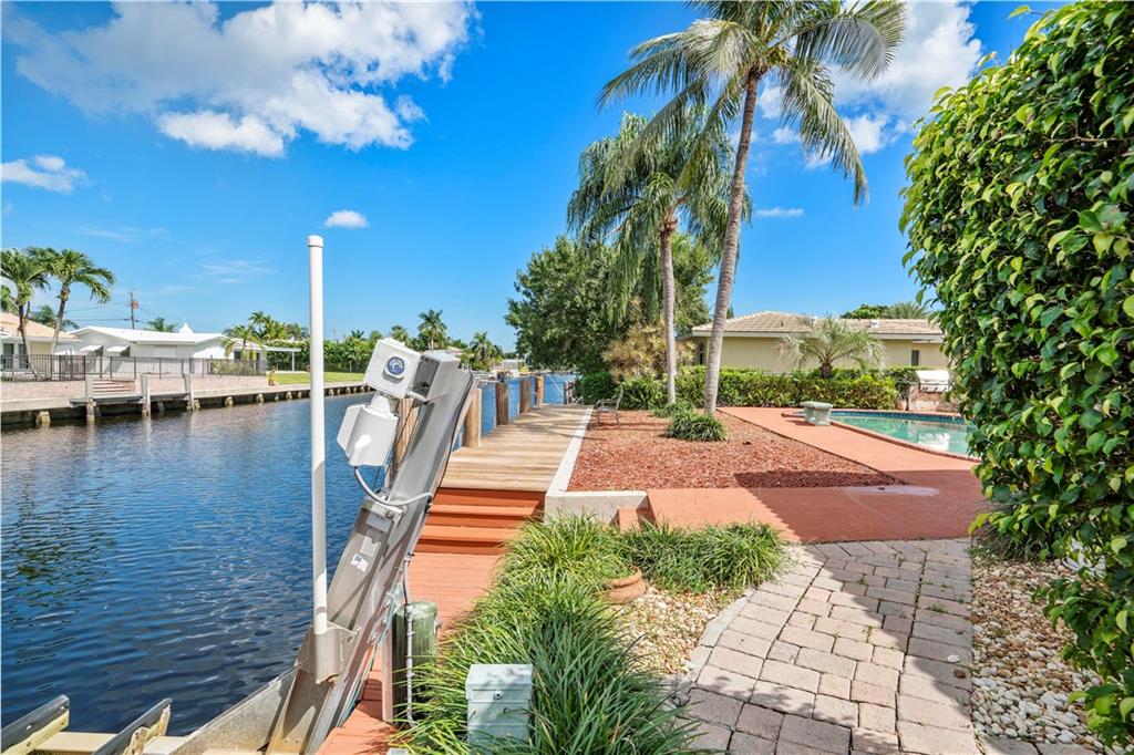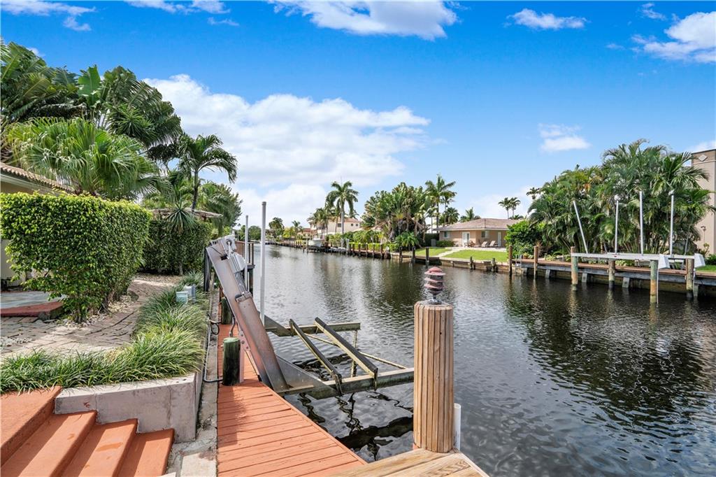 The perfect remodel! 4 bedroom, 3 bath, pool home in The Landings. New A/C system (2019), boat lift and approx. 80 feet of dock space. Remodeled kitchen with marble countertops, mahogany cabinets and stainless steel Kitchen Aid appliances. Oversized pool with covered overhang along the entire back of house. Outdoor grill and large patio for entertaining. The bathrooms need some remodeling, but are good size. Laundry room in the garage with ample room to close it in. With some work and your own personal touches, this could be your dream house on the water in South FL. Just minutes from the quaint town of Lauderdale by the Sea.