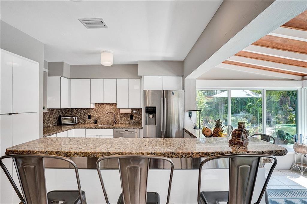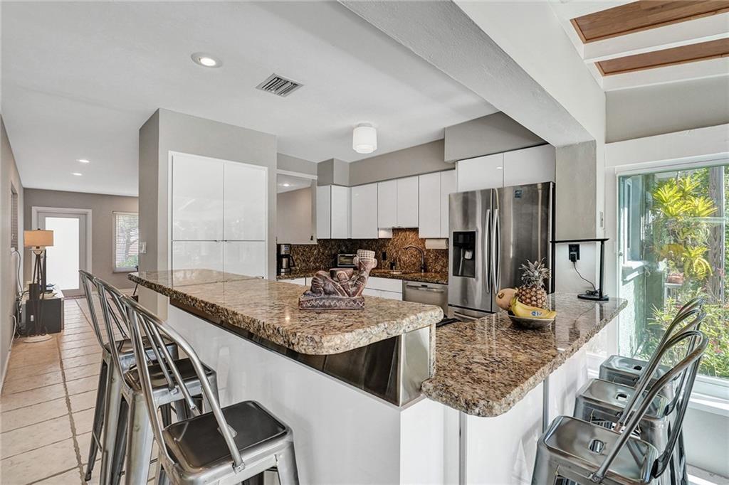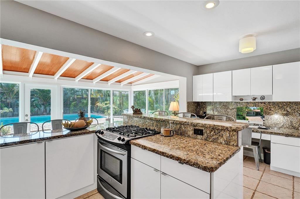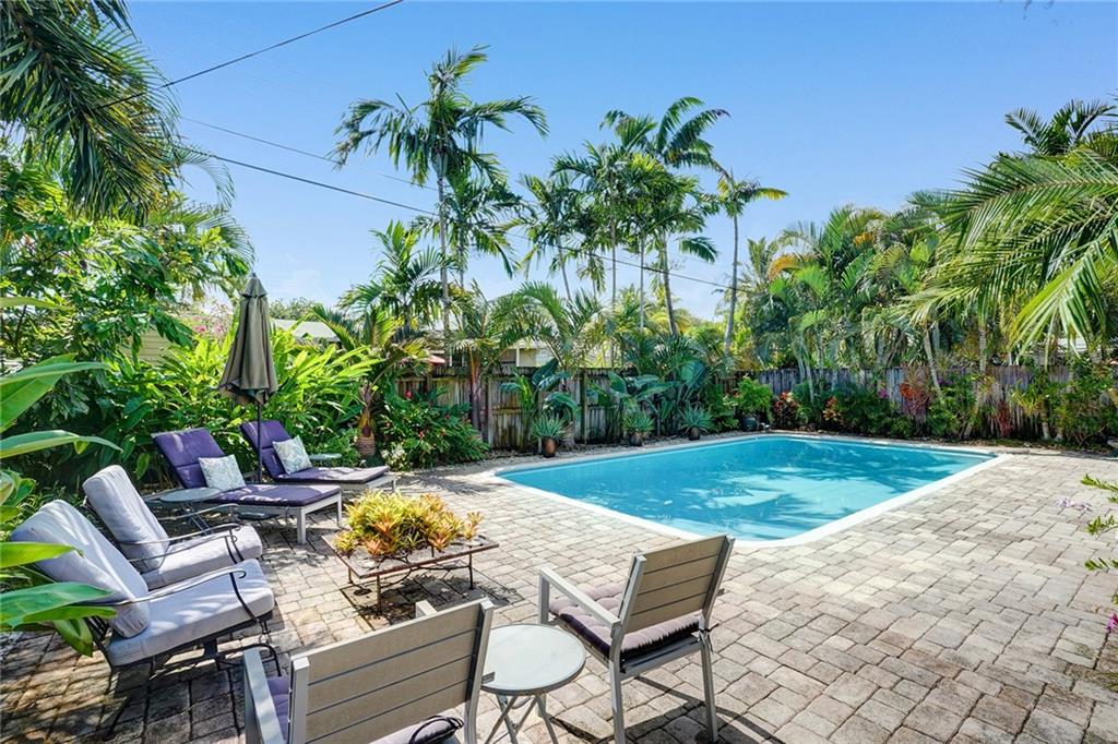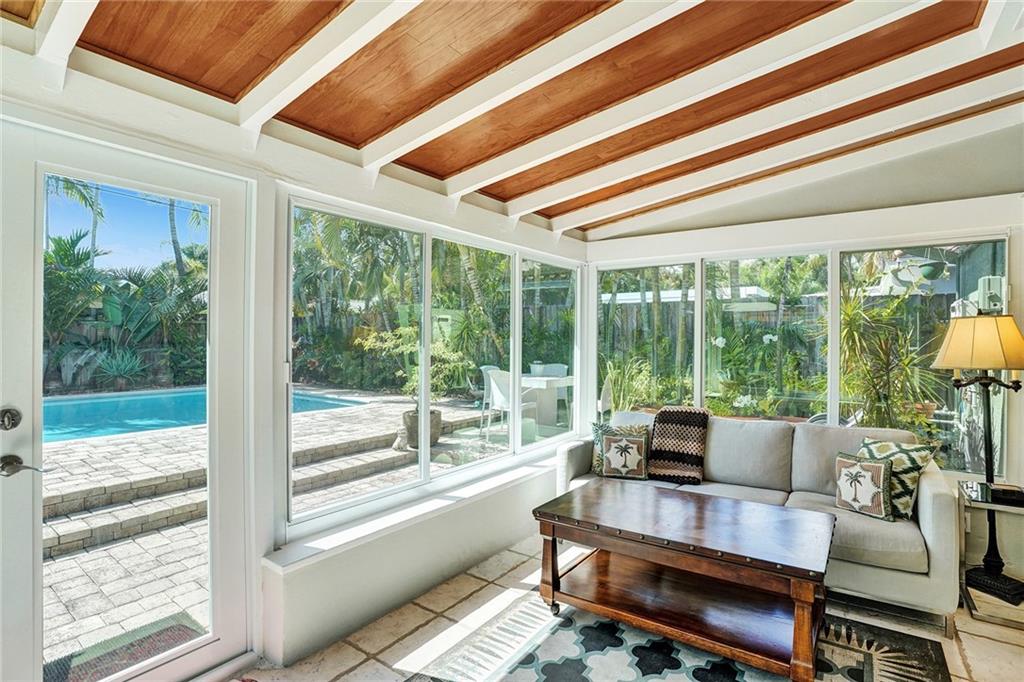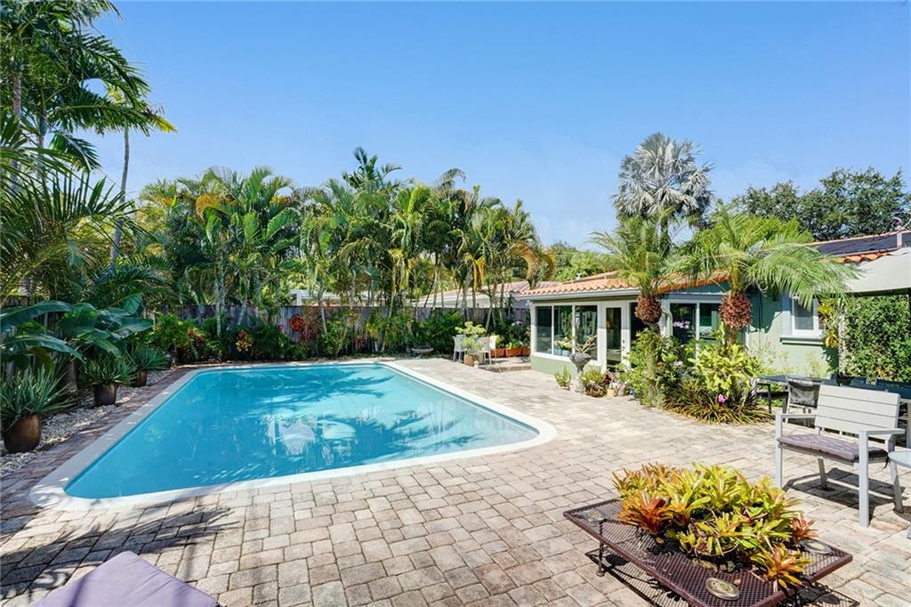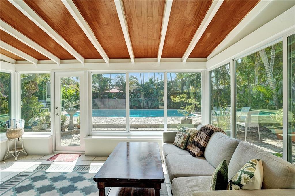 Stunning 2 bedroom | 2 bath w/ solar heated pool, tucked away in a quiet oasis of midcentury homes, tree-lined streets, lush landscaping in sought after North Ridge in Poinsettia Heights. Property just freshly painted. Newer hurricane-rated impact windows/doors + updated chef's kitchen w/ SS appliances, gas stove, granite counters, and modern custom cabinetry + newer A/C + newer natural gas hot water heater + updated bathrooms. Never worry about losing electricity with your natural gas powered generator. 2019 roof clip retrofit for insurance discount. Fully glassed-in Florida room allows you to enjoy the outdoors from inside. Possible conversion of bonus room for a 3rd bedroom. Lush landscaping in both front/back, with exotic plants and hundreds of rare orchids. This is a MUST SEE!