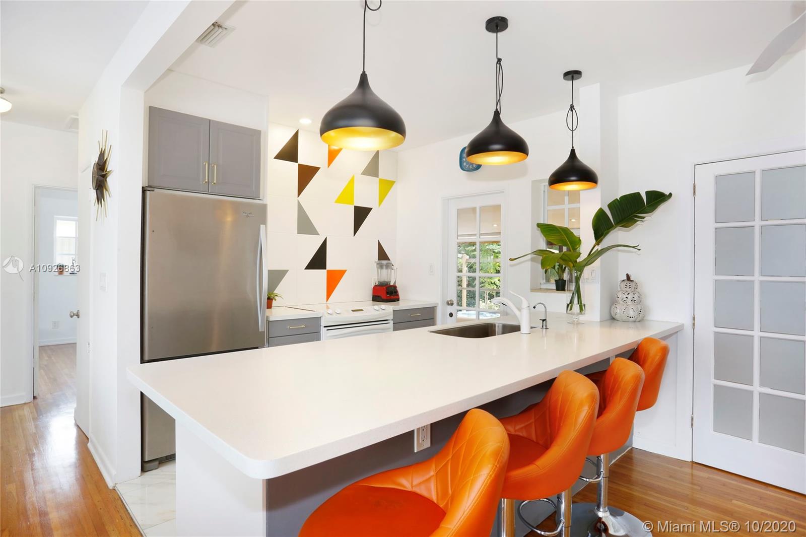 DRIPPING IN CHARM! Welcome to one of the most charming homes in North Miami Beach! This adorable Mid Century gem has 4 beds and 2 baths (main house is a 3/1 & converted garaged is 1/1 w/ separate entrance) featuring spacious living & dining areas, a beautiful kitchen w/ quartz countertop & SS fridge, that faces a spacious Florida room and backyard, updated bathrooms, updated windows & doors and wood, tile & terrazzo floors throughout. W/ over 1,500 sq. ft. under air and located on a 6,540 Sq. Ft. lot, the yard is meticulously landscaped with a wonderful outdoor patio that has tons of space and is perfect for a fun barbecue or to host a nice family gathering! Located near the beach, local shops, Synagogue, I-95 & much more. The perfect place to call it a home! NO FLOOD INSURANCE REQUIRED.