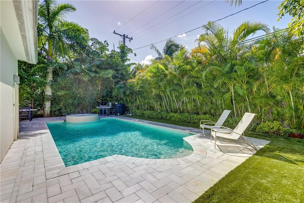 This impressive modern 4 bed / 3 1/2 bath home is nestled in the heart of prestigious Victoria Park. Completed in 2016, this two story luxury home has everything buyers want like an open floor plan, gourmet kitchen, high ceilings, designer finishes and a spare room perfect for the working from home trend. Outside you can relax in your own private tropical oasis replete with an infinity edge hot tub, white marble pavers and natural privacy created by a wall of lush green palm trees. The marble paver driveway allows parking for five cars, not including the oversized three car garage. Perfectly situated near the Las Olas entertainment and dining district, trendy Flagler Village and a few blocks from Holiday Park's sport facilities. This amazing property is a rare find in today's market.