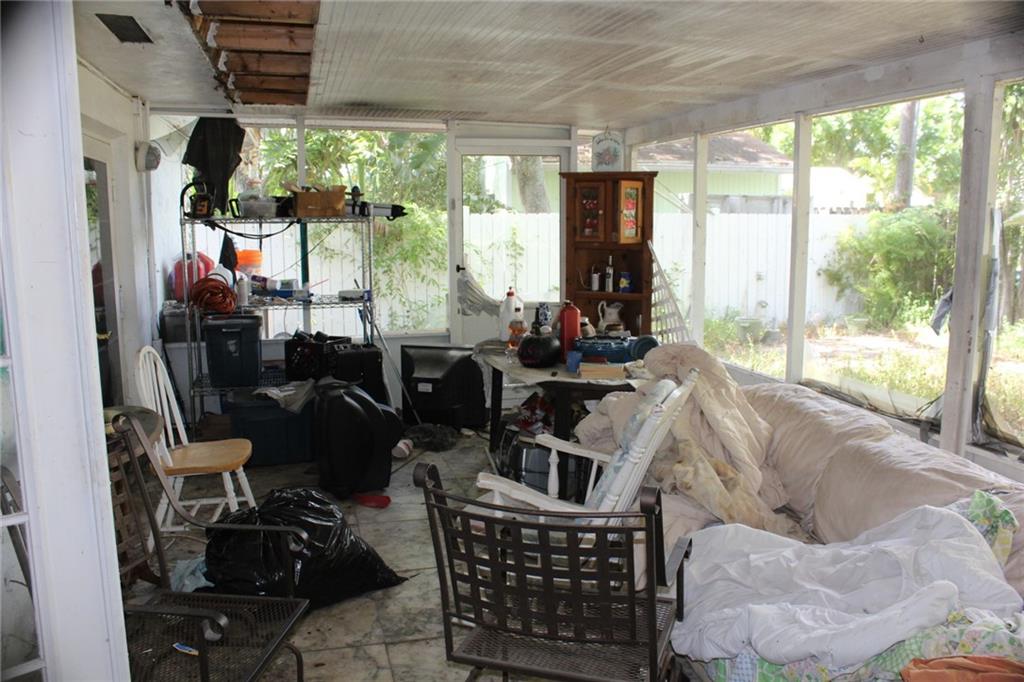 I have presente this listin so handy man or rehabilitation buyer would get a pretty good idea of what this opporturnity is all about. While the house needs work, you can see from the pictures that much of the work is faily simple. The main roof seems to still lbe good; the flat roof over the patio needs replaced for sure. One major feature is the detached - oversized - garageon the front of the lot. An impressive area for work, play or just put things away - cars, boats, trucks scooters etc