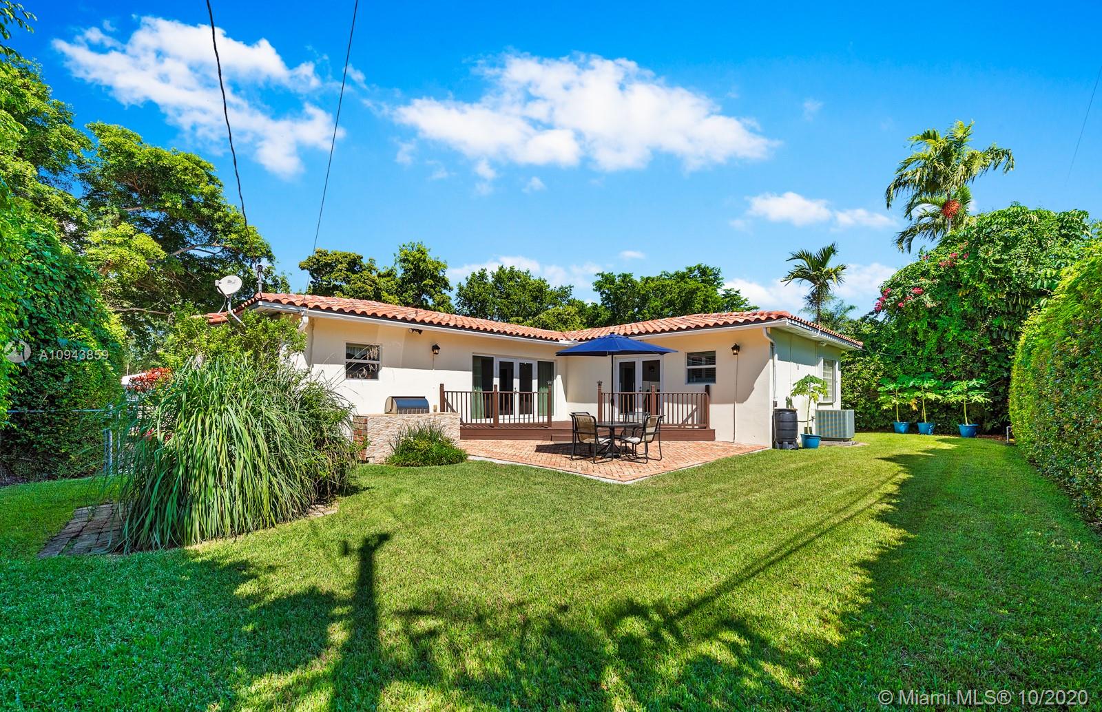 A MUST SEE 3 BED 3 BATH EN-SUITE IN CORAL GABLES. LOCATED ON A BEAUTIFUL TREE LINED PEACEFUL STREET. THIS FANTASTIC HOME HAS A TOTAL OF 3 BEDROOMS EACH WITH A FULL BATHROOM INSIDE, A BEAUTIFUL AND FULLY EQUIPPED KITCHEN WITH DOUBLE OVEN, WARM DRAWER TO KEEP FOOD HOT, LOTS OF CLOSETS AND STORAGE SPACE, LARGE 2 CAR GARAGE WITH AC. IMPACT WINDOWS AND DOORS. SPACIOUS MASTER BATHROOM WITH BATH ROMAN TUB & SEPARATE SHOWER FULL OF NATURAL LIGHT. BACK YARD FENCED-IN, HAS AUTO-WATERING SYSTEM. WOODEN DECK, AND SUNNY PATIO W/CHICAGO PAVERS INVITE YOU TO SIT BACK, RELAX, AND ENJOY BUILT-IN GRAS BBQ GRILL. HOUSE HAS RAIN GUTTERS. MOST UPDATES WHERE DONE RECENTLY DURING 2011 -2014. SEPTIC TANK JUST SERVICED. CLOSE TO MERRY PARK, UNIVERSITY OF MIAMI, SUNSET MALL, AIRPORT, RESTAURANTS AND SHOPS..