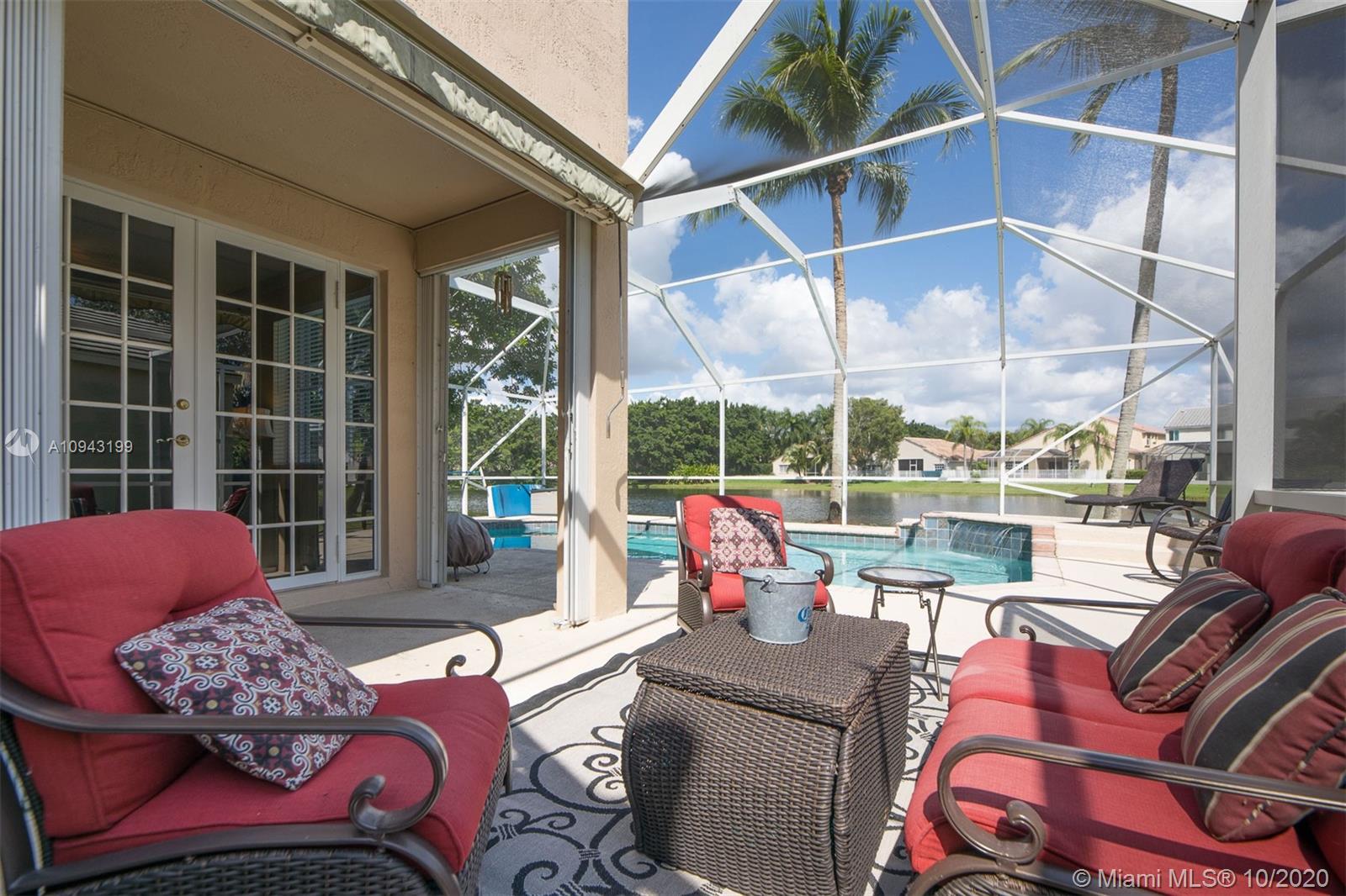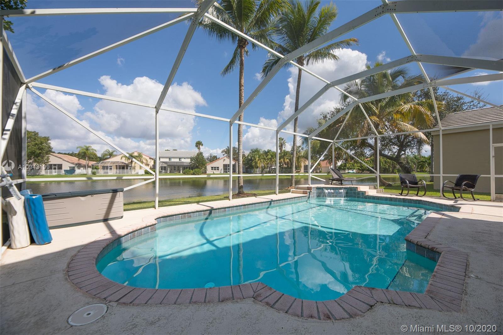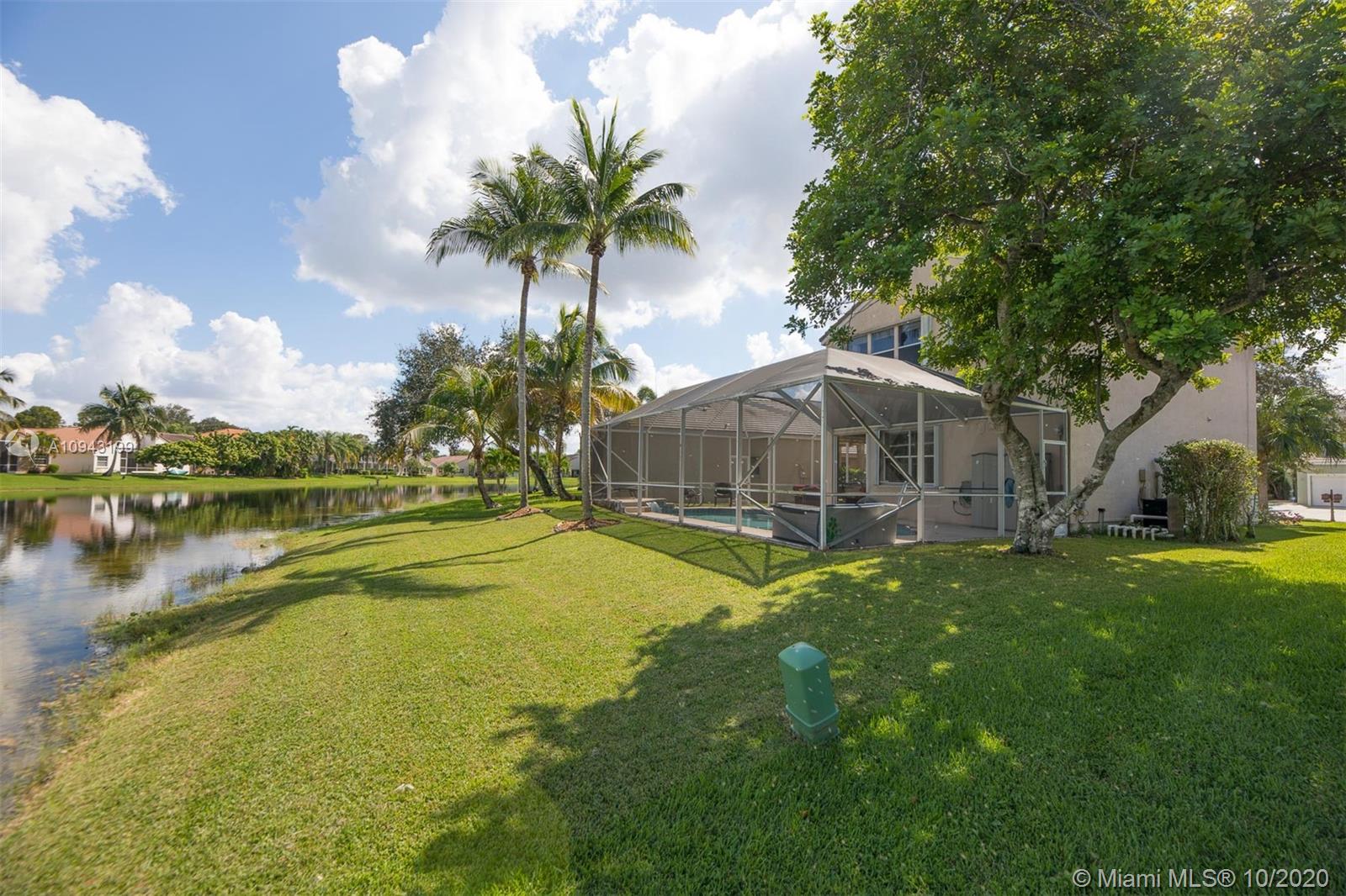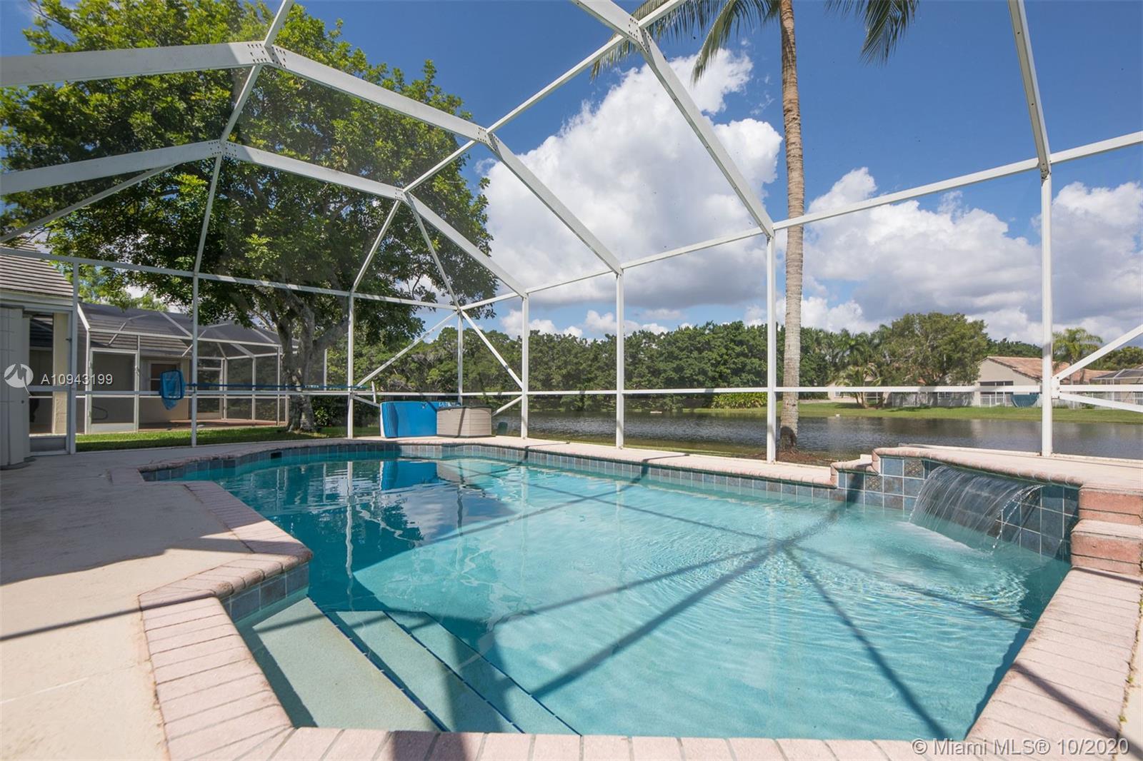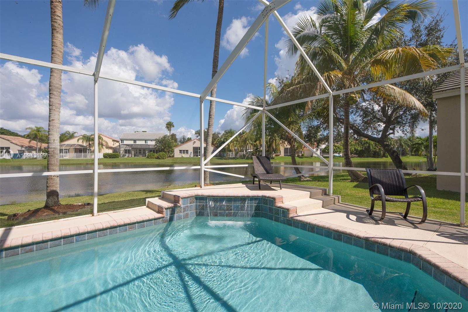 Beautiful 2 stories, 4 bedrooms, 2.5 bath pool home with amazing water views in The Lakes, gated community in the City of Weston. This home features a new roof (replaced 1 month ago), accordion shutters, 2 car garage, formal living and dinning room, family room overlooking the lake, remodeled kitchen with granite counter tops and stainless steel appliances. Neutral tile throughout first floor, crown moldings and wood floors in the master bedroom and 3 additional rooms including stairs. Bathrooms are remodeled to perfection! Enjoy a huge screened pool patio for entertaining and relaxing on a fabulous spa!