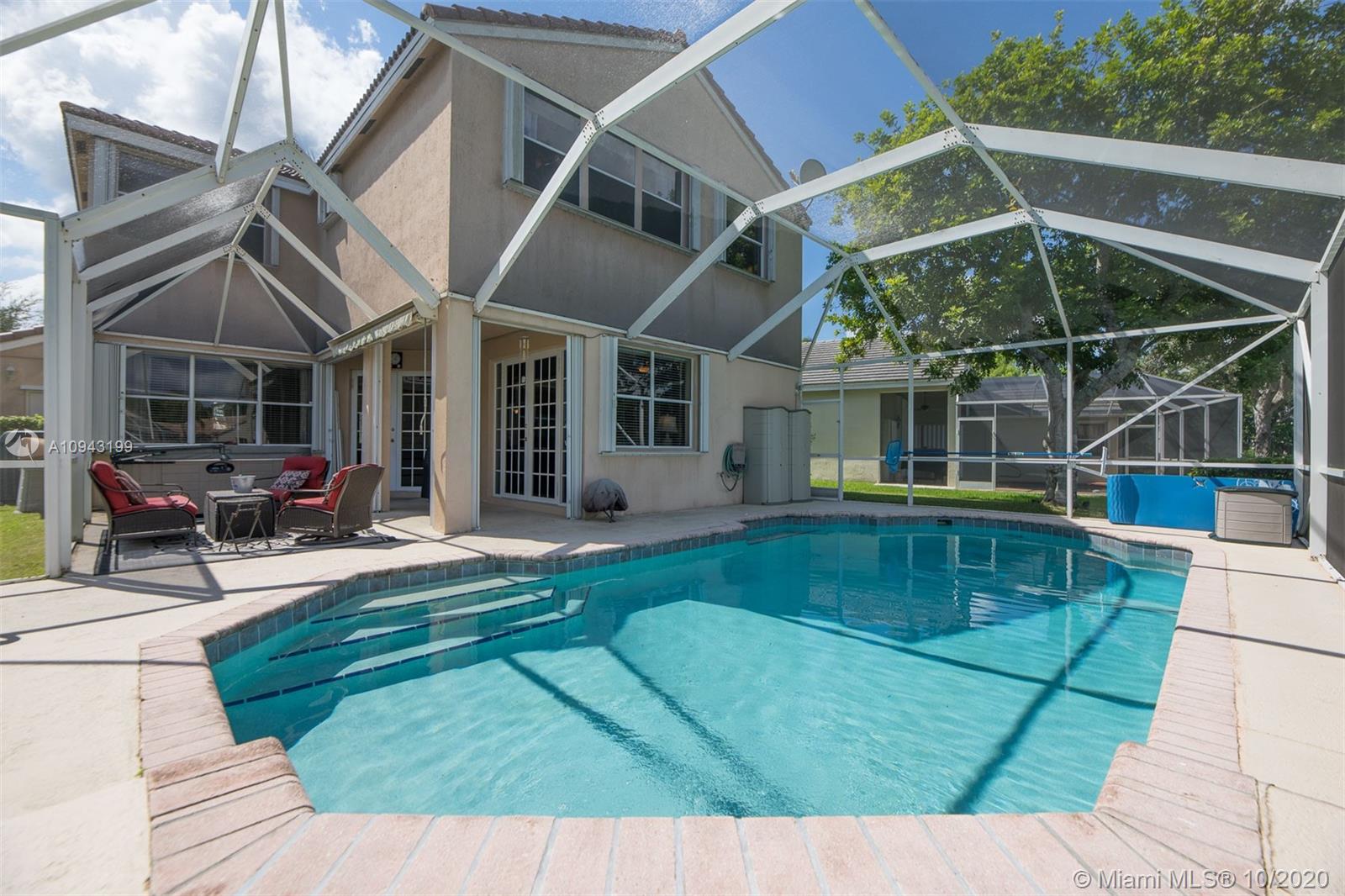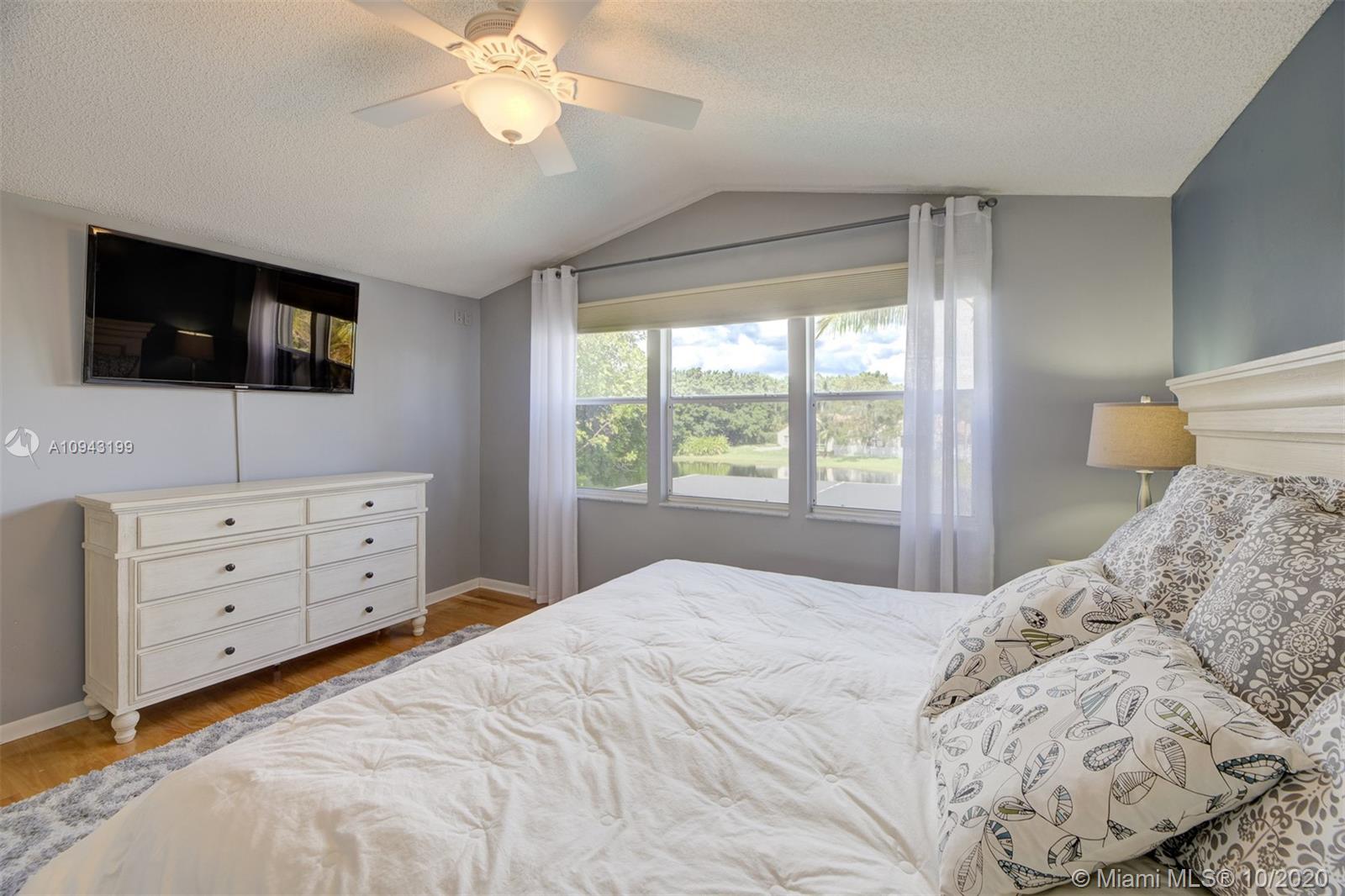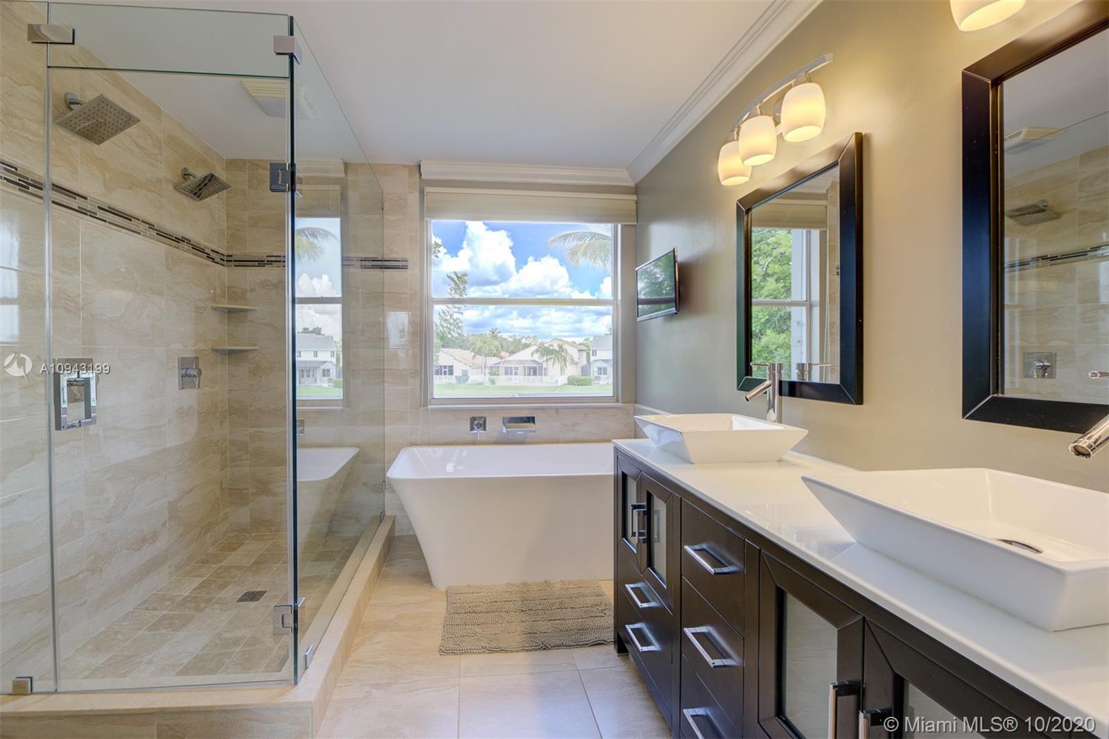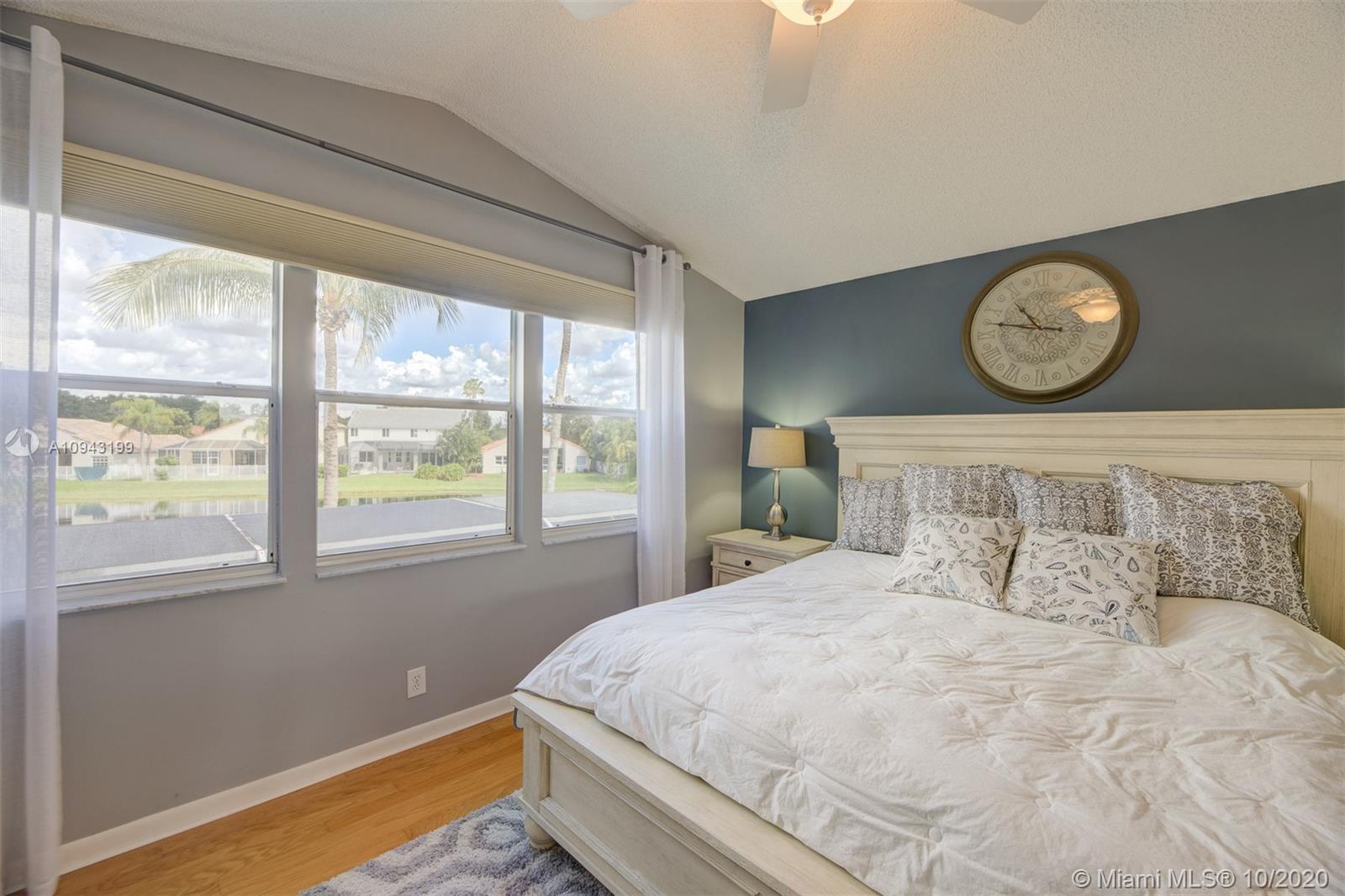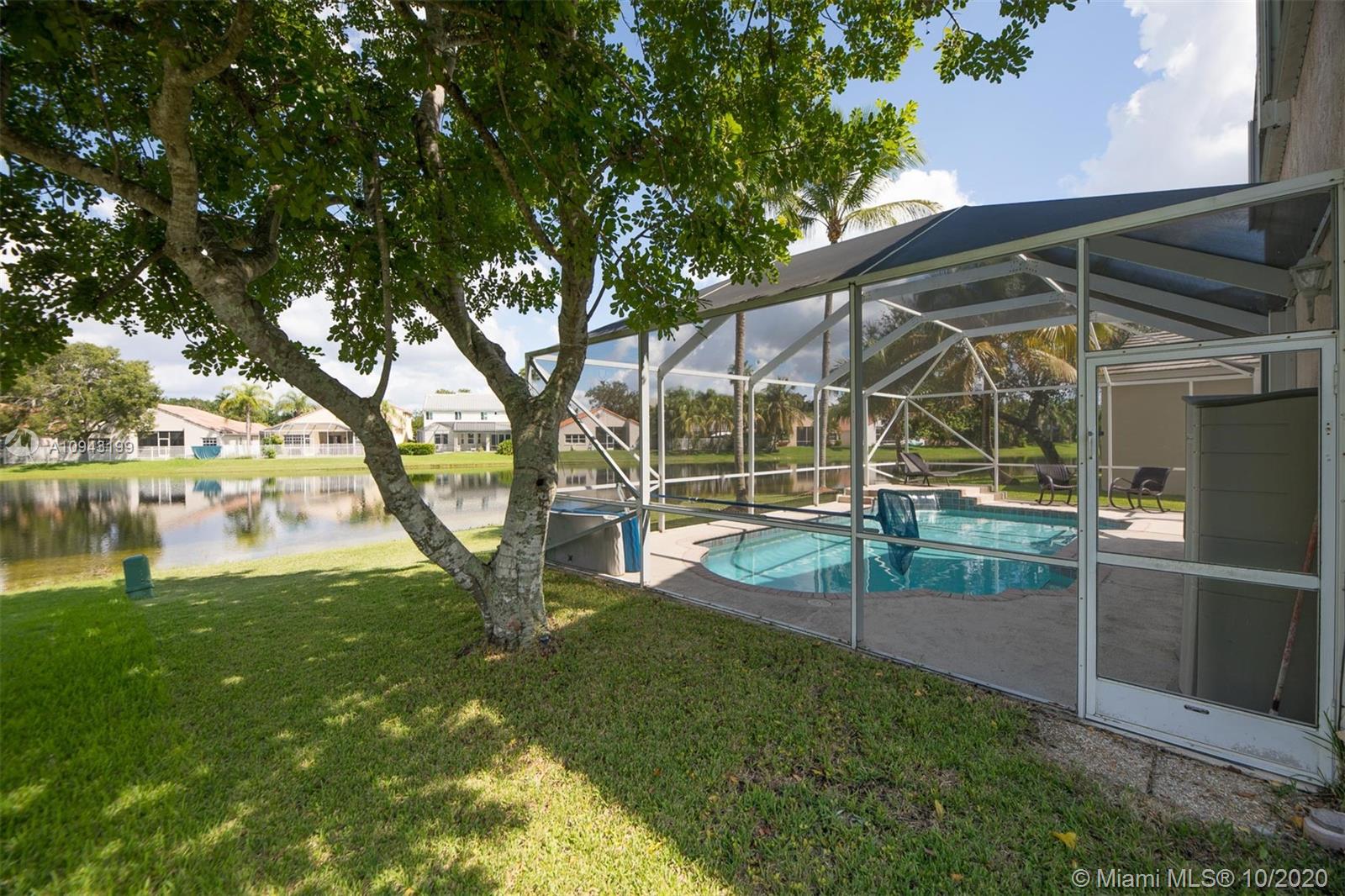Beautiful 2 stories, 4 bedrooms, 2.5 bath pool home with amazing water views in The Lakes, gated community in the City of Weston. This home features a new roof (replaced 1 month ago), accordion shutters, 2 car garage, formal living and dinning room, family room overlooking the lake, remodeled kitchen with granite counter tops and stainless steel appliances. Neutral tile throughout first floor, crown moldings and wood floors in the master bedroom and 3 additional rooms including stairs. Bathrooms are remodeled to perfection! Enjoy a huge screened pool patio for entertaining and relaxing on a fabulous spa!